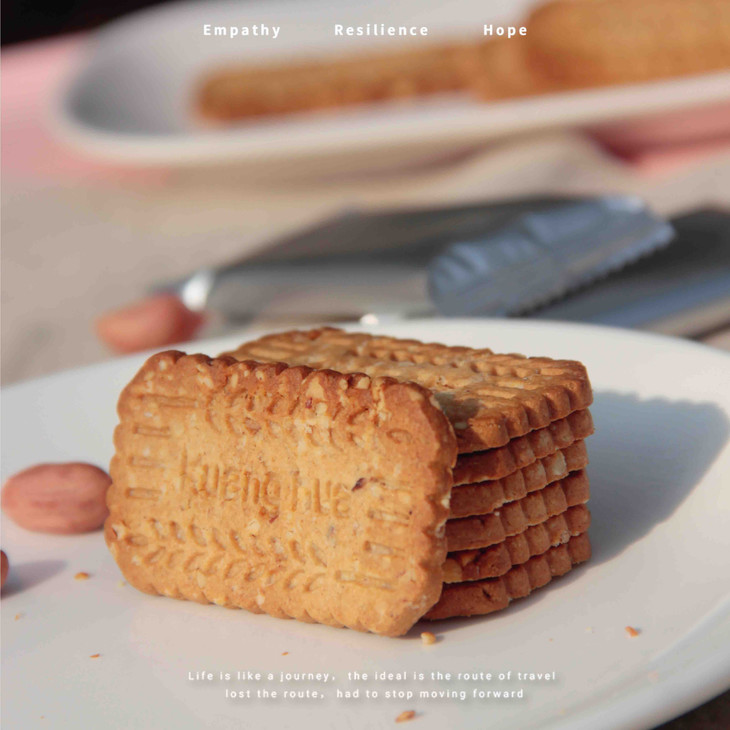 在烤制过程中,我们精选新鲜的花生,经过特殊工艺烘烤,饼干中弥漫着扑鼻的花生香气。