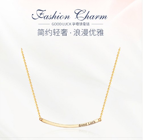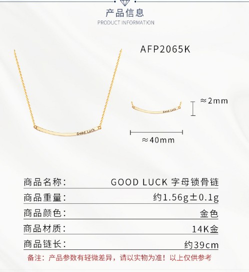 affiner阿菲娜14K金项链女士 goodluck吊坠锁骨链时尚饰品浪漫 AFP2065K