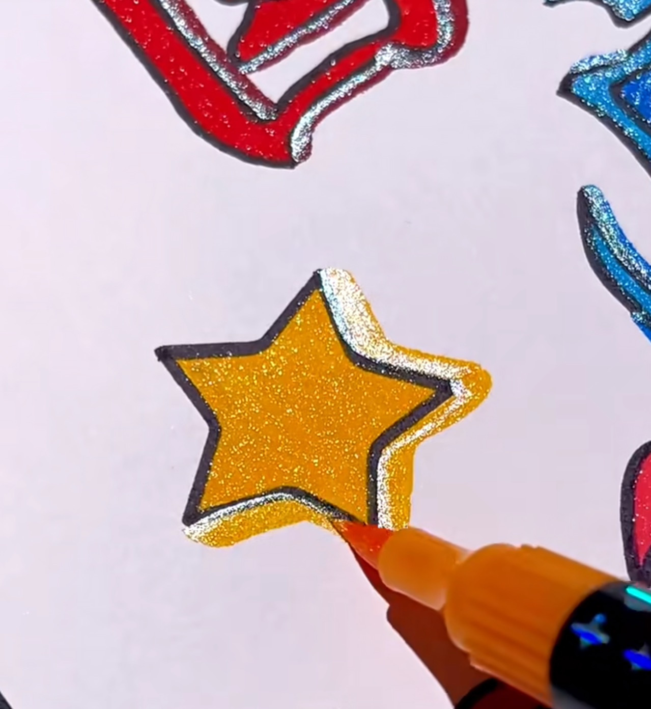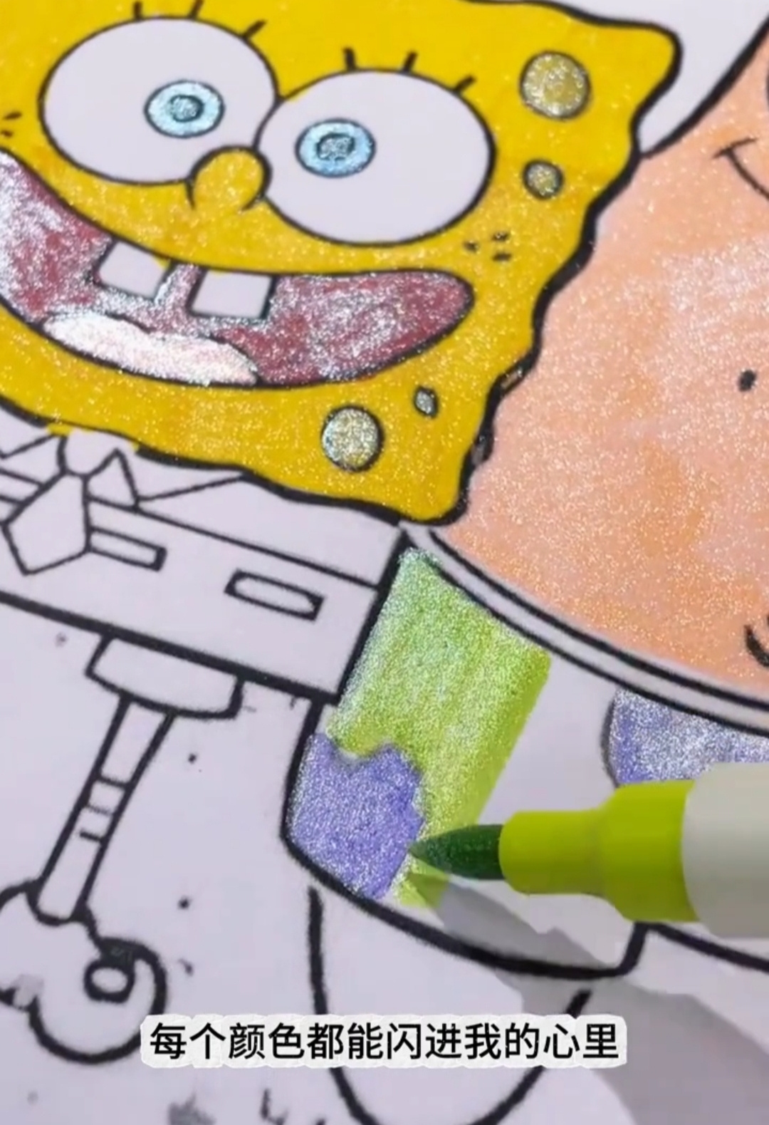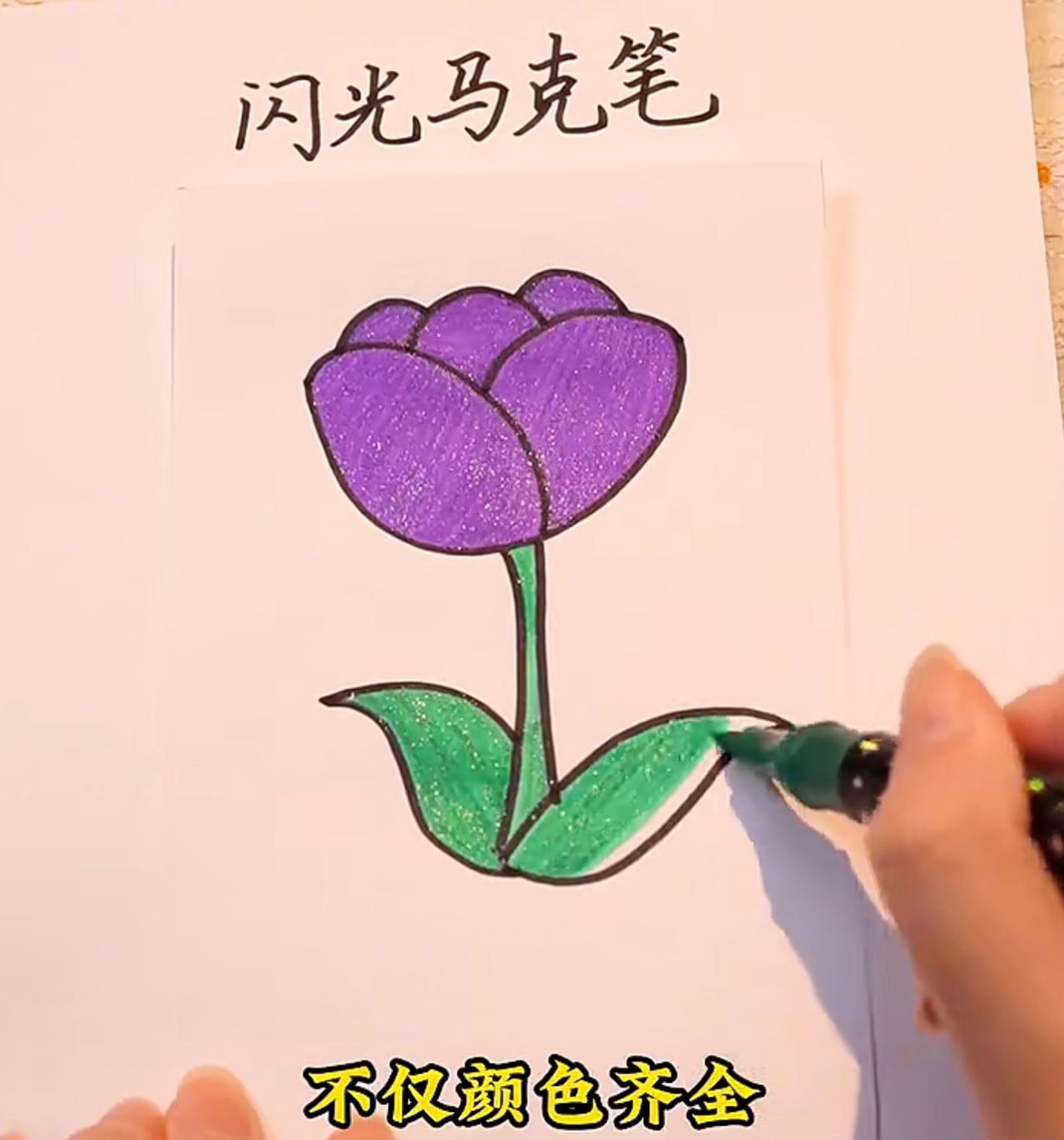 此款马克笔为细闪,团文视频和图片展示效果是在强光照射下拍摄,肉眼看的话会没有那么闪,但是足够孩子日常绘画使用,不作为售后依据,介意慎拍