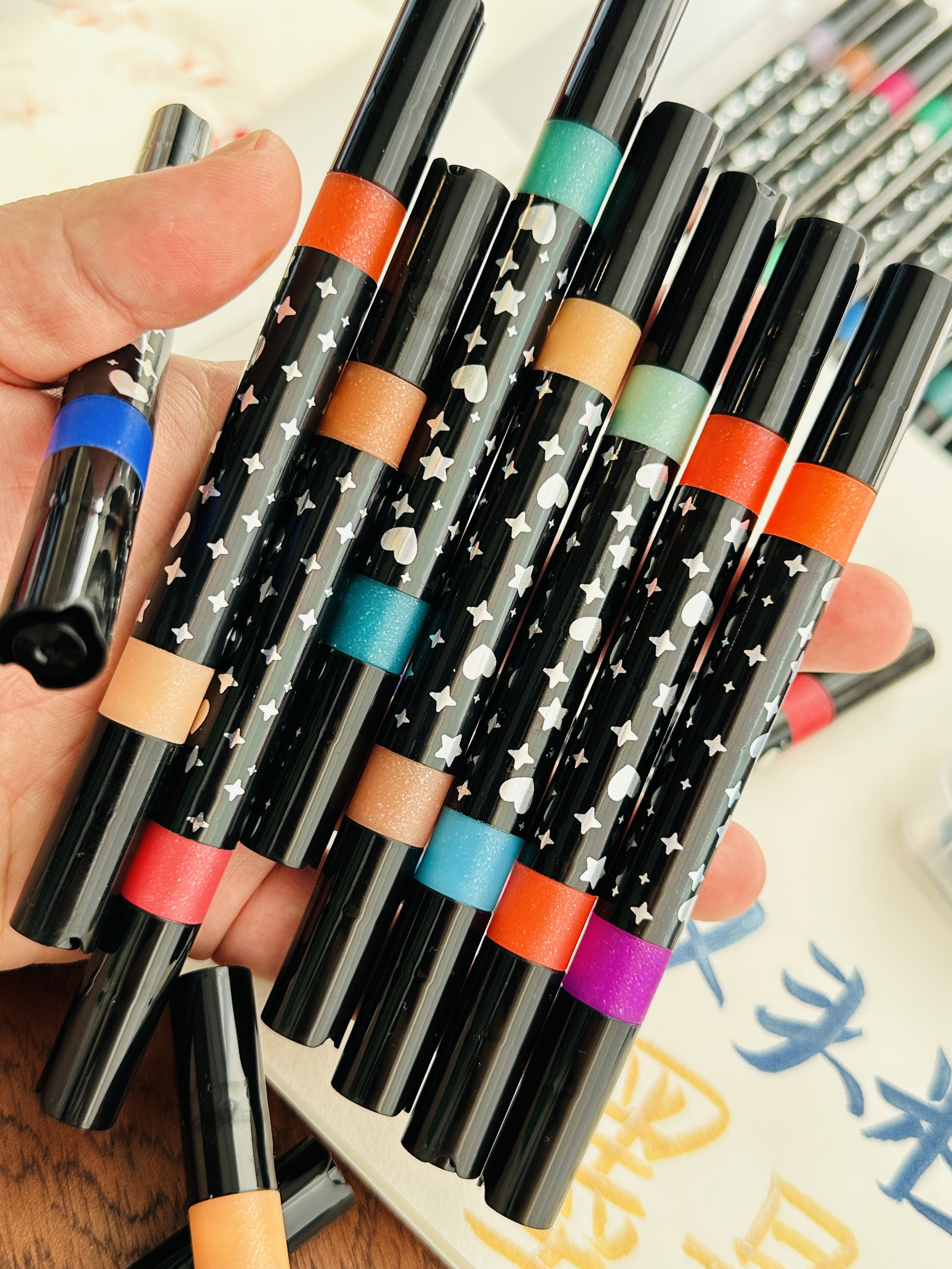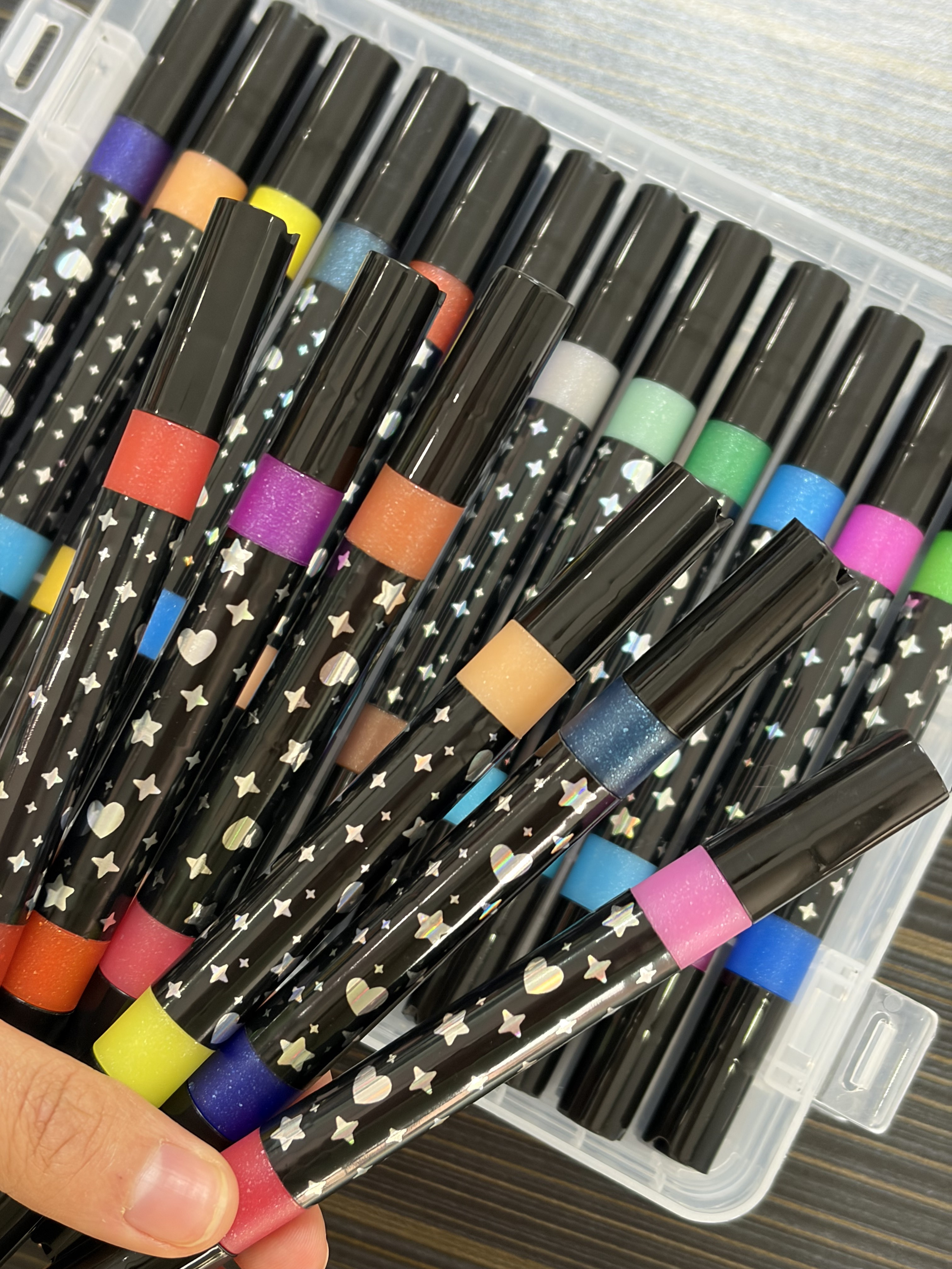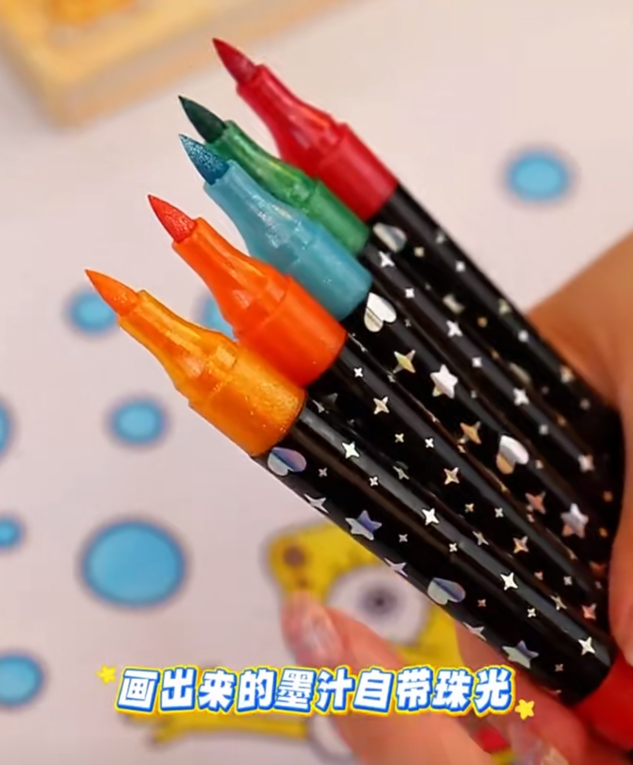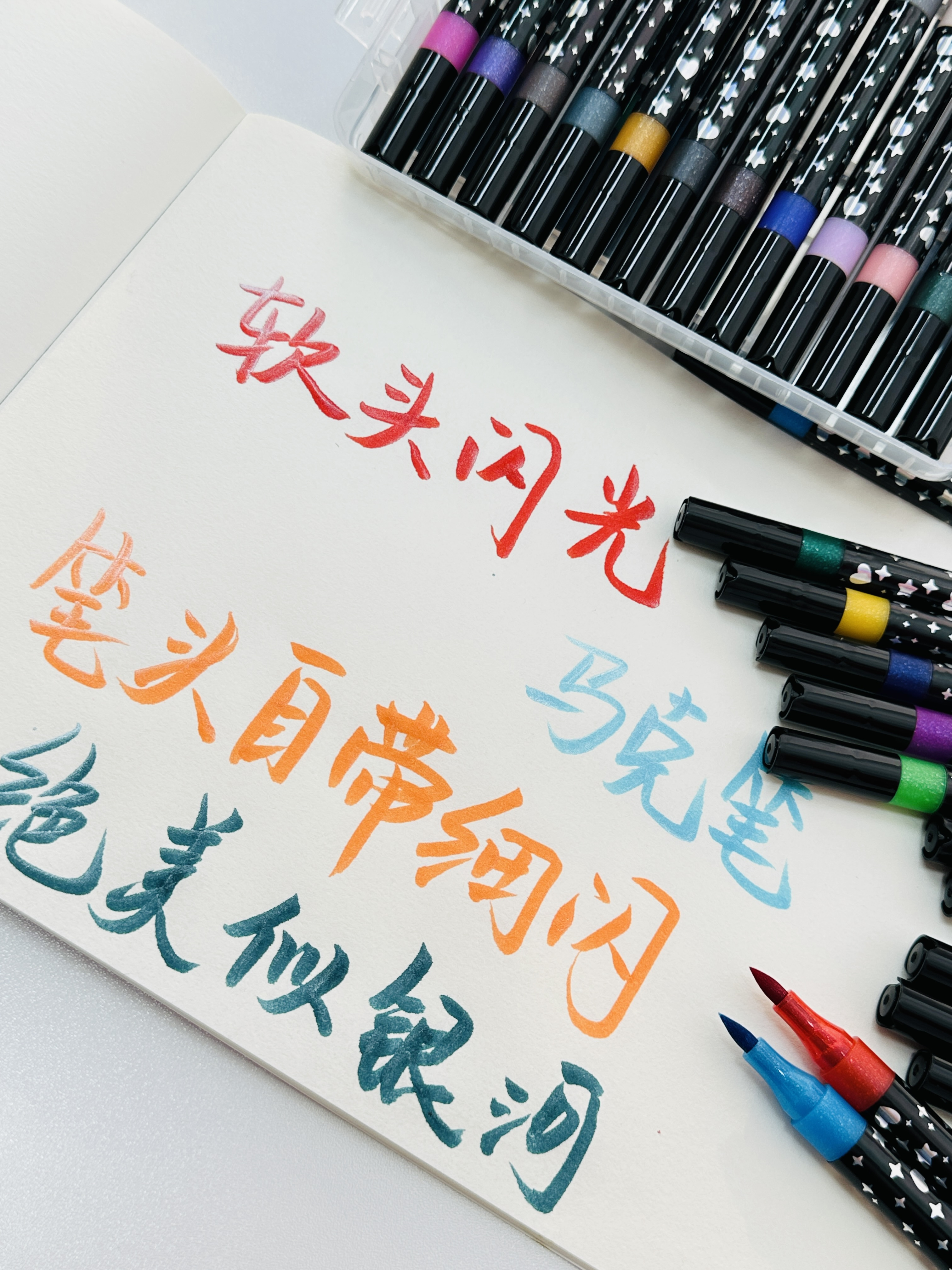 笔头是自带细闪的,画出的线条像藏了银河一样,自带珠光爆闪!!