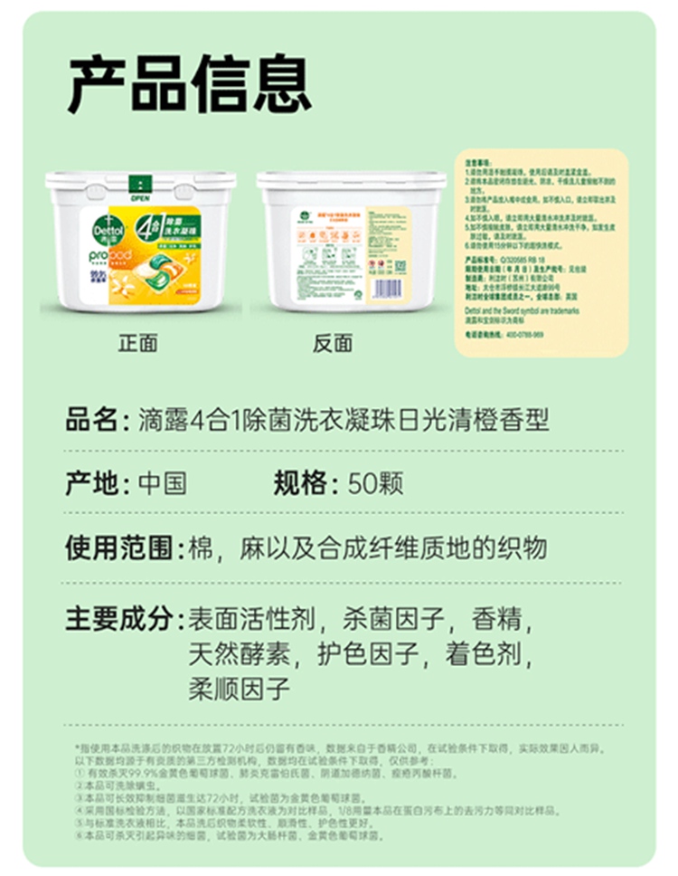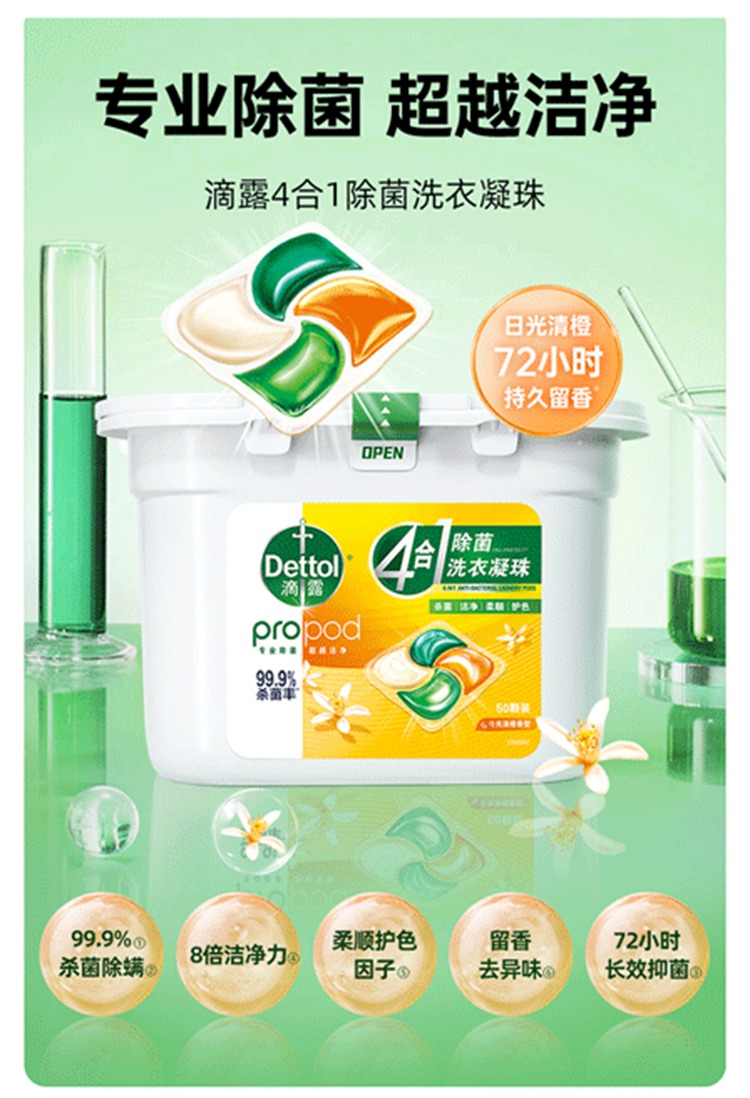 滴露 4合1除菌洗衣凝珠50颗*1盒【包邮直发】