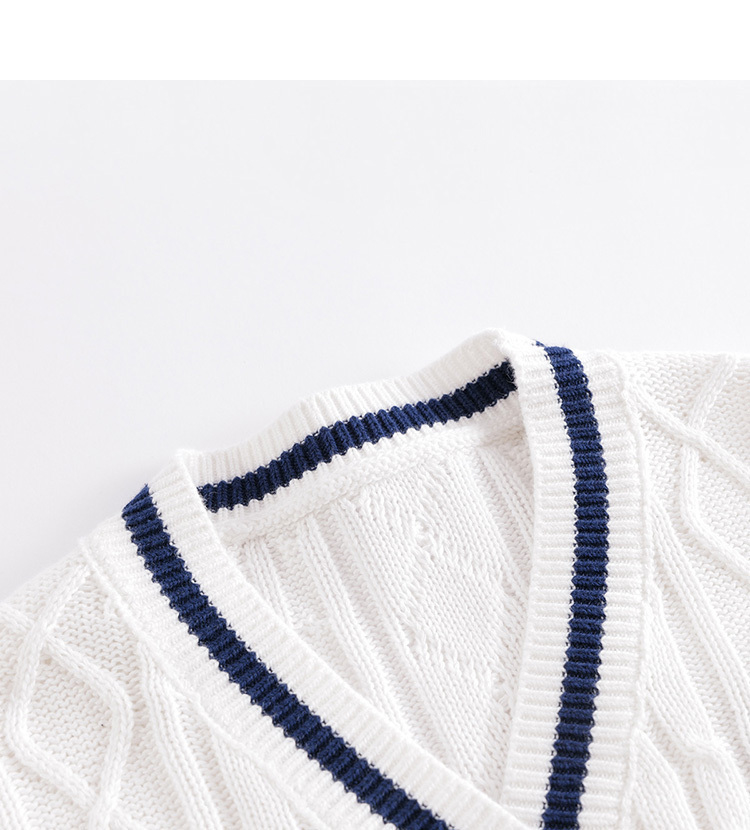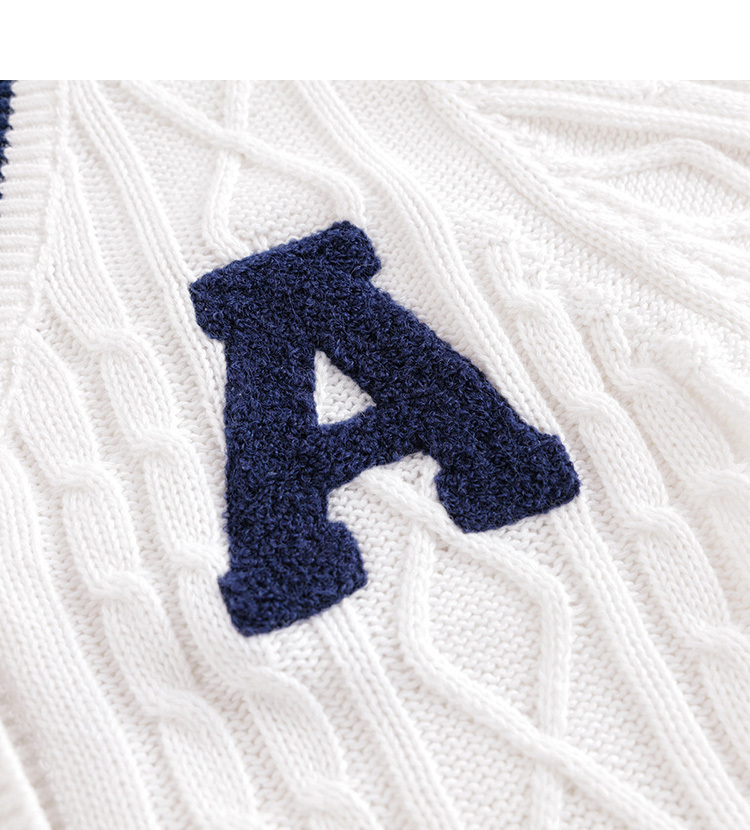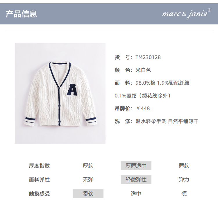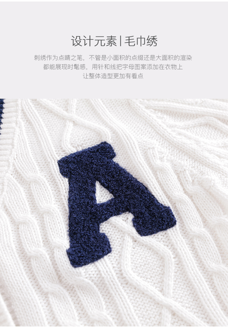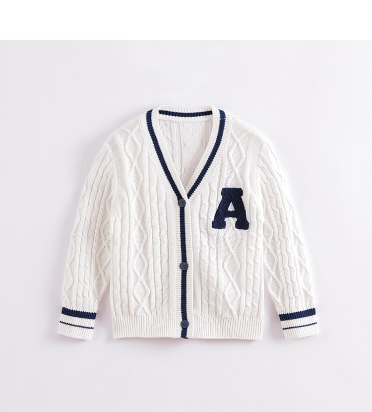 马克珍妮春装新款 男女童学院风字母V领针织开衫230128