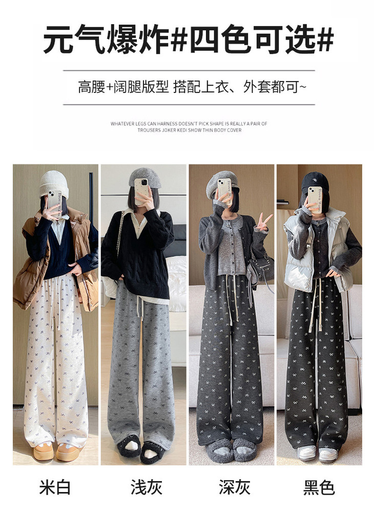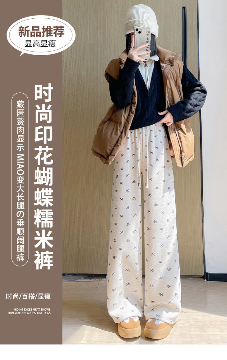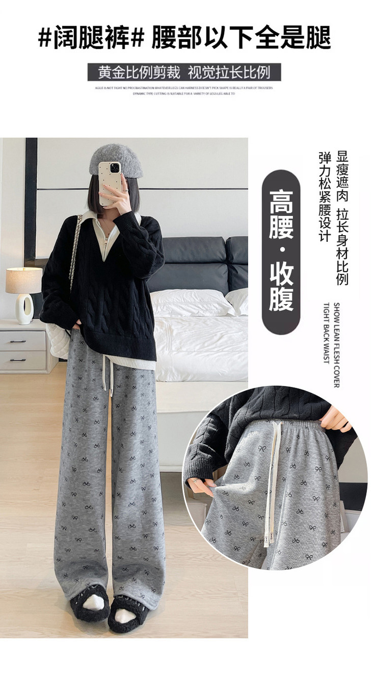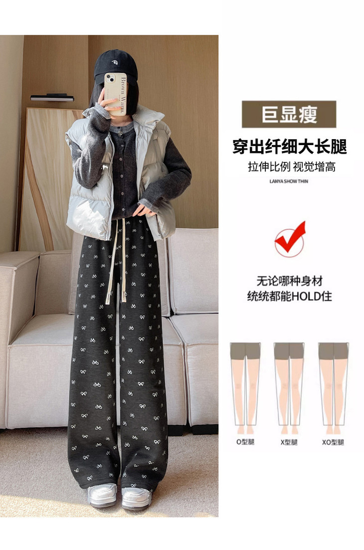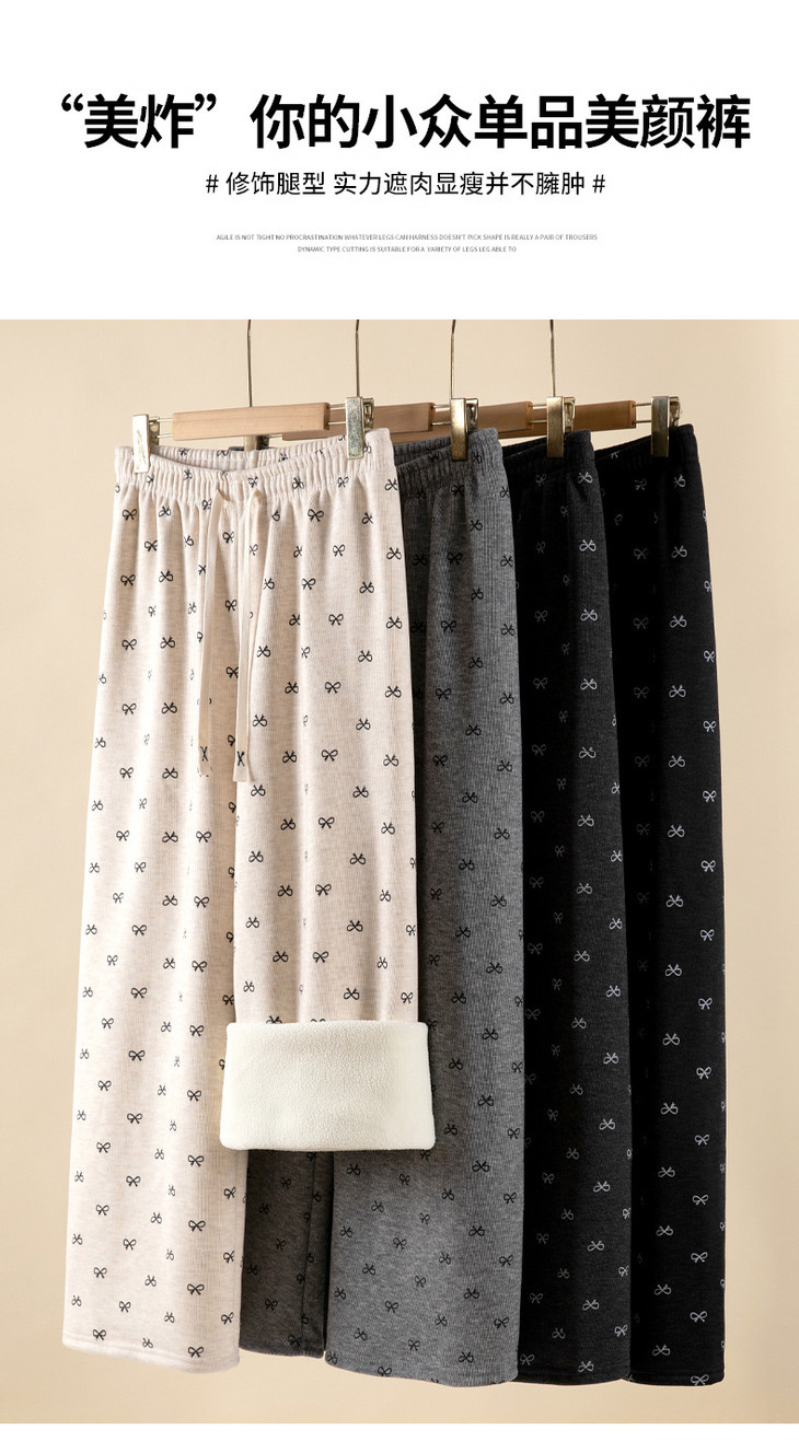 【秋冬季加绒加厚 蝴蝶结糯米裤】高腰阔腿裤直筒长裤山本裤阔腿裤