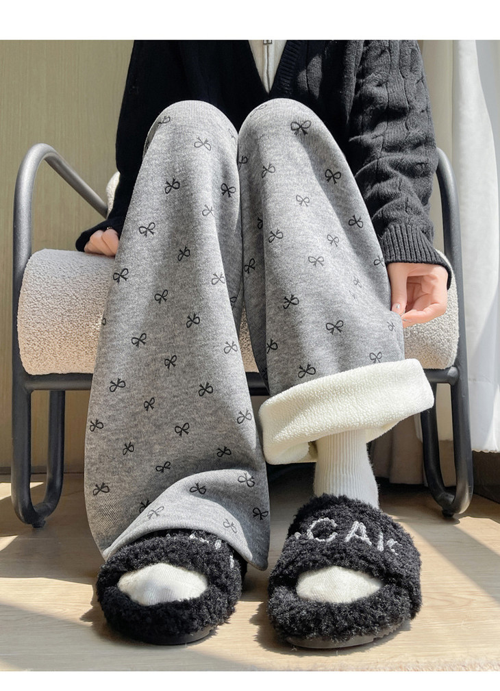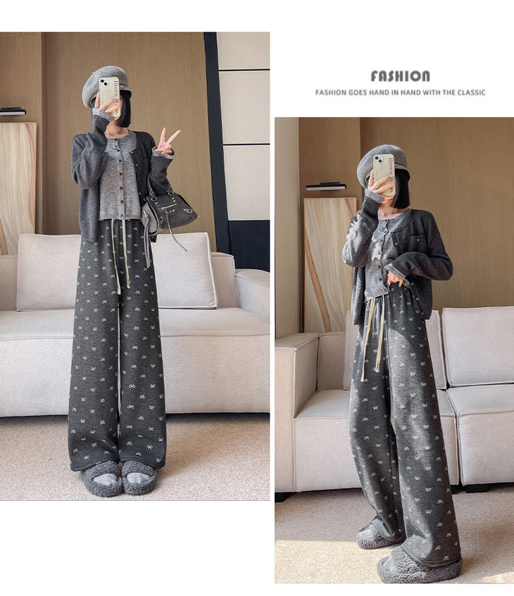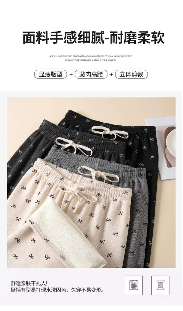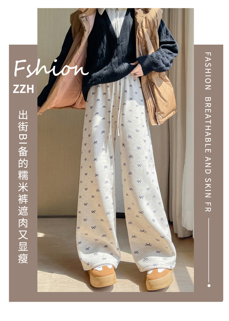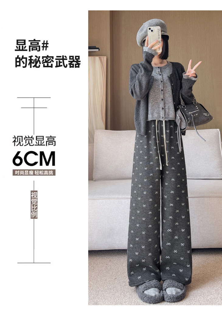 【秋冬季加绒加厚 蝴蝶结糯米裤】高腰阔腿裤直筒长裤山本裤阔腿裤