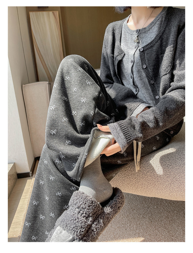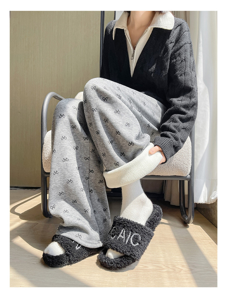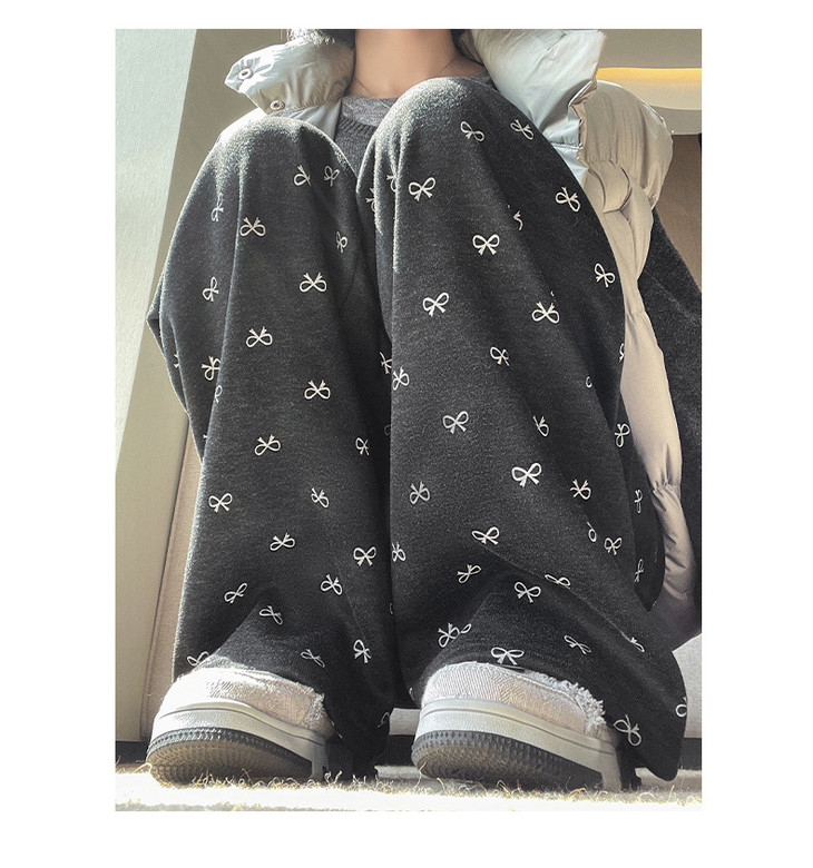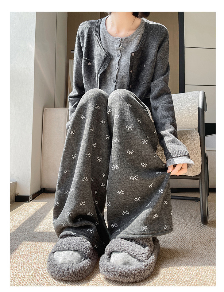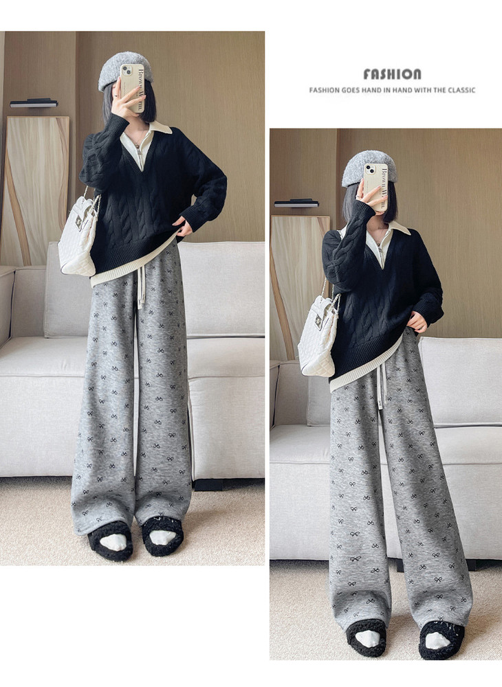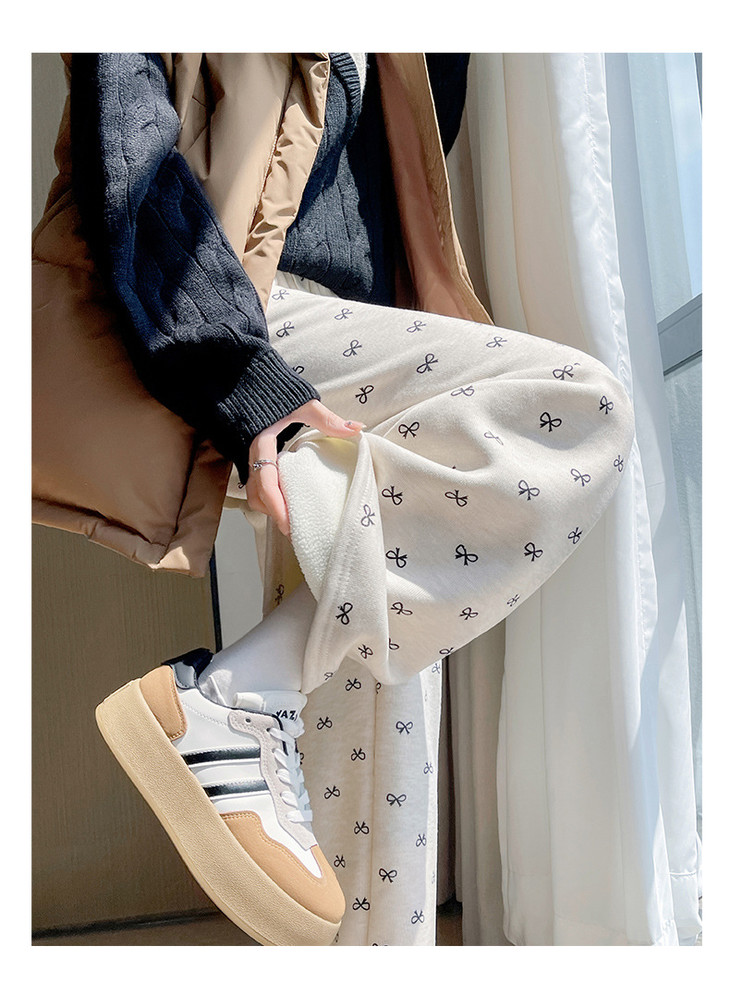 【秋冬季加绒加厚 蝴蝶结糯米裤】高腰阔腿裤直筒长裤山本裤阔腿裤