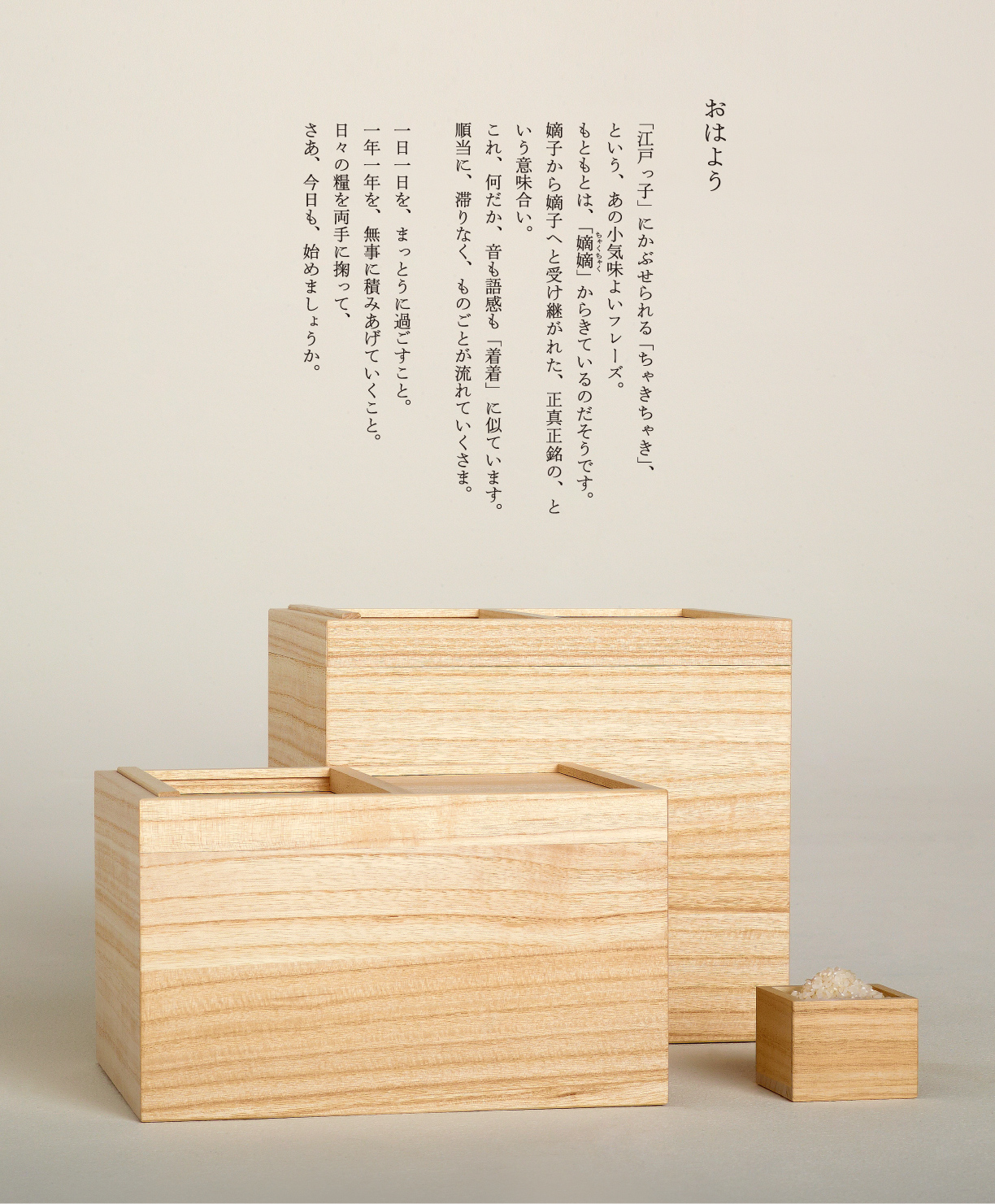 ◎保存,桐木。无论是衣服还是食物,桐箱自古以来就被用作日本衣食住行最可靠的保存容器。