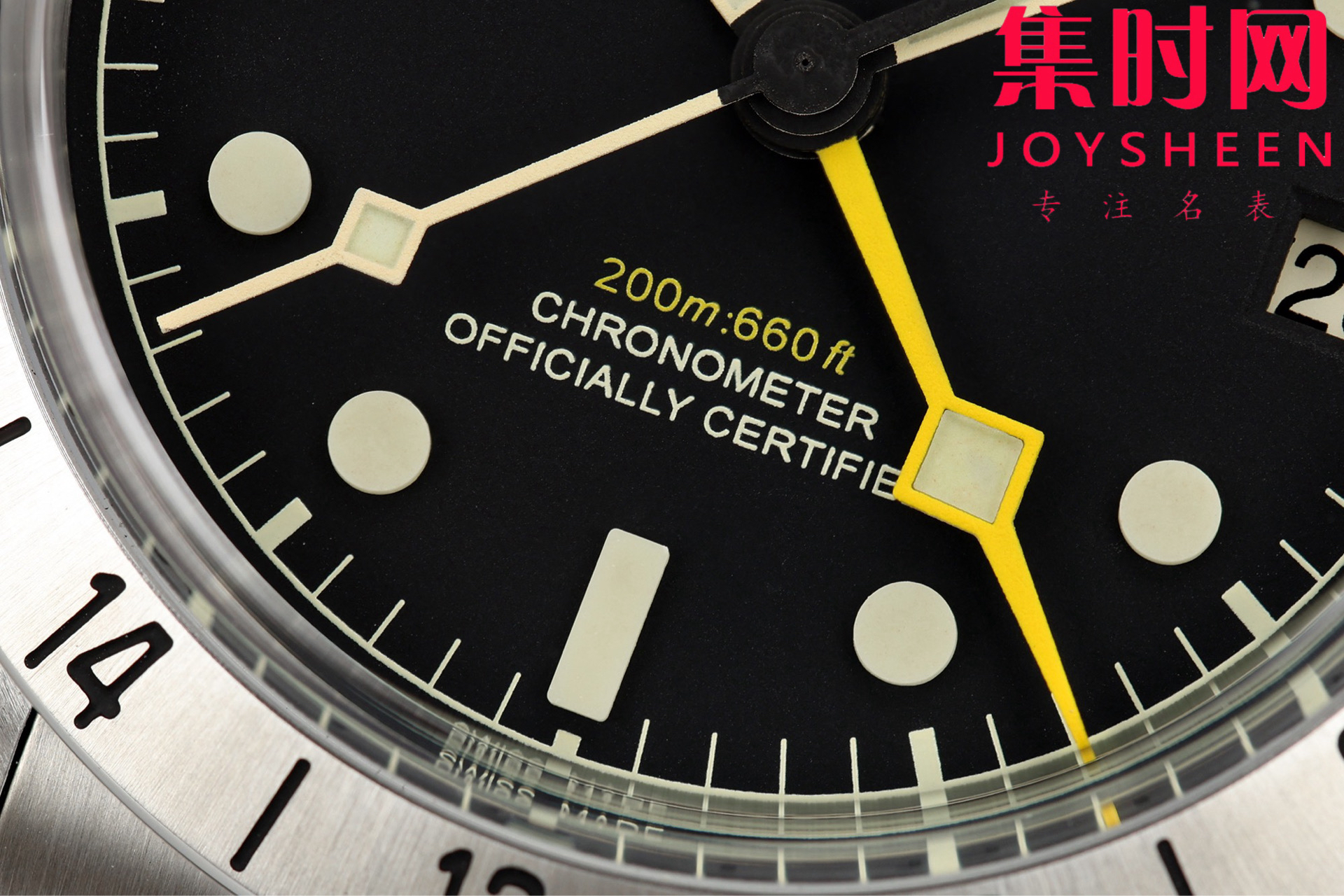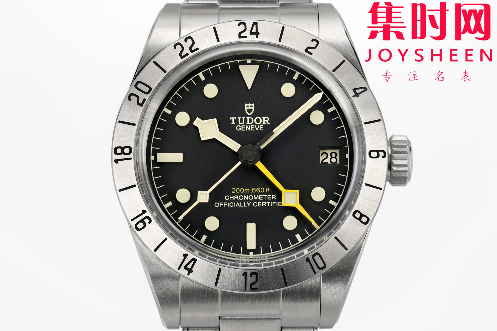 2.蛋白色或哑光黑色盘面各有风情,一体成型的立体陶瓷时标填充Super-LumiNova®夜光物料,搭配帝舵标志性的黄色“雪花”指针,棱角分明的设计既是1969年经典元素的传承,也让读时清晰直观.磨砂钢质24小时固定外圈质感温润,与圆拱形蓝水晶镜面相映,在不同光线下折射出内敛光泽。