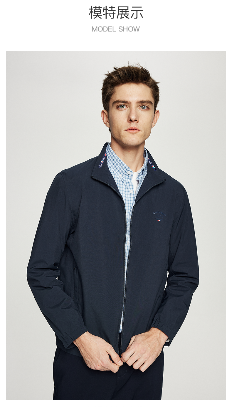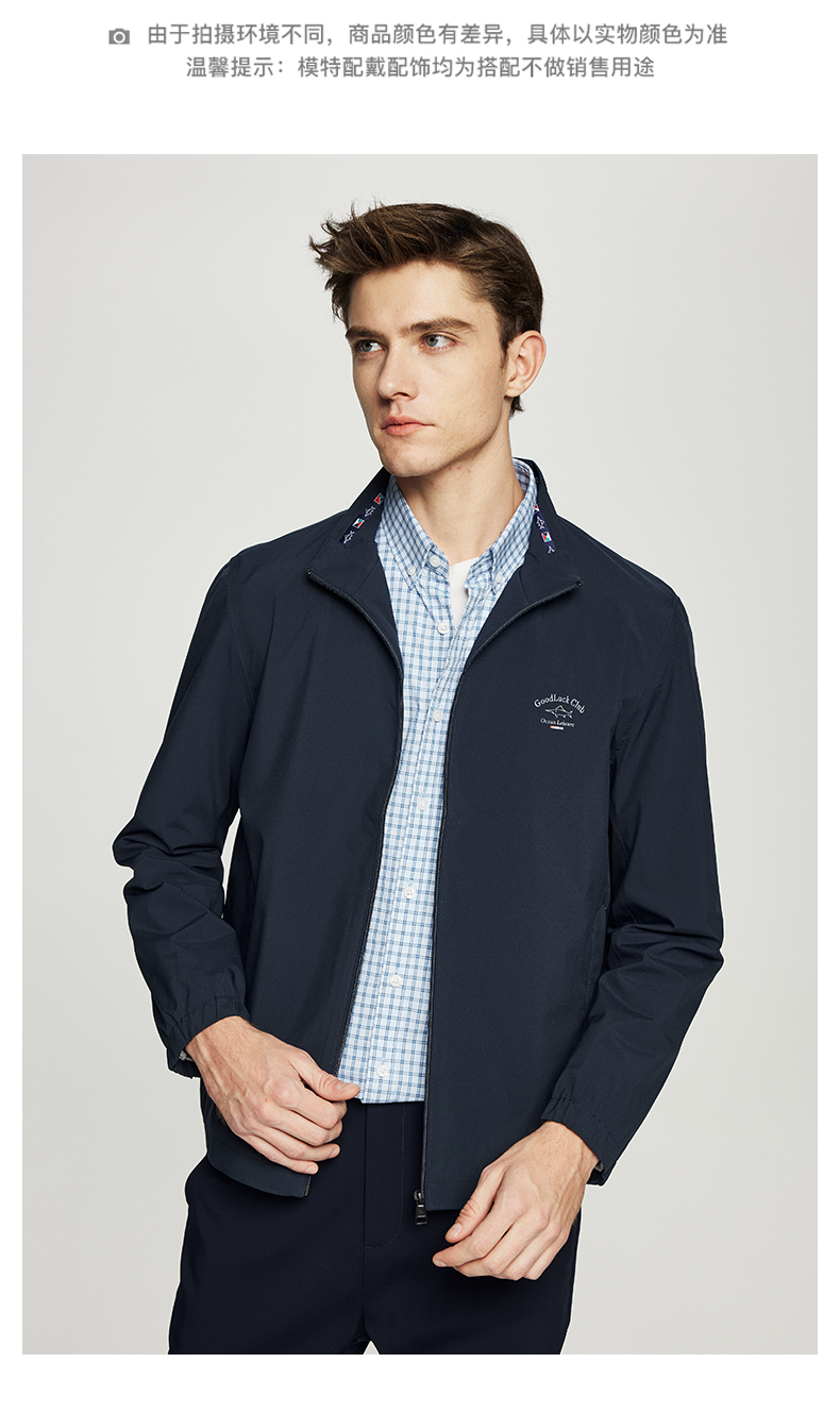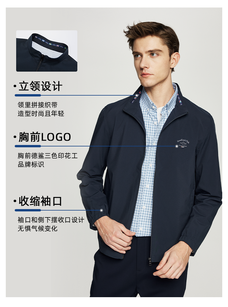 德鲨鲨鱼休闲立领夹克男2026春季新款纯色上衣男短款外套