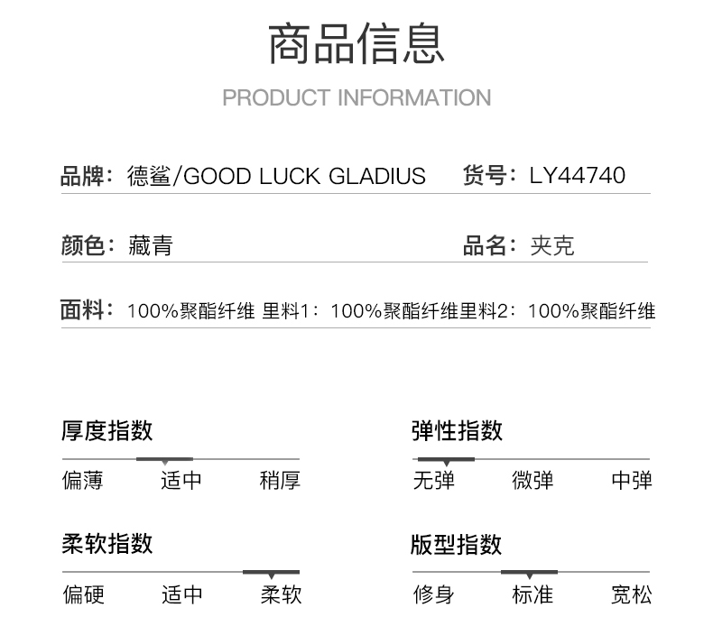 GOOD LUCK GLADIUS品牌由“浙江德鲨服饰有限公司”引进中国市场,经过多年发展,凭借完善的终端形象,规范化的销售管理,迅速赢得消费者的认可,引领国内消费流行,是成功人士首选男装品牌。