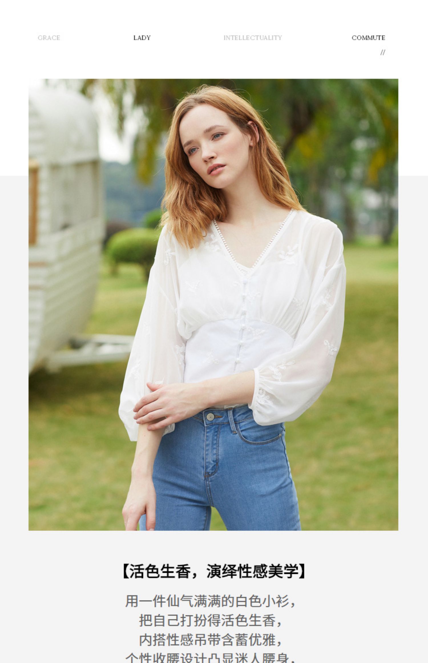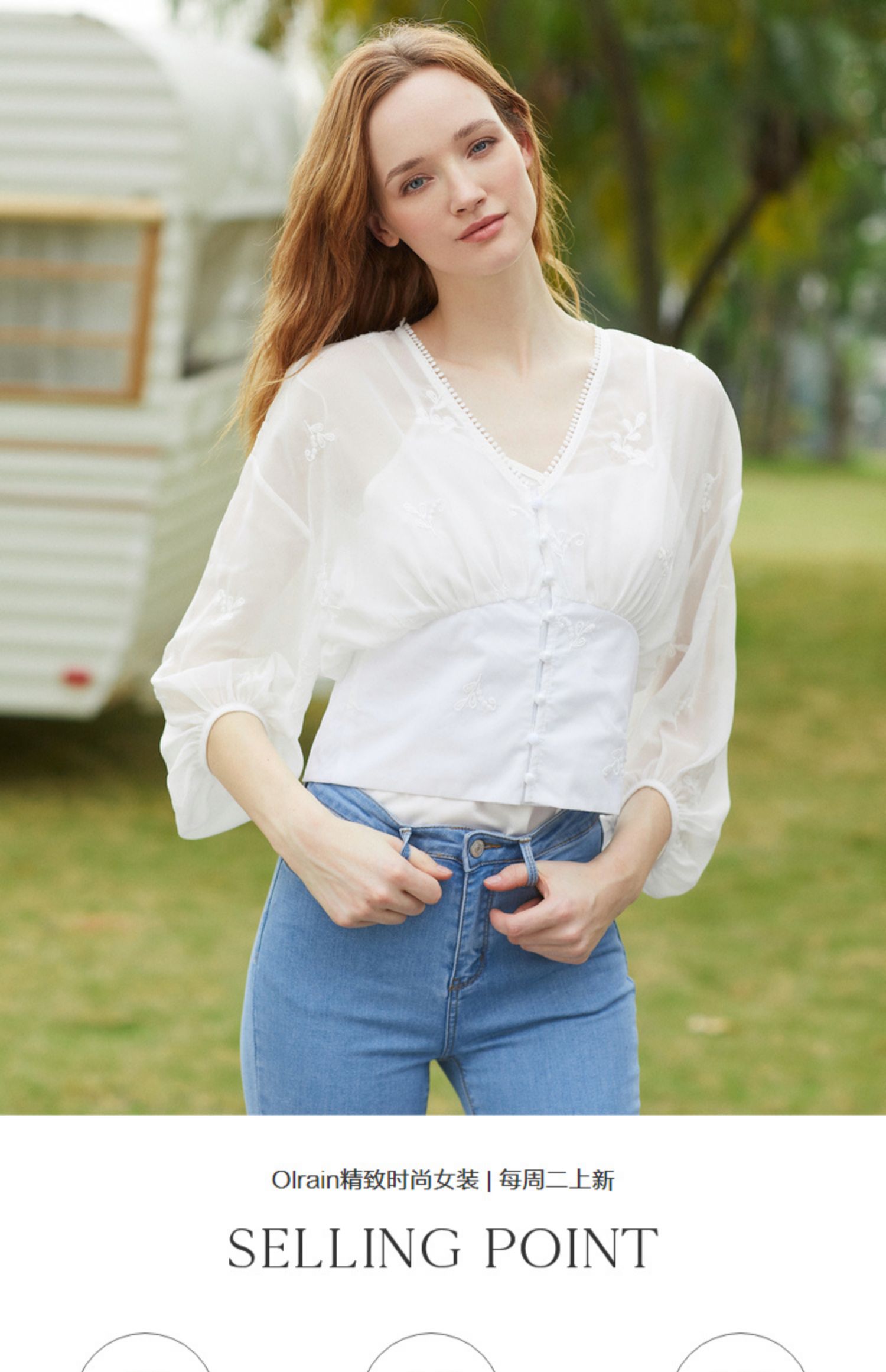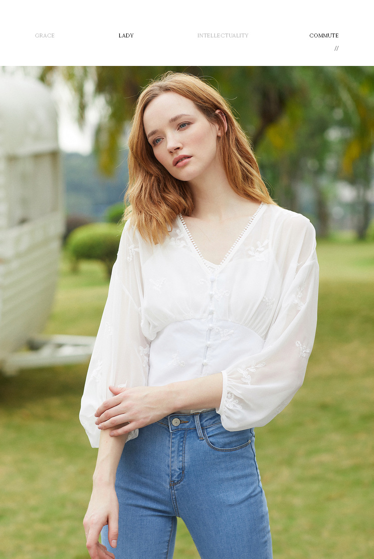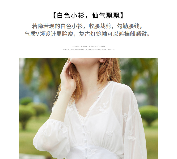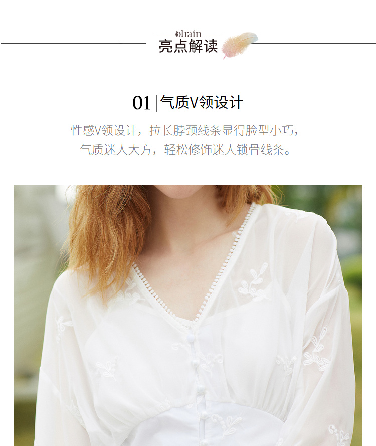 欧芮儿2019夏装新款白色V领蕾丝衫超仙女上衣甜美洋气质网纱小衫