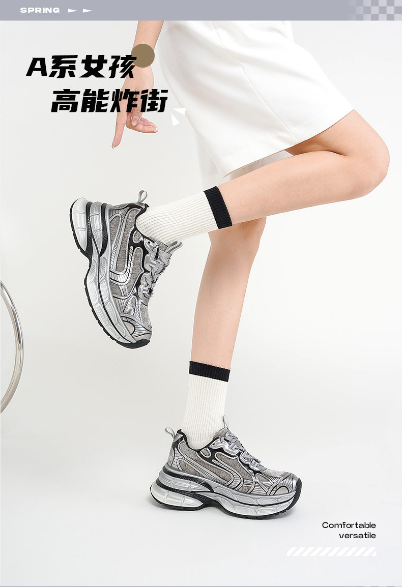 预售7天|Safiya/索菲娅2025潮酷时尚百搭小个子增高轻便休闲运动老爹鞋SFD3112001