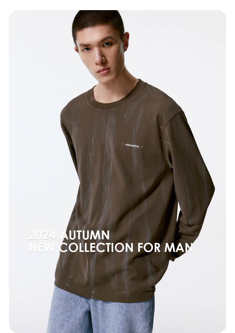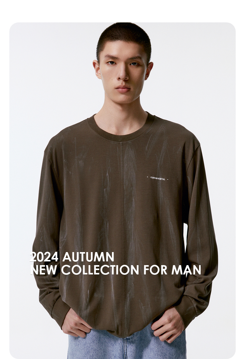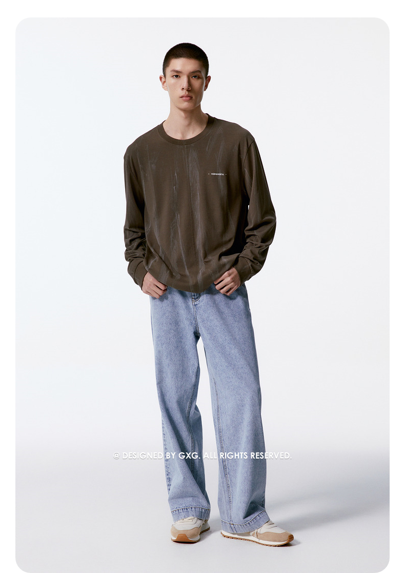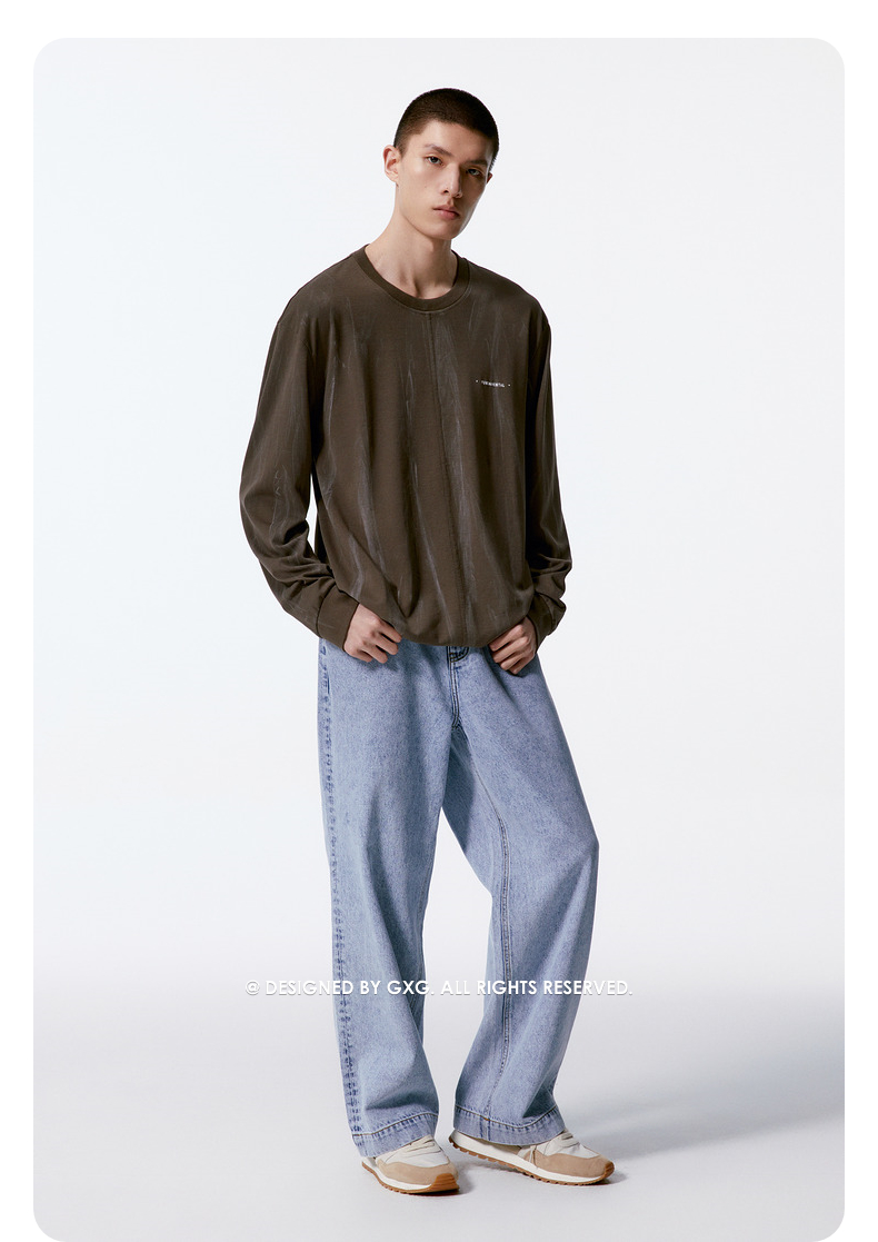 GXG男装 棕色潮流印花时尚圆领长袖T恤男 24年秋季热卖G24X343008