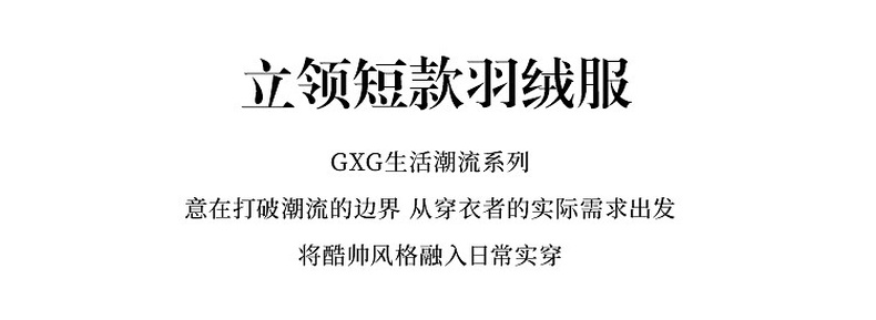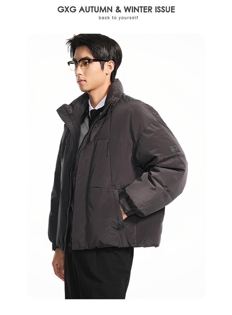 GXG男装【85鸭绒】冬季纯色防寒保暖休闲男式立领短款羽绒服K&C
