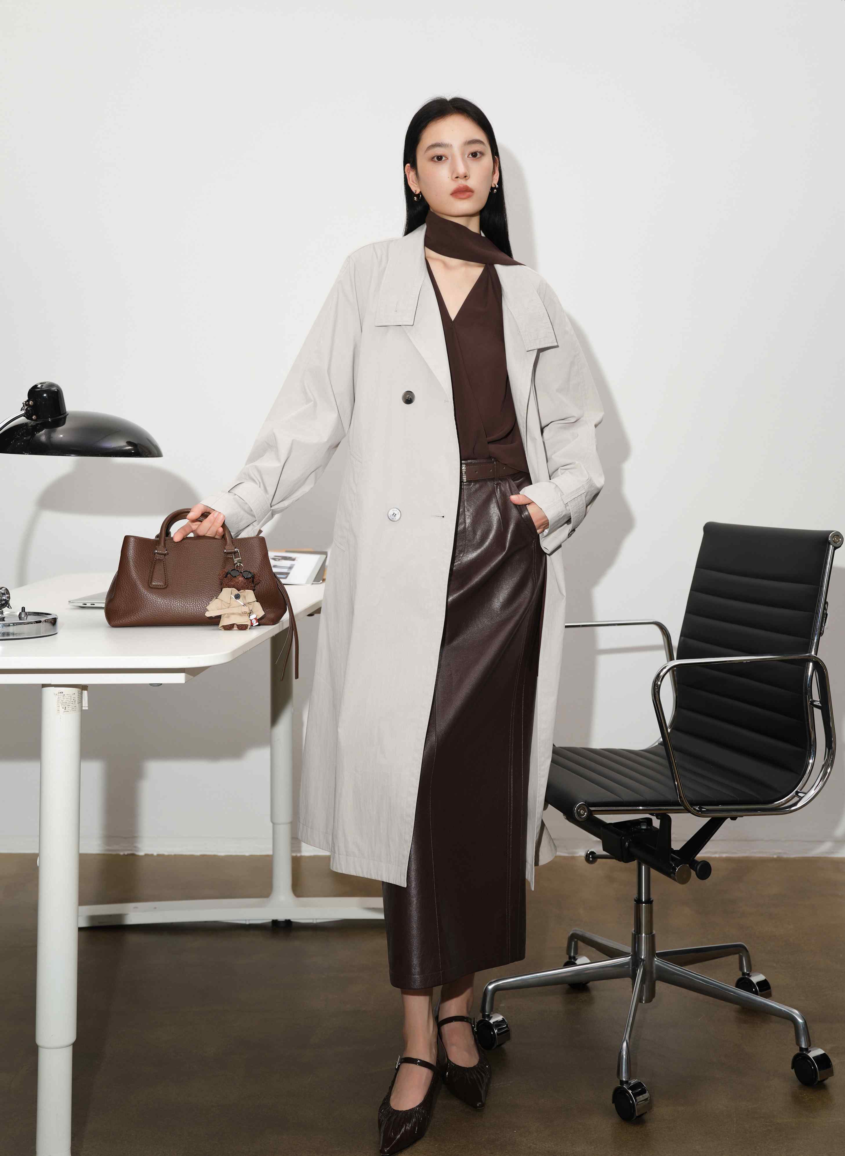 【商场同款】伊芙丽质感冷调收腰长款风衣1G8260281