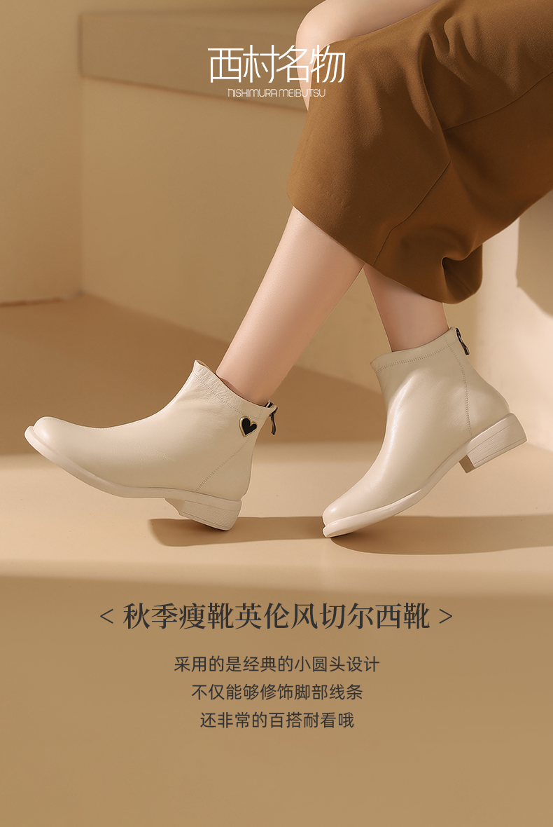 西村名物2023秋冬季新款秋季瘦靴英伦风切尔西靴低筒时尚靴T23DS45941