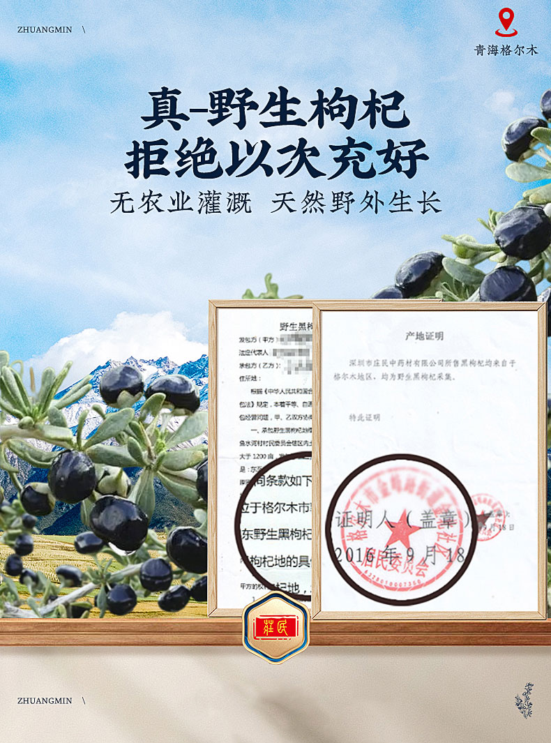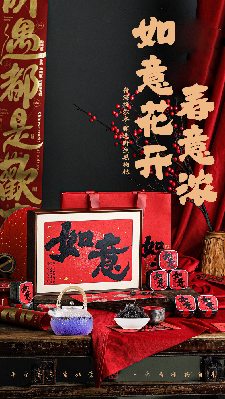 庄民野生黑枸杞如意礼盒 180g 小罐独立包装 年货好礼 国潮包装 包邮