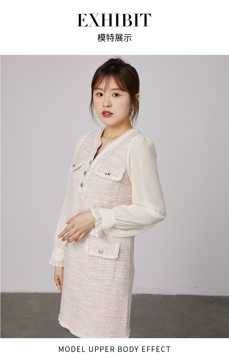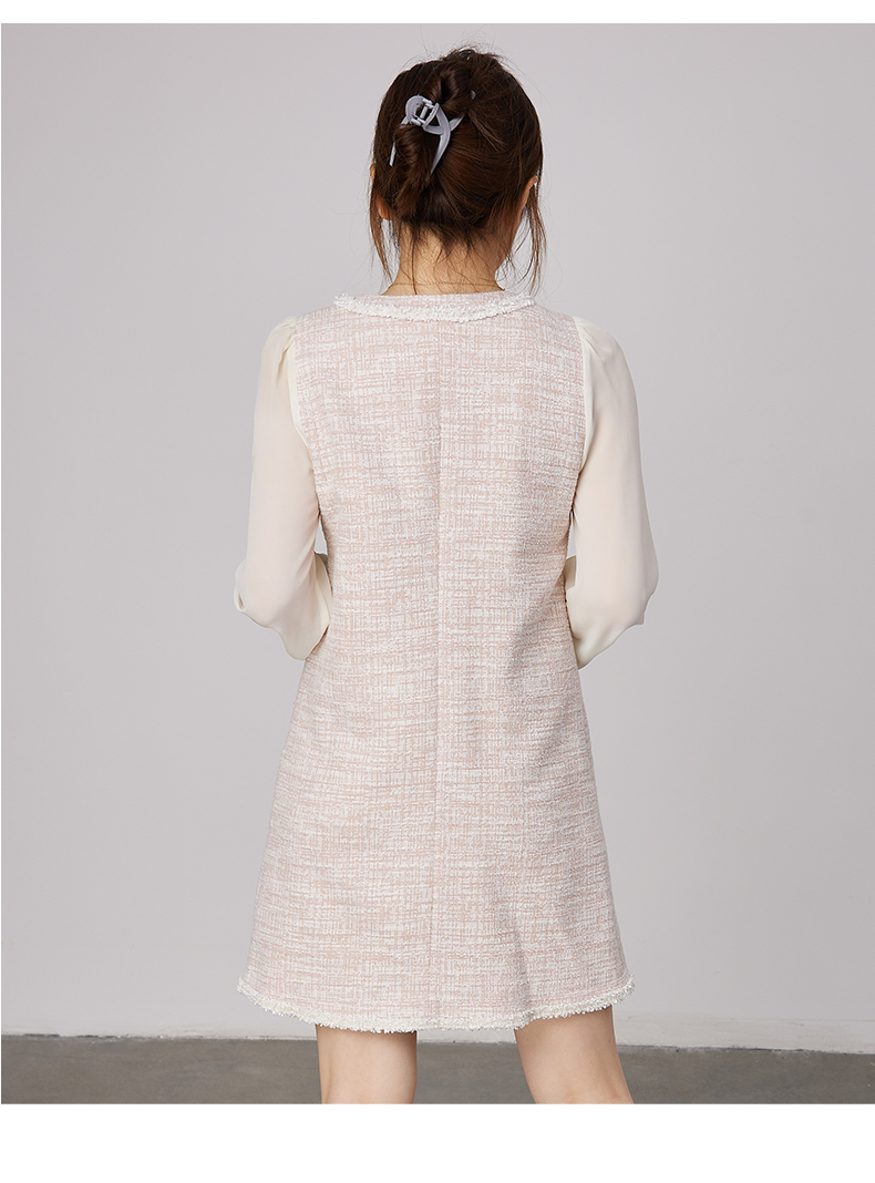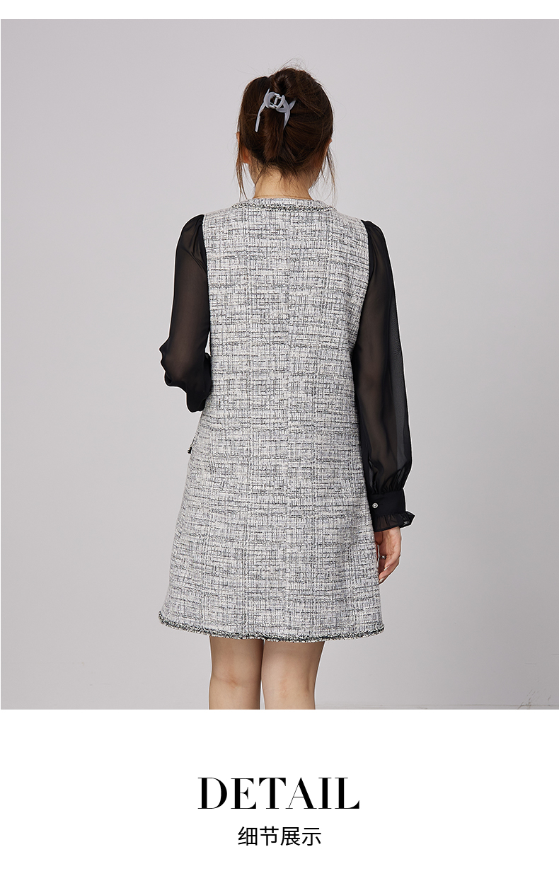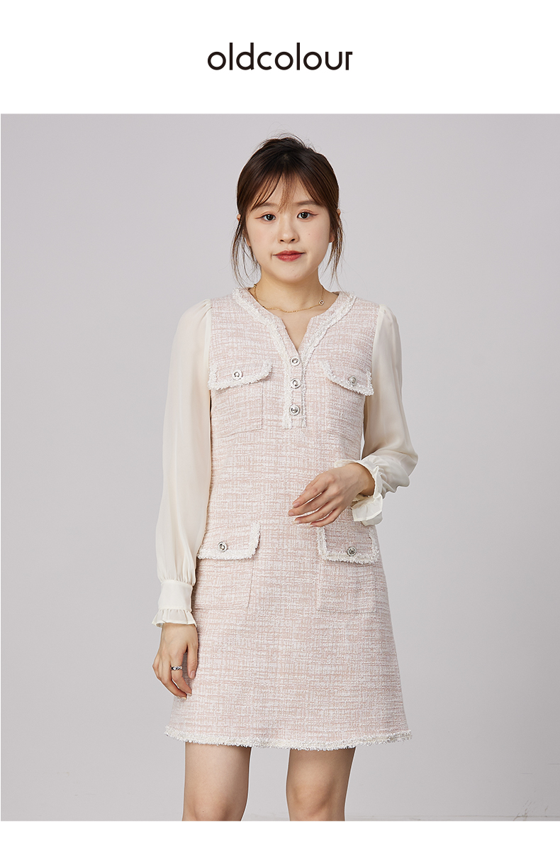 oldcolour2021秋商场同款法式小香风假两件气质连衣裙N34103479