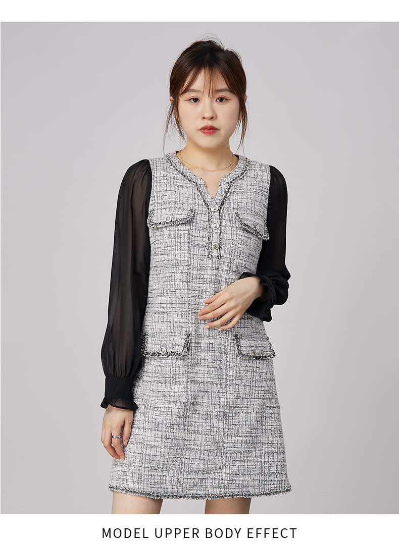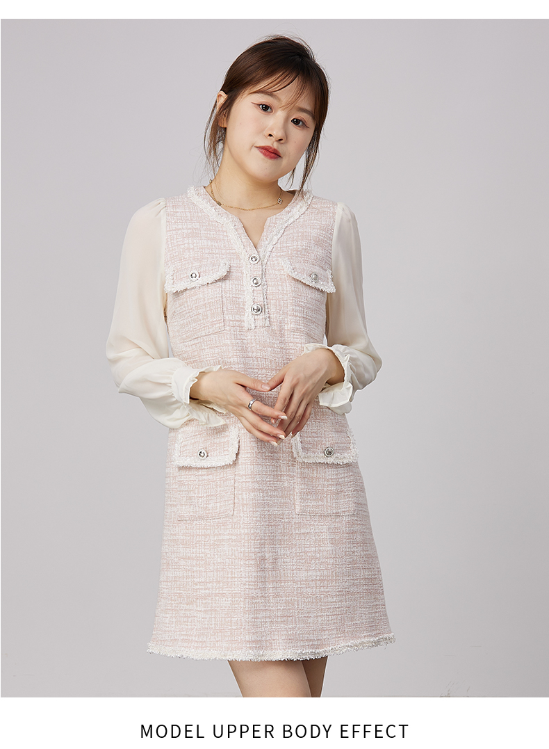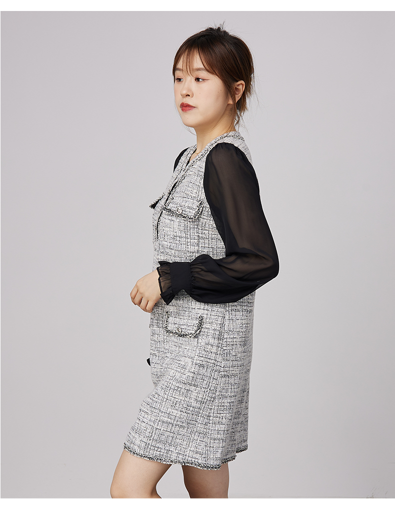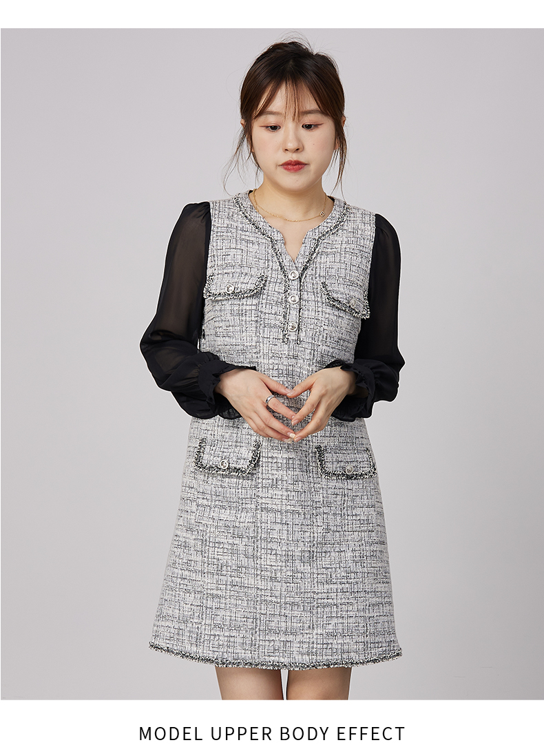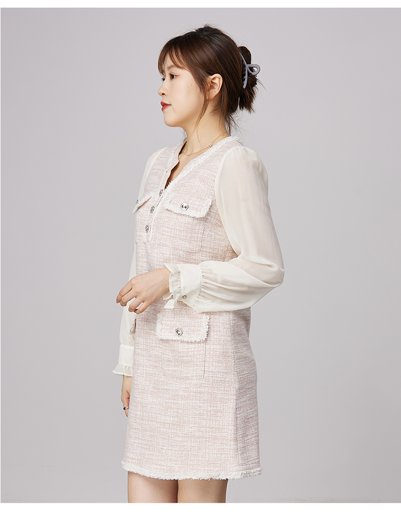 oldcolour2021秋商场同款法式小香风假两件气质连衣裙N34103479