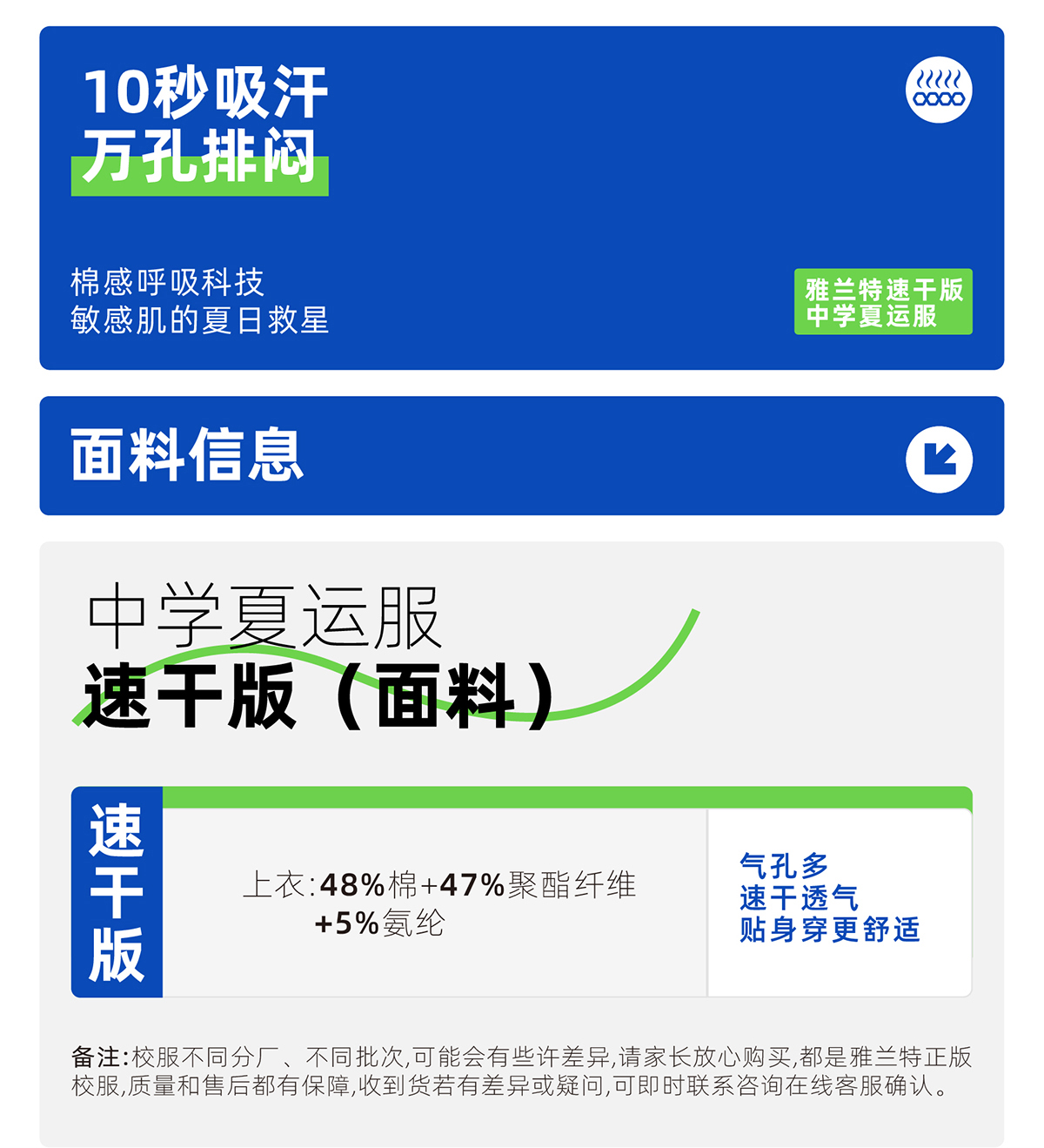 中学夏季男女生速干上衣短袖【雅兰特深圳校服】