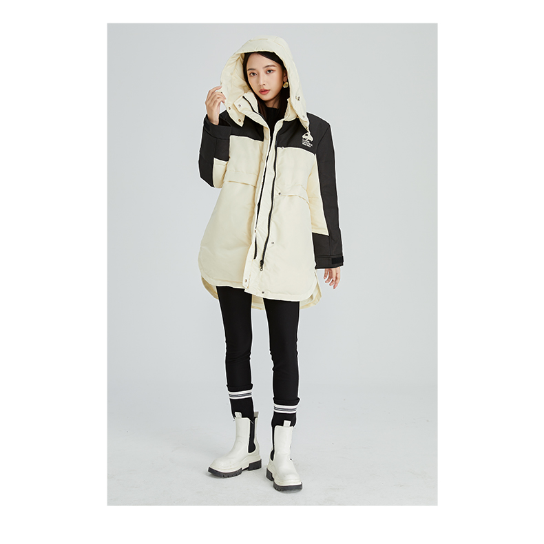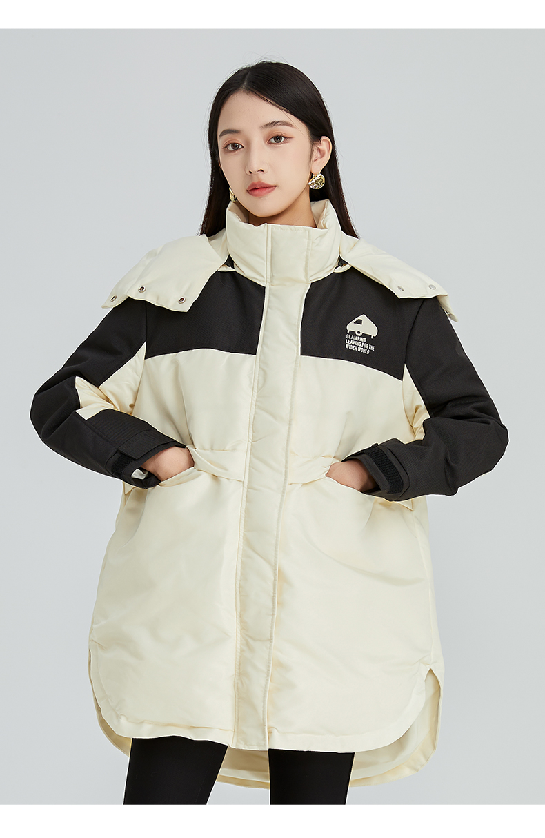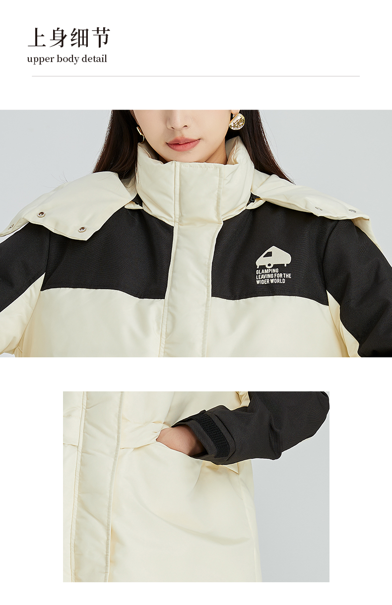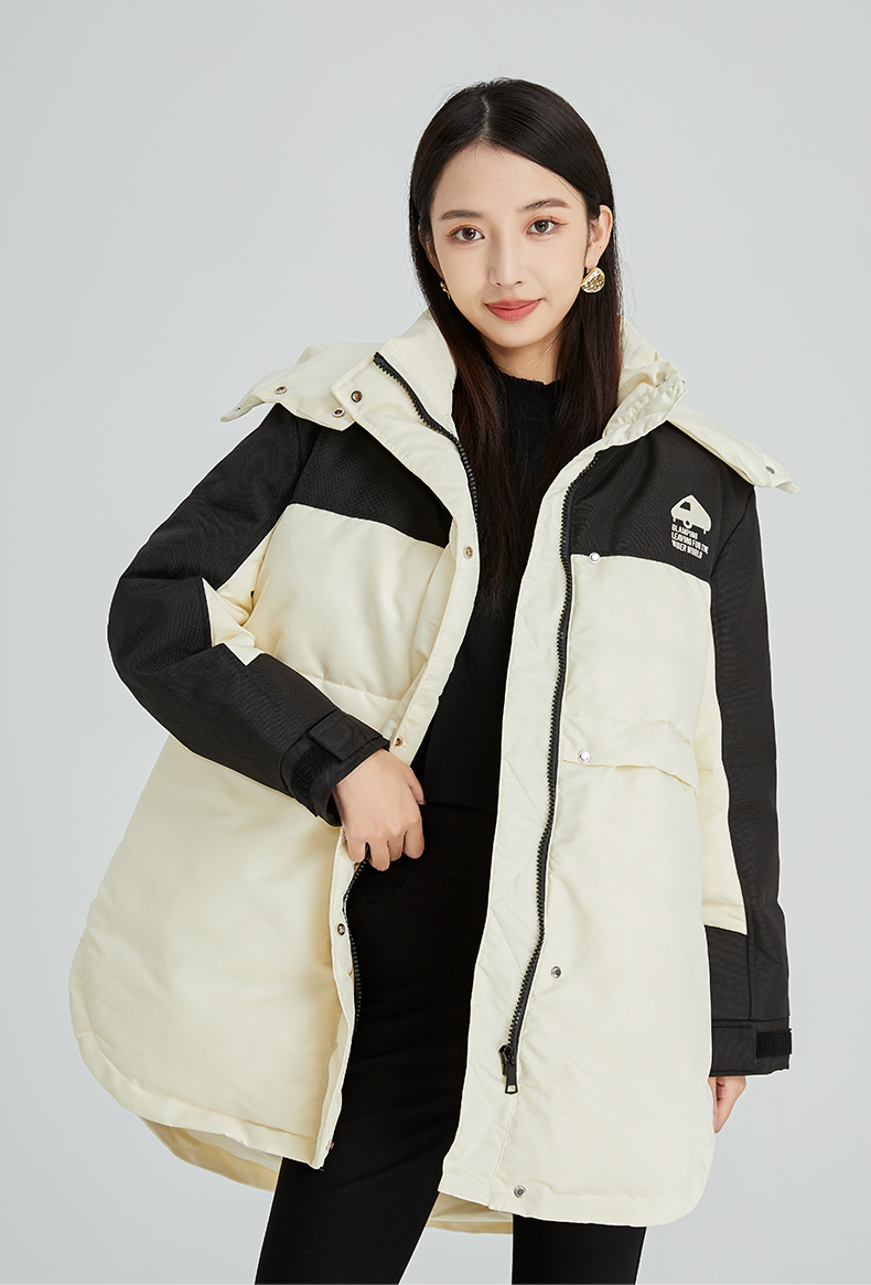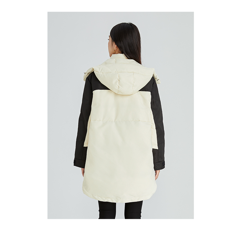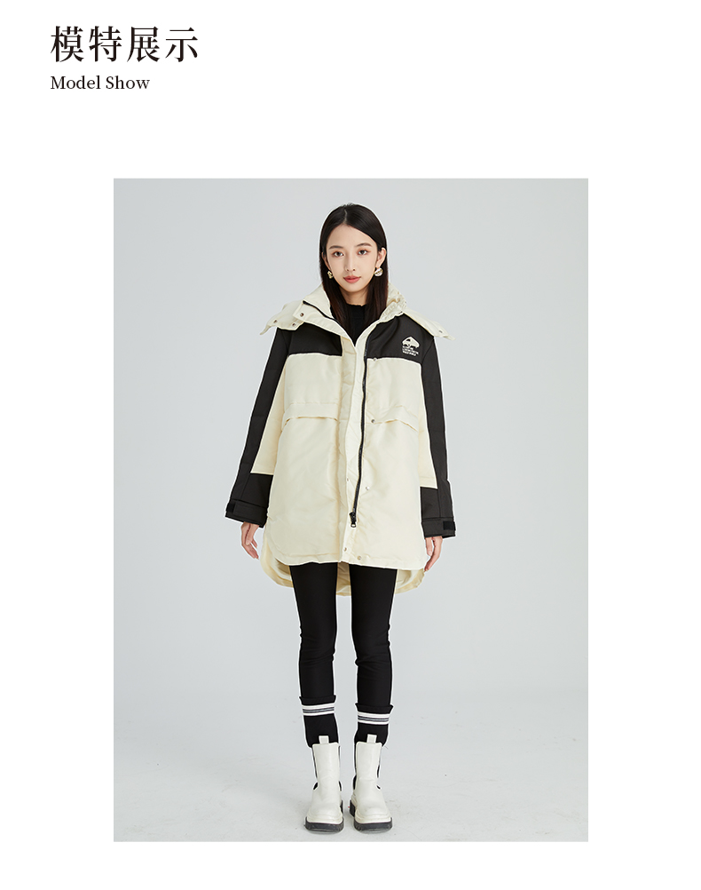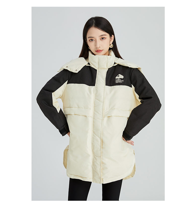 oldcolour2022年冬季新款通勤时尚双拼色连帽羽绒服女外套女