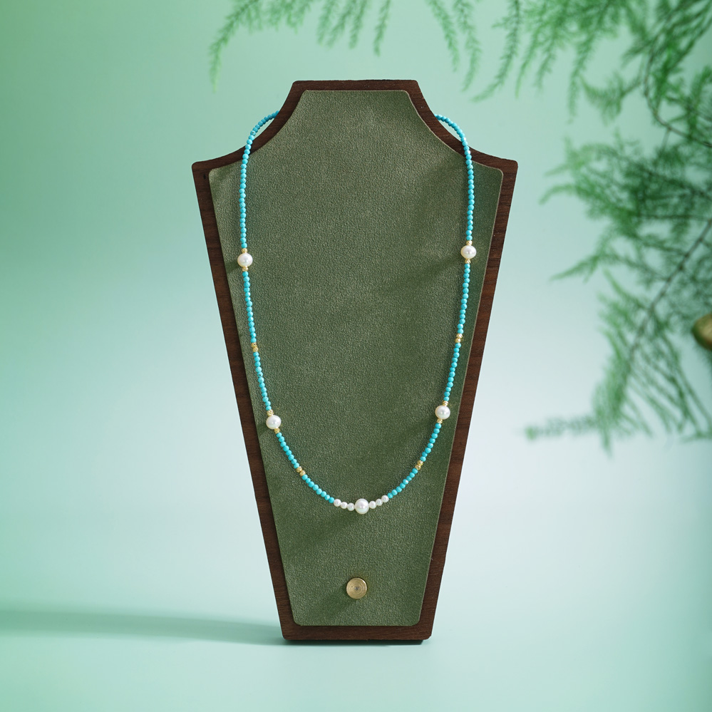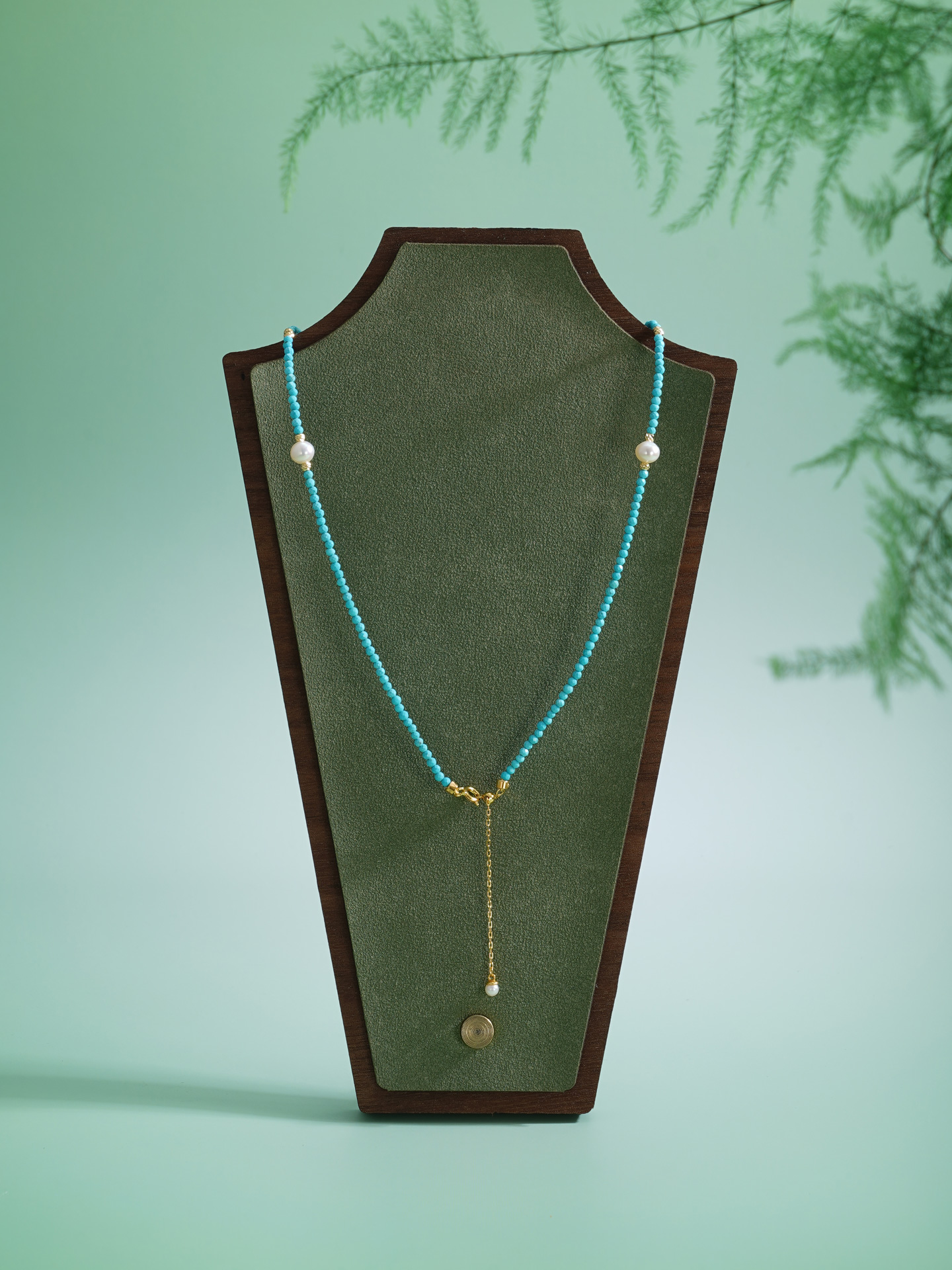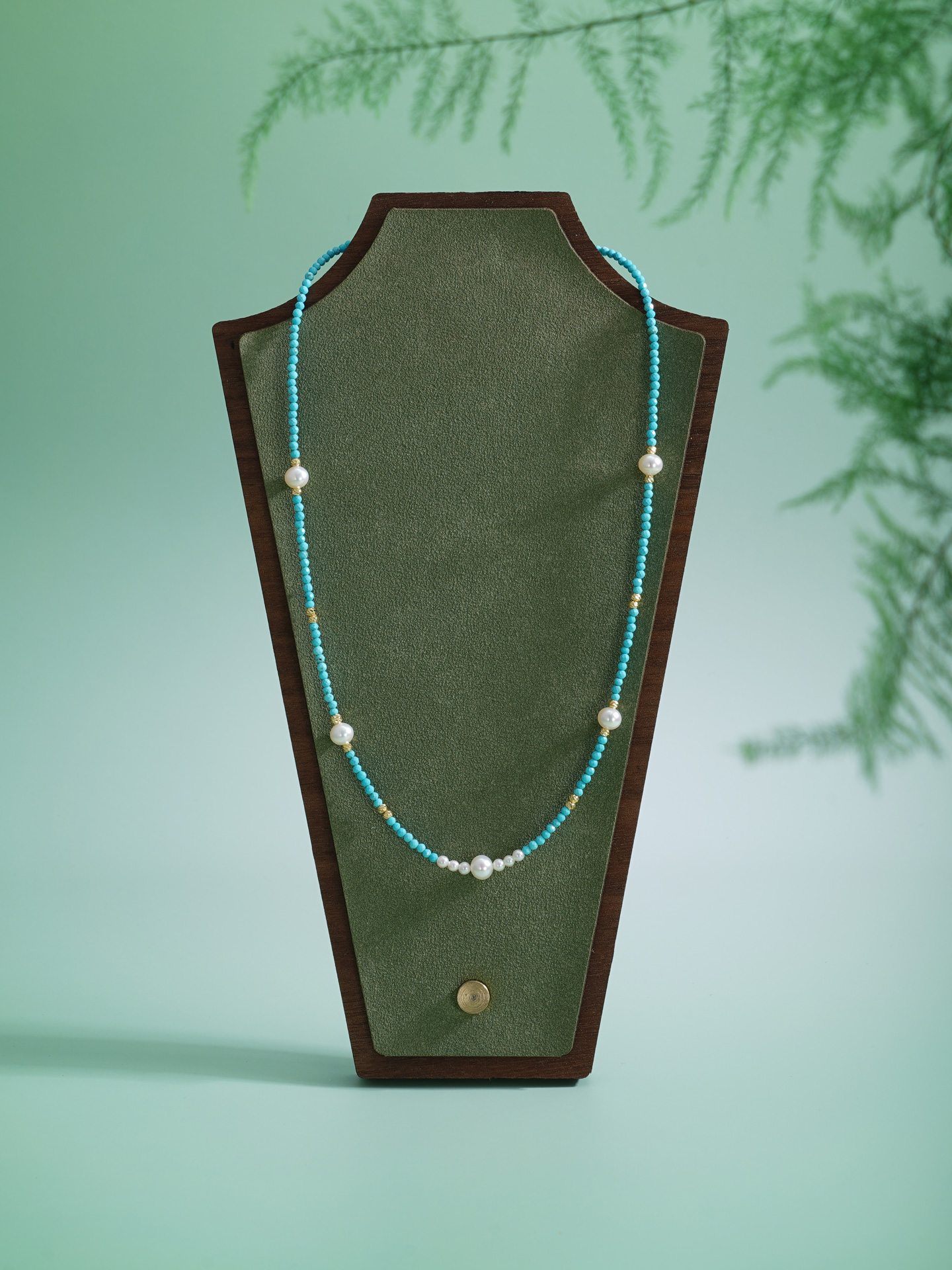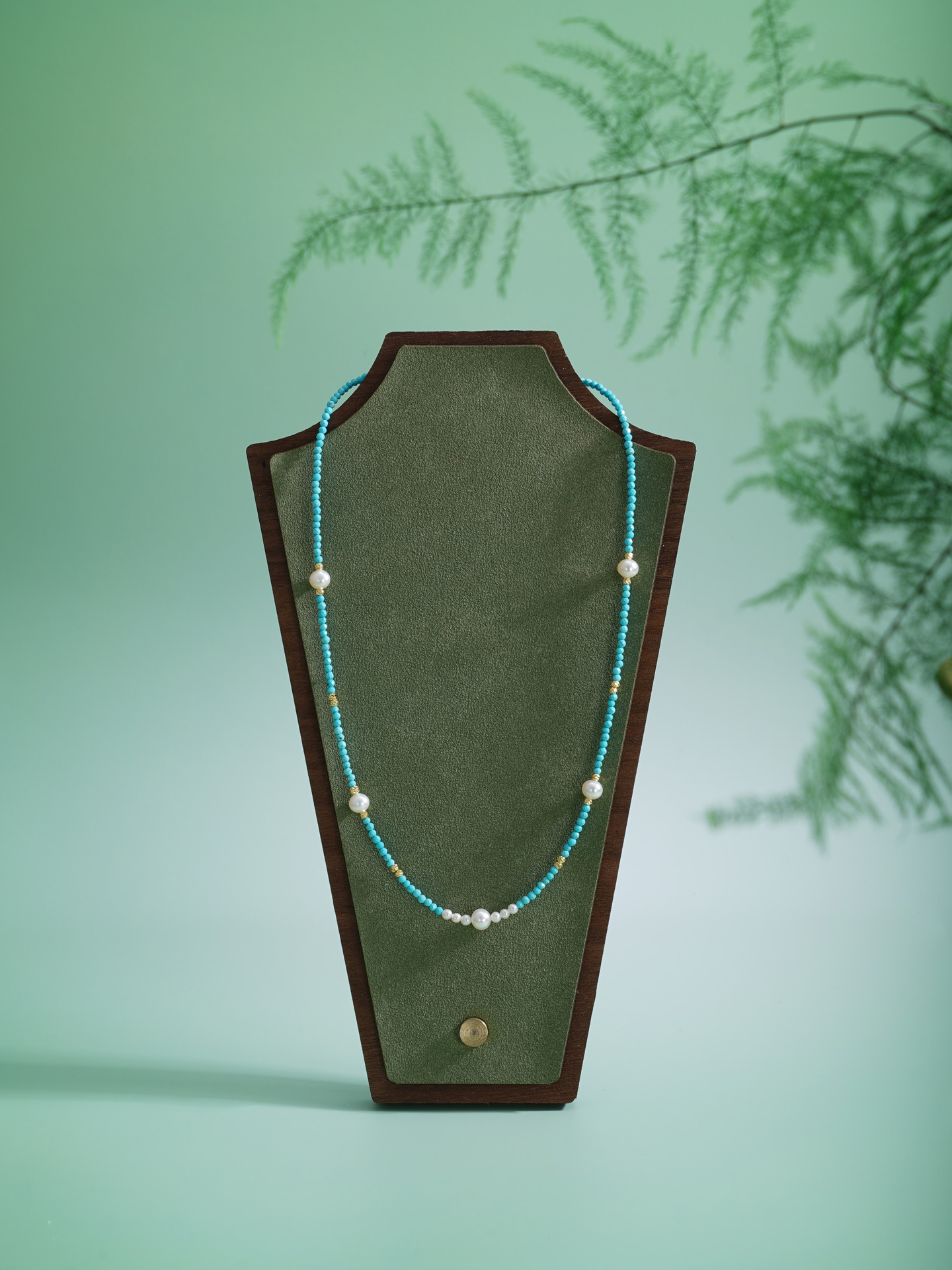 子佩集【福海华光】银S925珍珠惜王妃项链【ZZXL003】2mm蓝珠5.8mm大珠绿松石2601