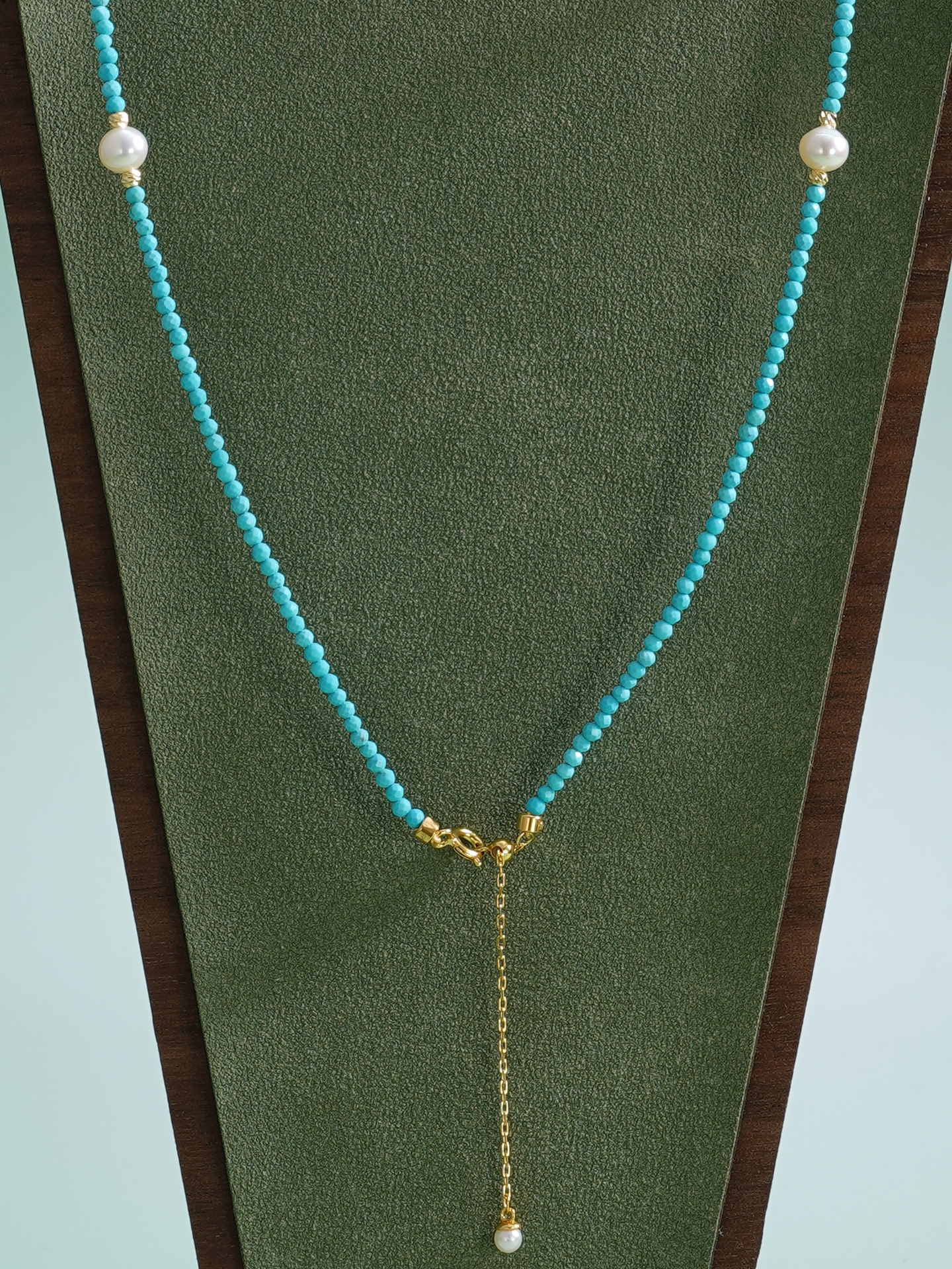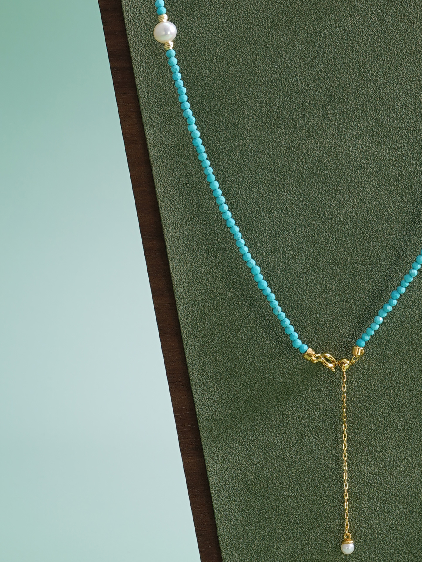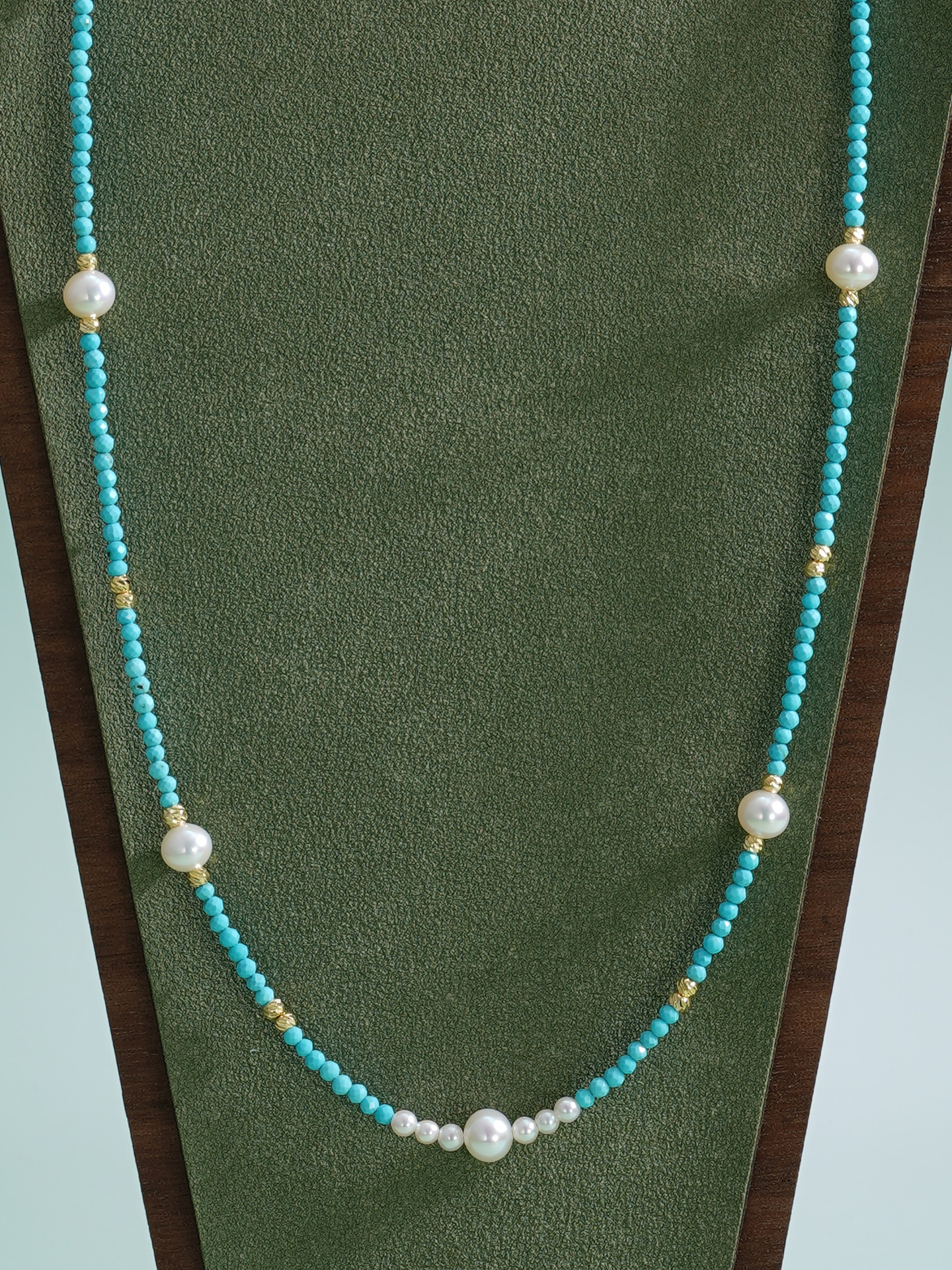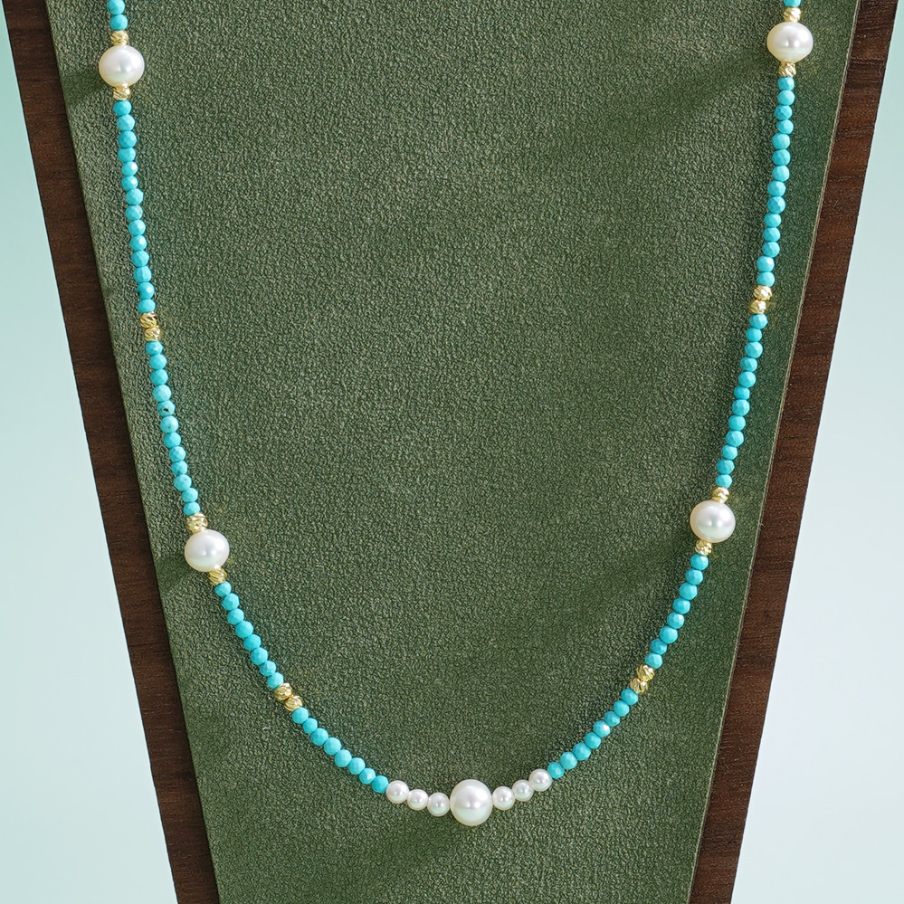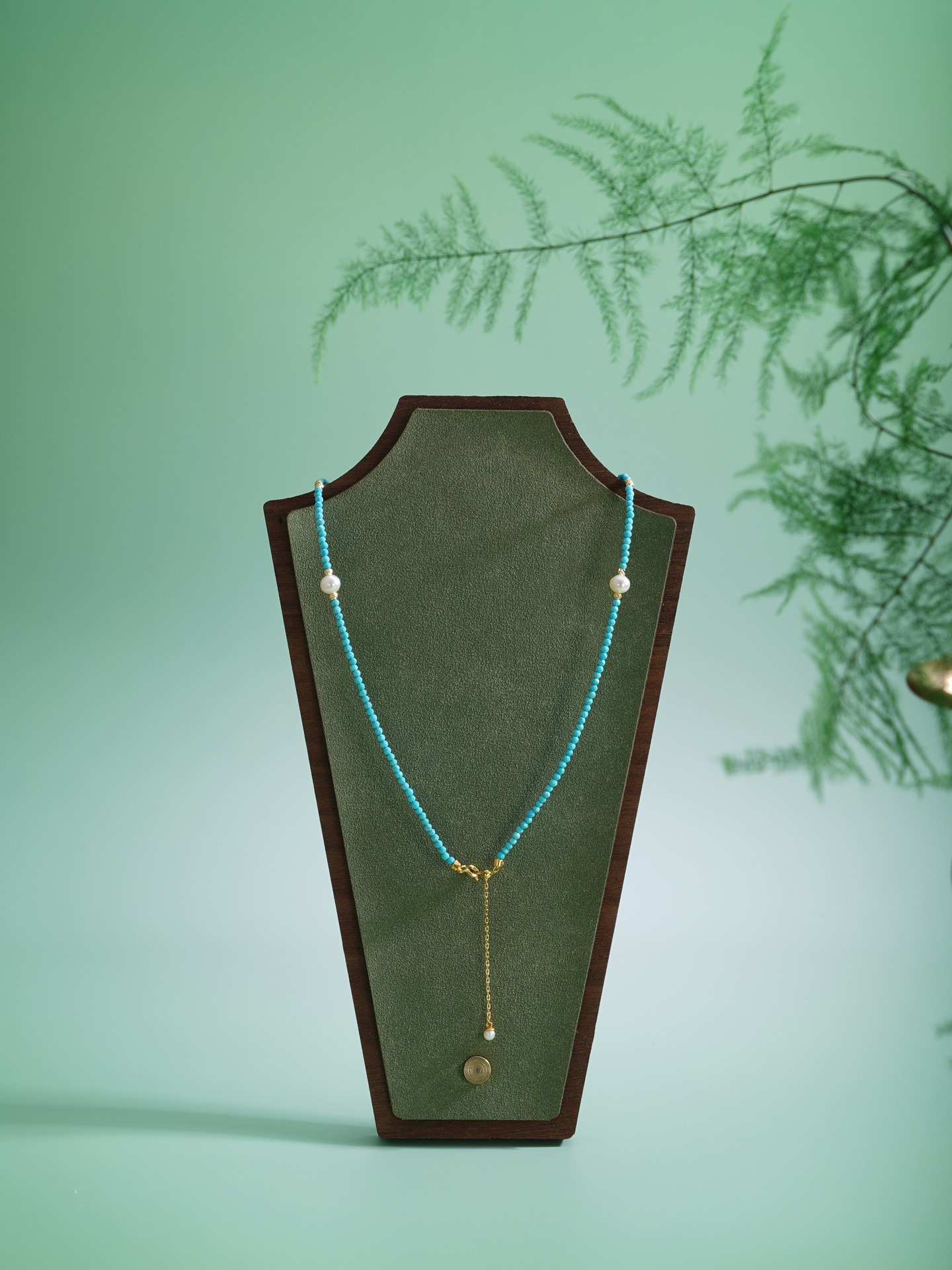 子佩集【福海华光】银S925珍珠惜王妃项链【ZZXL003】2mm蓝珠5.8mm大珠绿松石2601