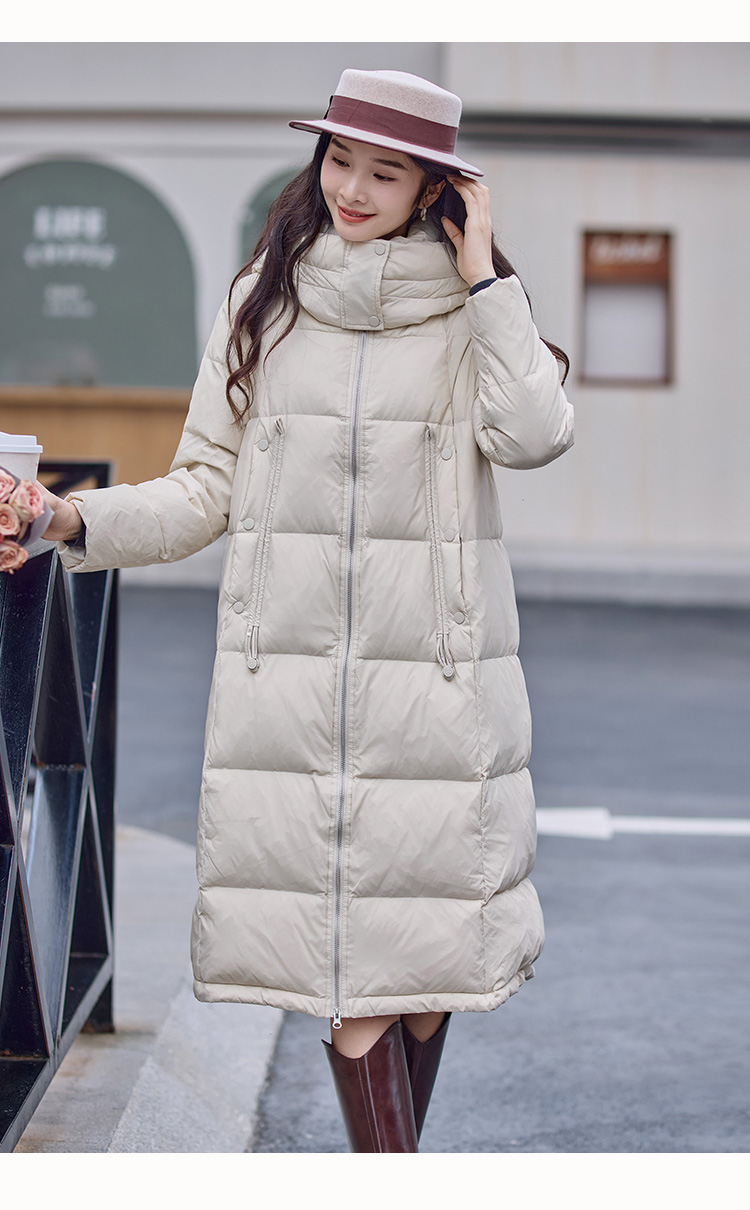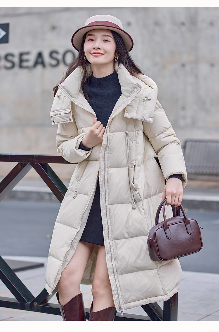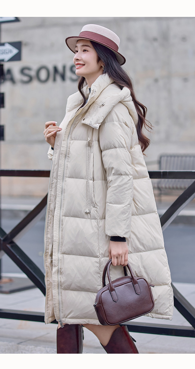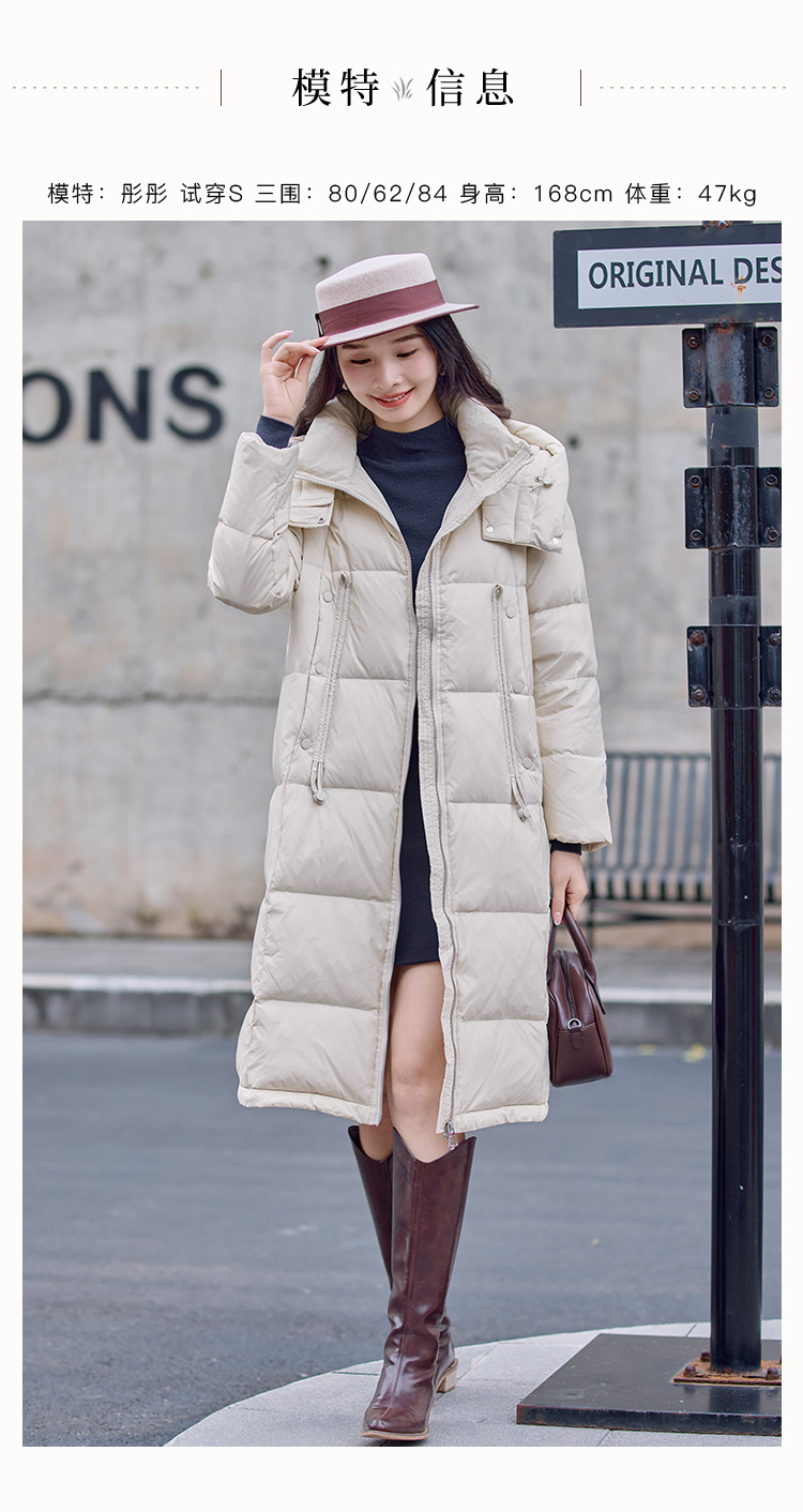 红念奶白色鹅绒连帽羽绒服女长款面包服冬季2025新款高端冬装外套