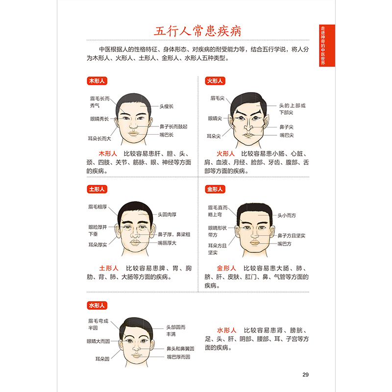 【前言】中医学博大精深、不简单!健康长寿是人类自古以来不倦追求的一项基本目标。在中华民族漫长的历史中,各族各界人民,上至帝王将相,下至贩夫走卒,无不强烈地追求健康长寿,努力探索养生,更将其与中医学结合,在中医理论的指导下,发展形成内涵丰富、方法多样、特色鲜明的中医学体系。可以说,中医学具有悠久的历史、独特的理论知识、丰富的方法、卓有成效的实践经验、鲜明的东方色彩和浓郁的民族风格,是我国传统文化中的瑰宝,也是医学宝库中的一颗璀璨明珠。中医学以阴阳五行作为理论基础,将人体看成气、形、神的统一体,通过望、闻、问、切四诊合参的方法,探求病因、病性、病位,分析病机及人体内五脏六腑、经络关节、气血津液的变化,判断邪正消长,进而得出病名,归纳出证型,以辨证论治原则,制定“汗、吐、下、和、温、清、补、消”等治法,使用中药、艾灸、针灸、推拿、按摩、拔罐、食疗等多种治疗手段,使人体达到阴阳调和而康复。本书共分为七章。章主要介绍了中医学的基本理论,包括中医的历史,阴阳五行学说,藏象学说,气、血、津液,体质,经络穴位等。第二章主要介绍中药学和方剂学的相关知识。第三章到第六章分别介绍了按摩、拔罐、艾灸、刮痧等相关知识和基本方法。读者按照本书的方法,结合自身的实际操作,就可以在家中轻松享受中医养生的乐趣。第七章主要针对日常生活中的不适症状介绍了简单的治疗方法,对于缓解身体不适具有一定的益处。本书主要采用图解的形式,全方位地分析中医基础理论,将中医阴阳五行、藏象学说、经络穴位以及中药学、方剂学的知识,用通俗易懂、简单直观的表格和有趣的图画展现出来。即便从来没有接触过中医学的人,通过阅读此书,也能对中医学有所认知, 为自己的健康保驾护航。