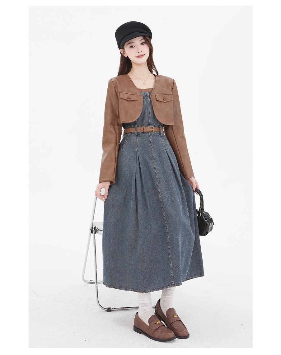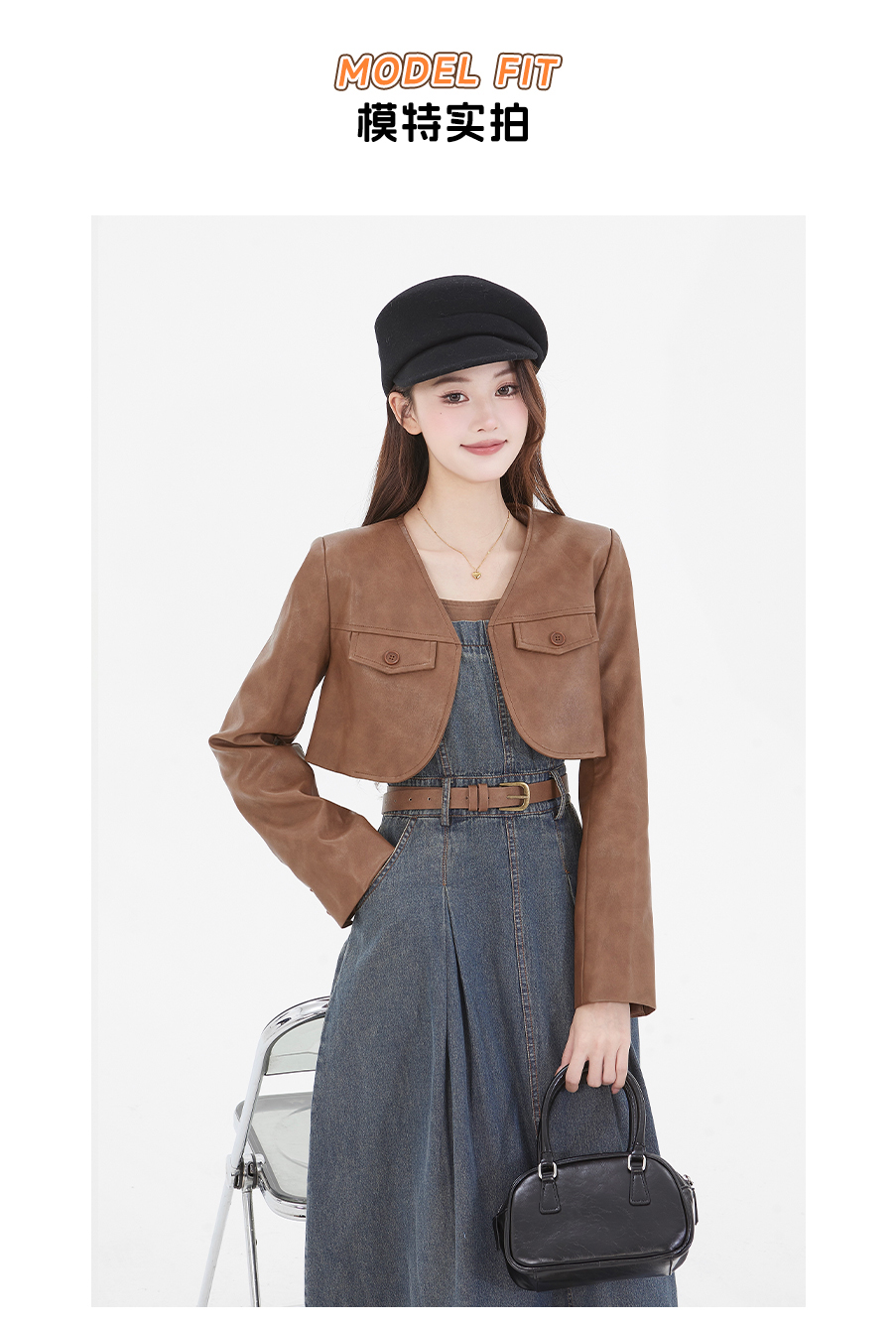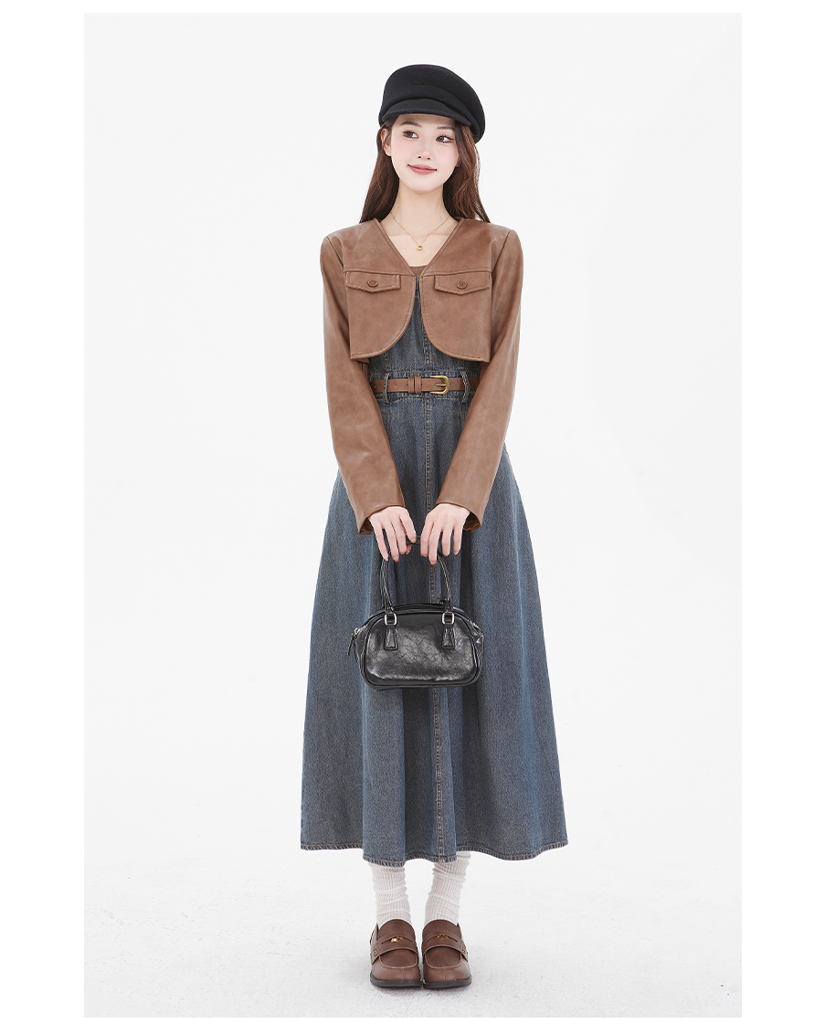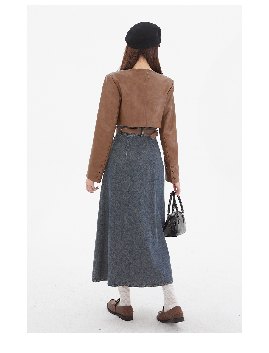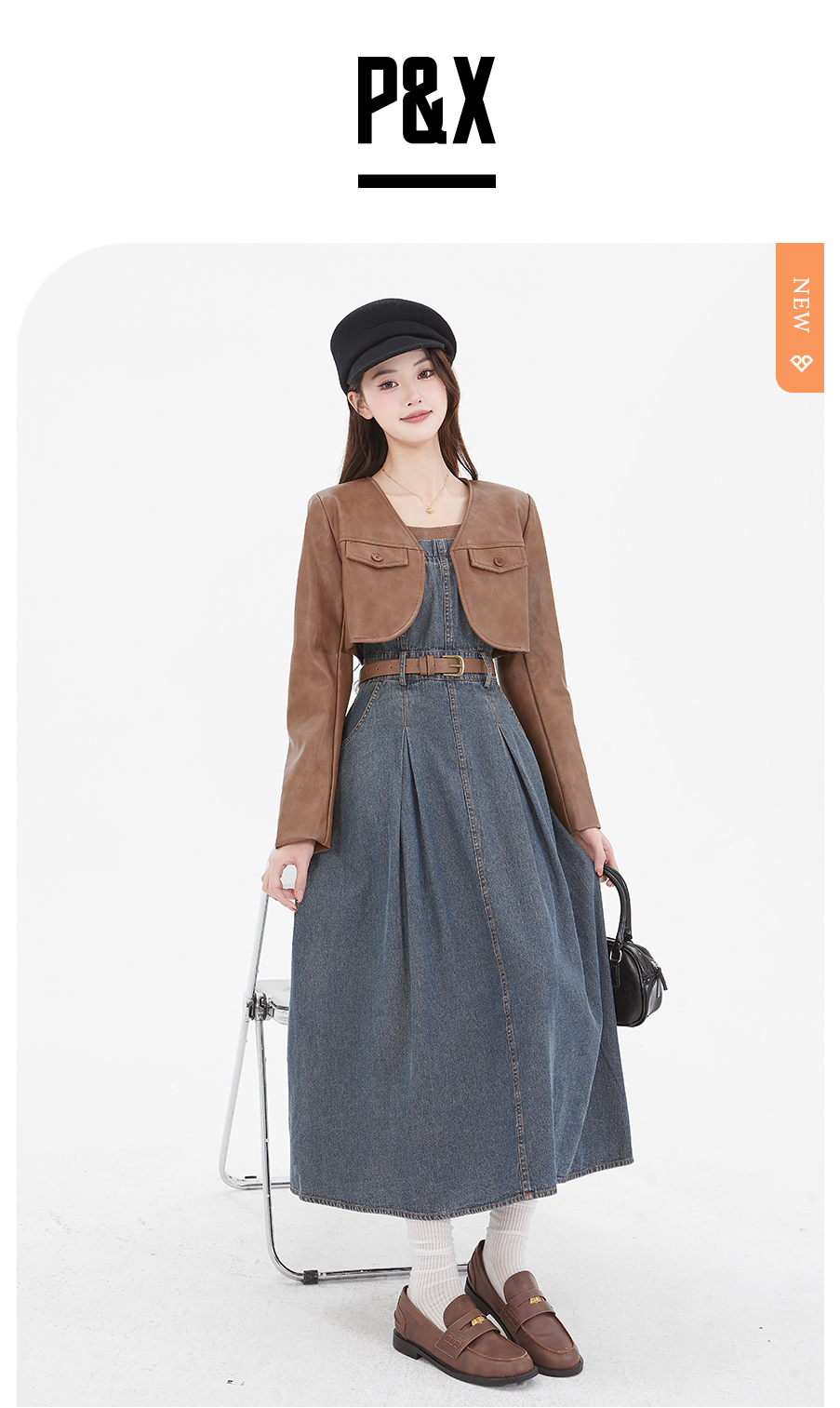 P&X设计师女装 新款复古套装长裙A字裙短款外套825114047 咖/蓝