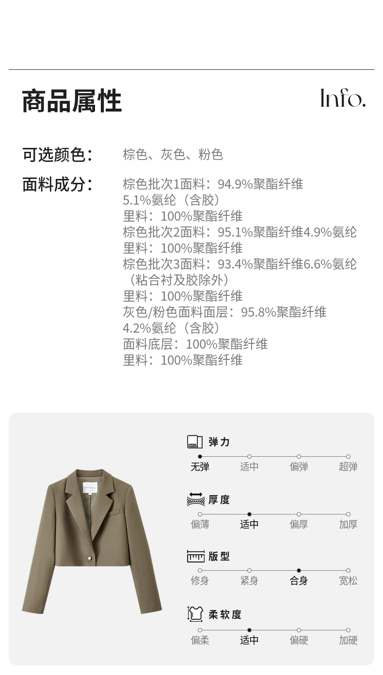 【内购】气质通勤西装领一粒扣小个子短款长袖休闲西装外套-153XC3221X