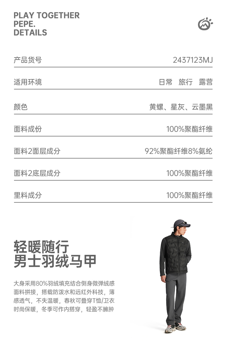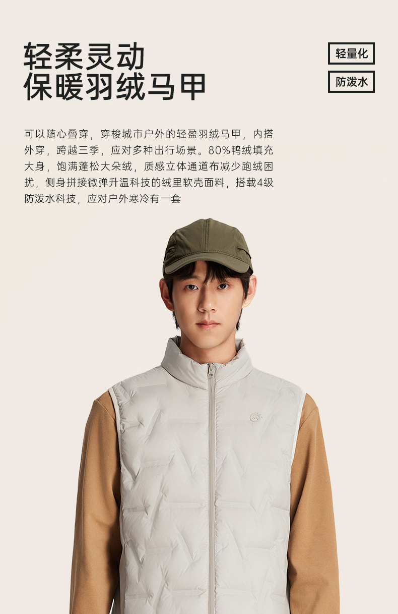 探拓户外保暖羽绒马甲男士轻薄立领无袖背心80鸭绒羽绒服夹克外套