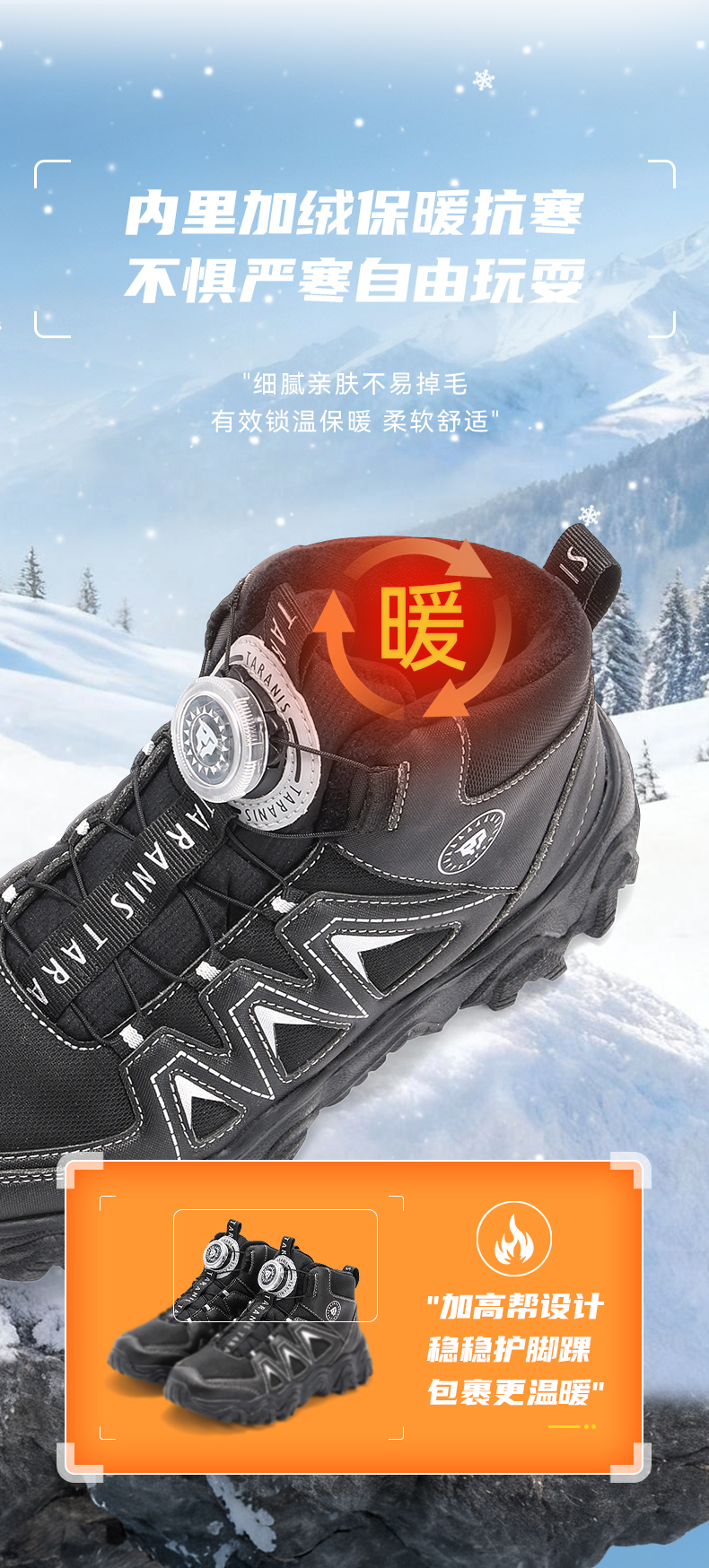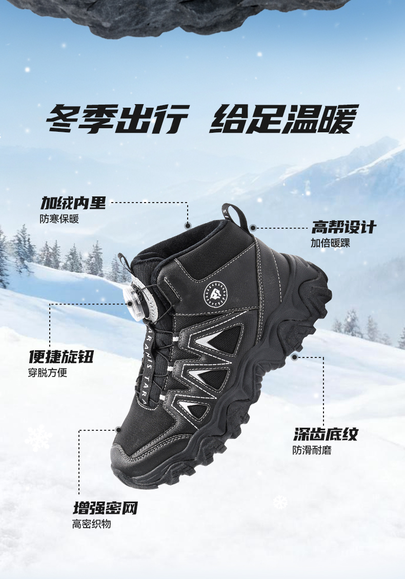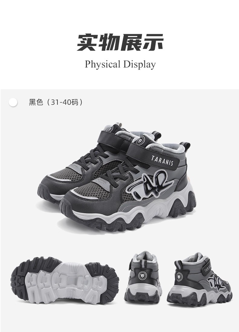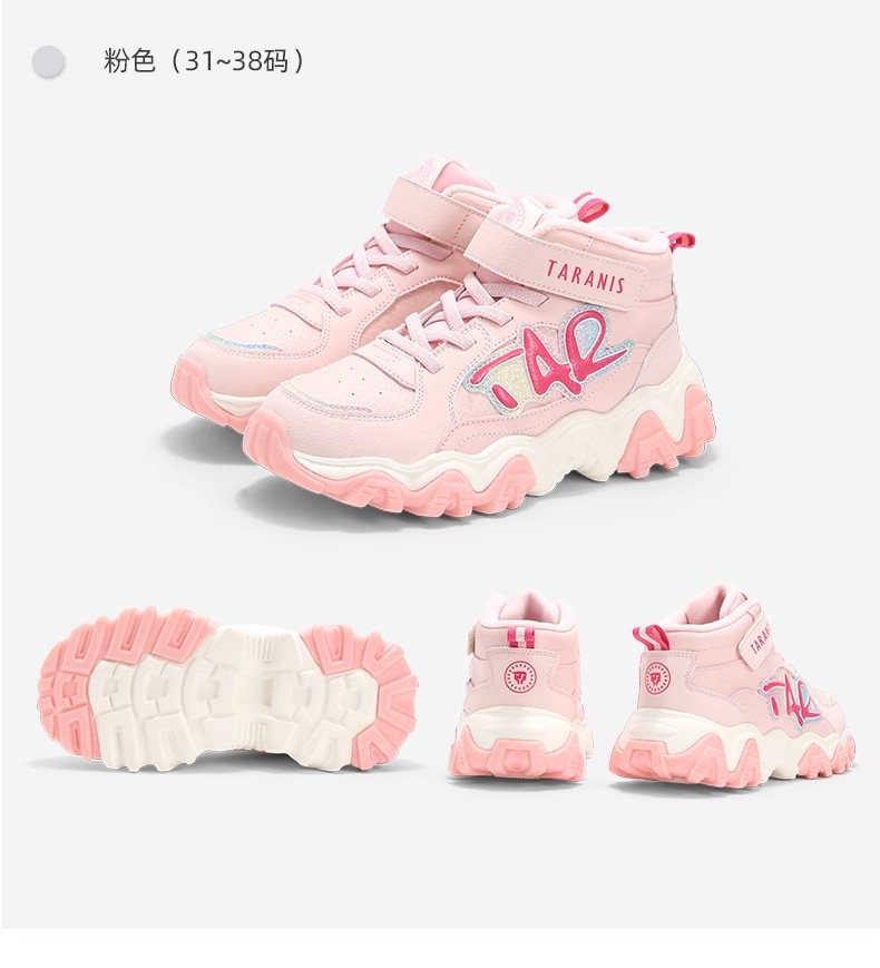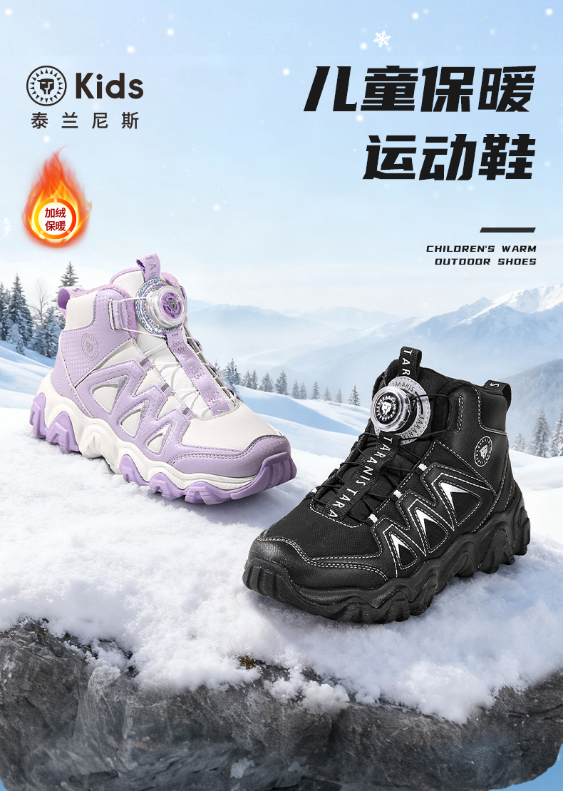 泰兰尼斯kids儿童保暖棉靴冬季新款中大童加绒运动鞋男女童雪地靴