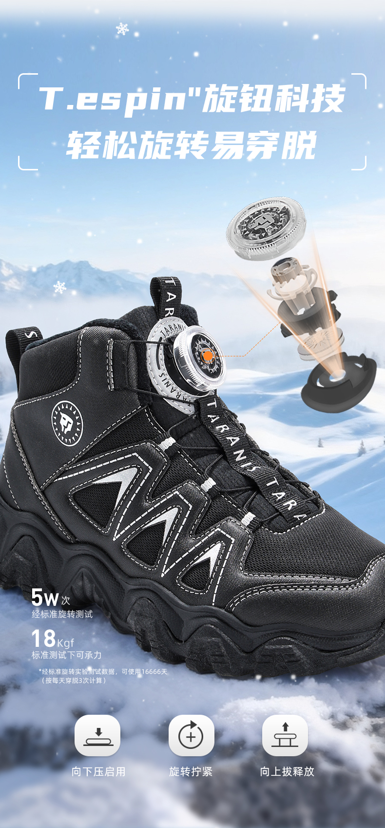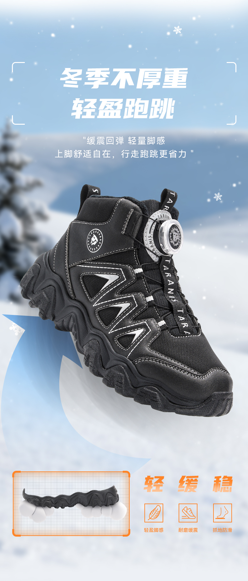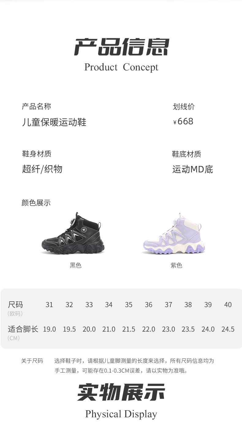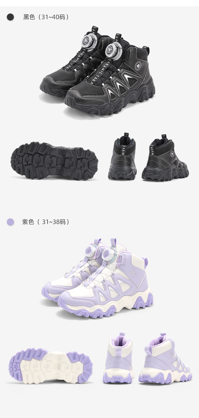 泰兰尼斯kids儿童保暖棉靴冬季新款中大童加绒运动鞋男女童雪地靴