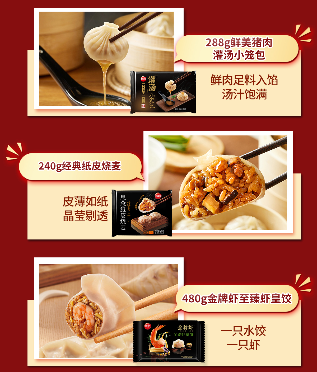 思念480g金牌虾水饺组合装 3包装