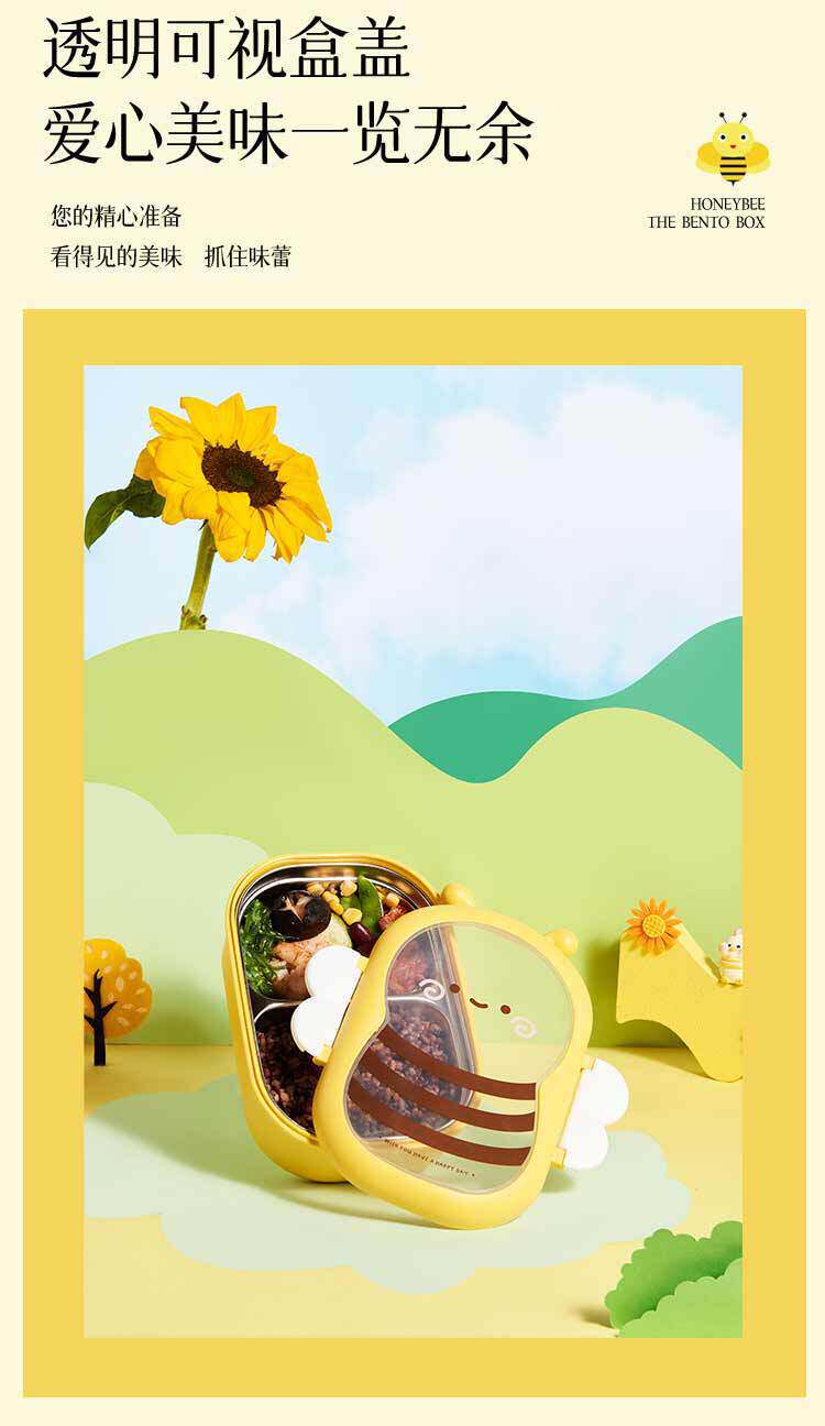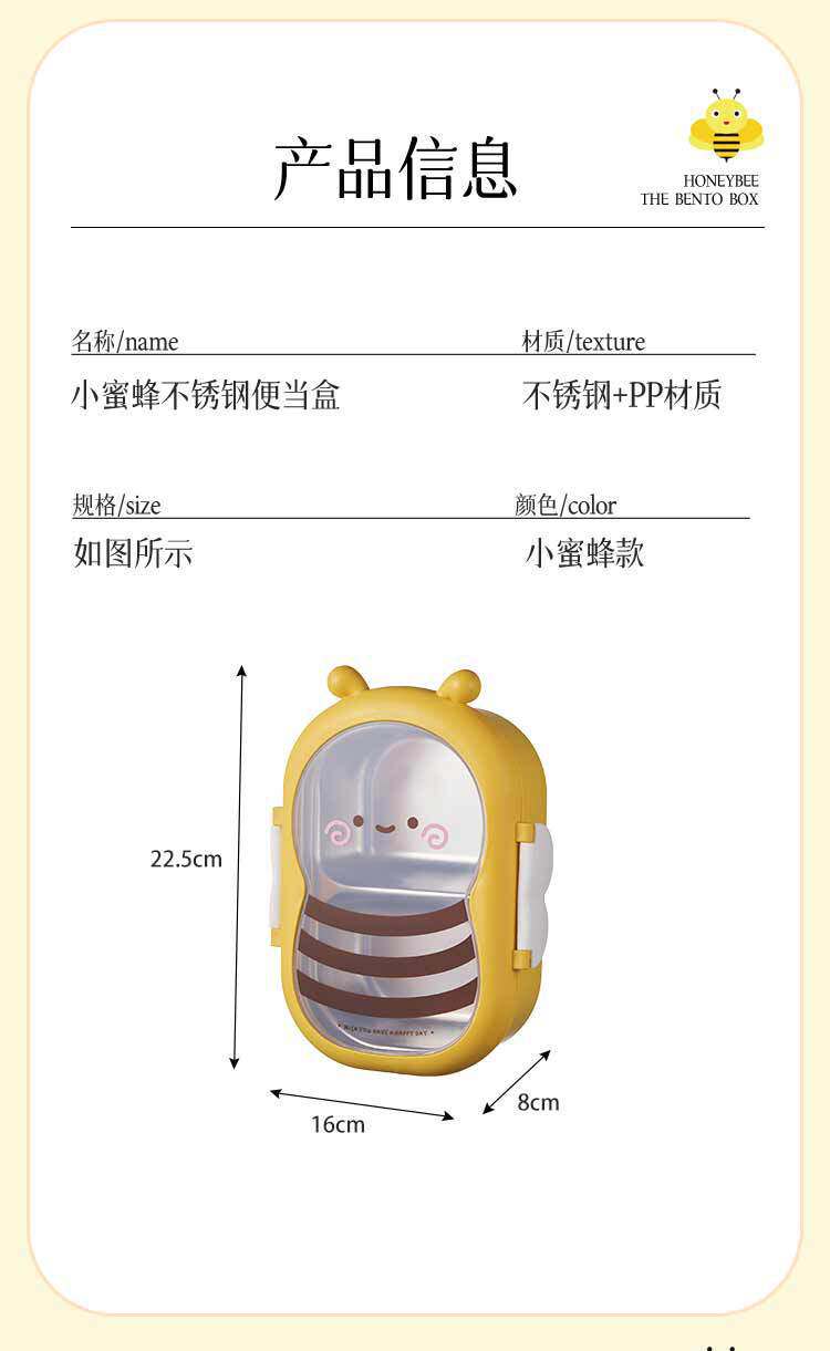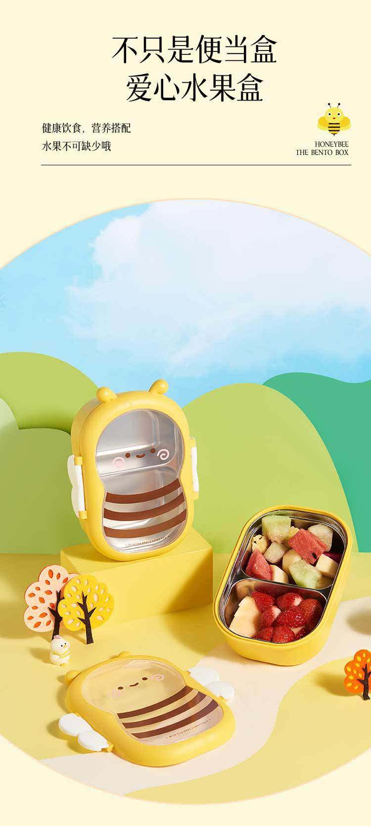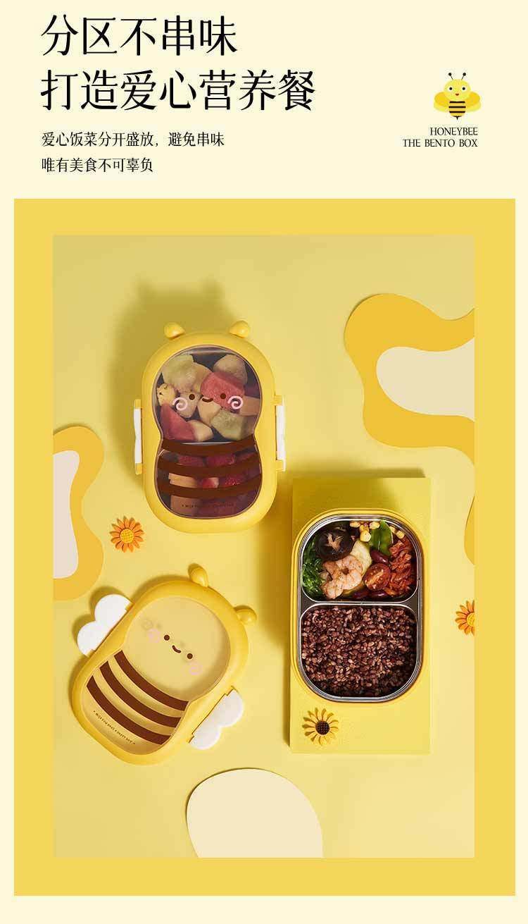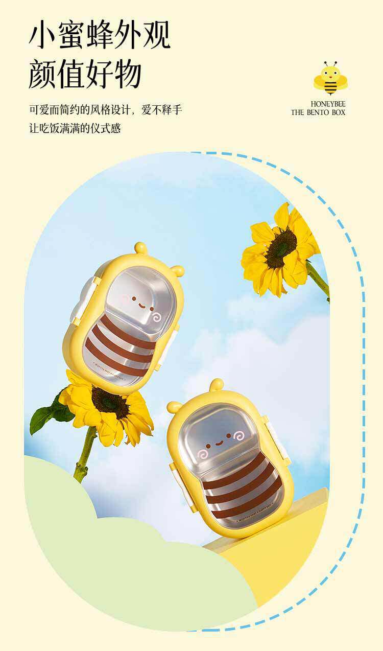 【304不锈钢双格蜜蜂饭盒】小蜜蜂上班族饭盒 卡通不锈钢便当餐盒 学生食堂专用上学盒保温分格