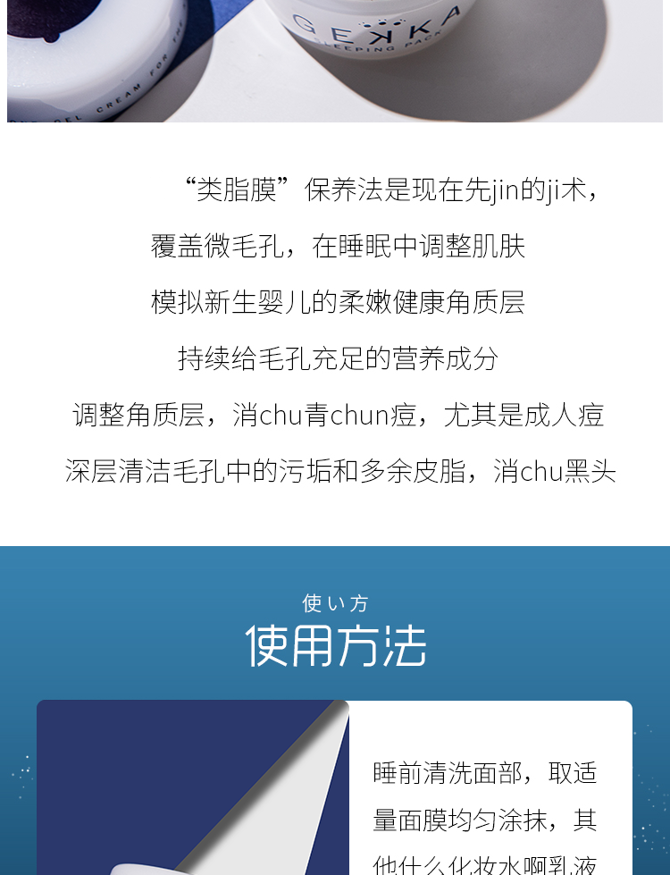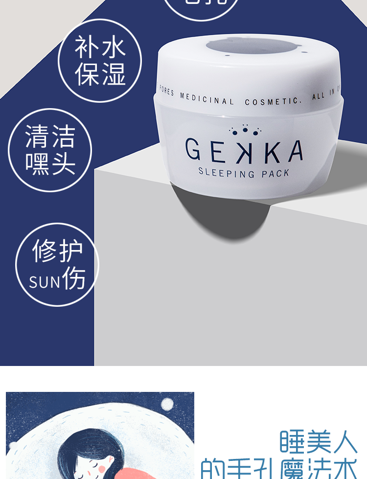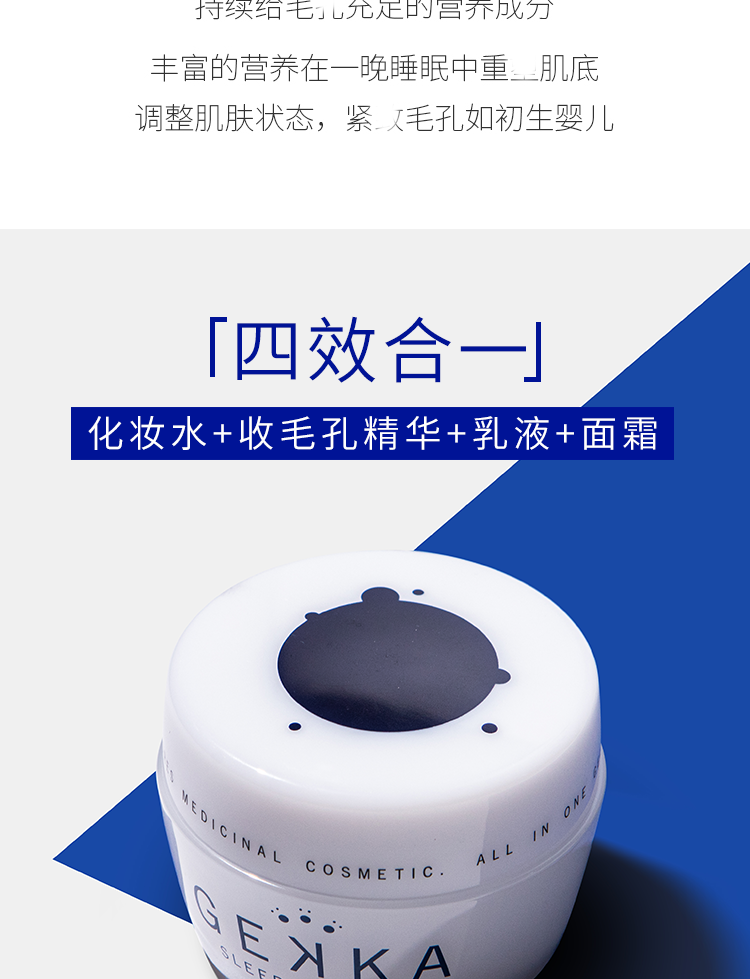 多效合一的GEKKA的缩小毛孔,保湿补水 美肌面膜 Cosme大赏的人气产品!!! 专对毛孔黑头! 集5种美容精华液! cosme上有很多评价都说用了一两个月后能够明显感觉到毛孔更细腻了 也比较通透自然~