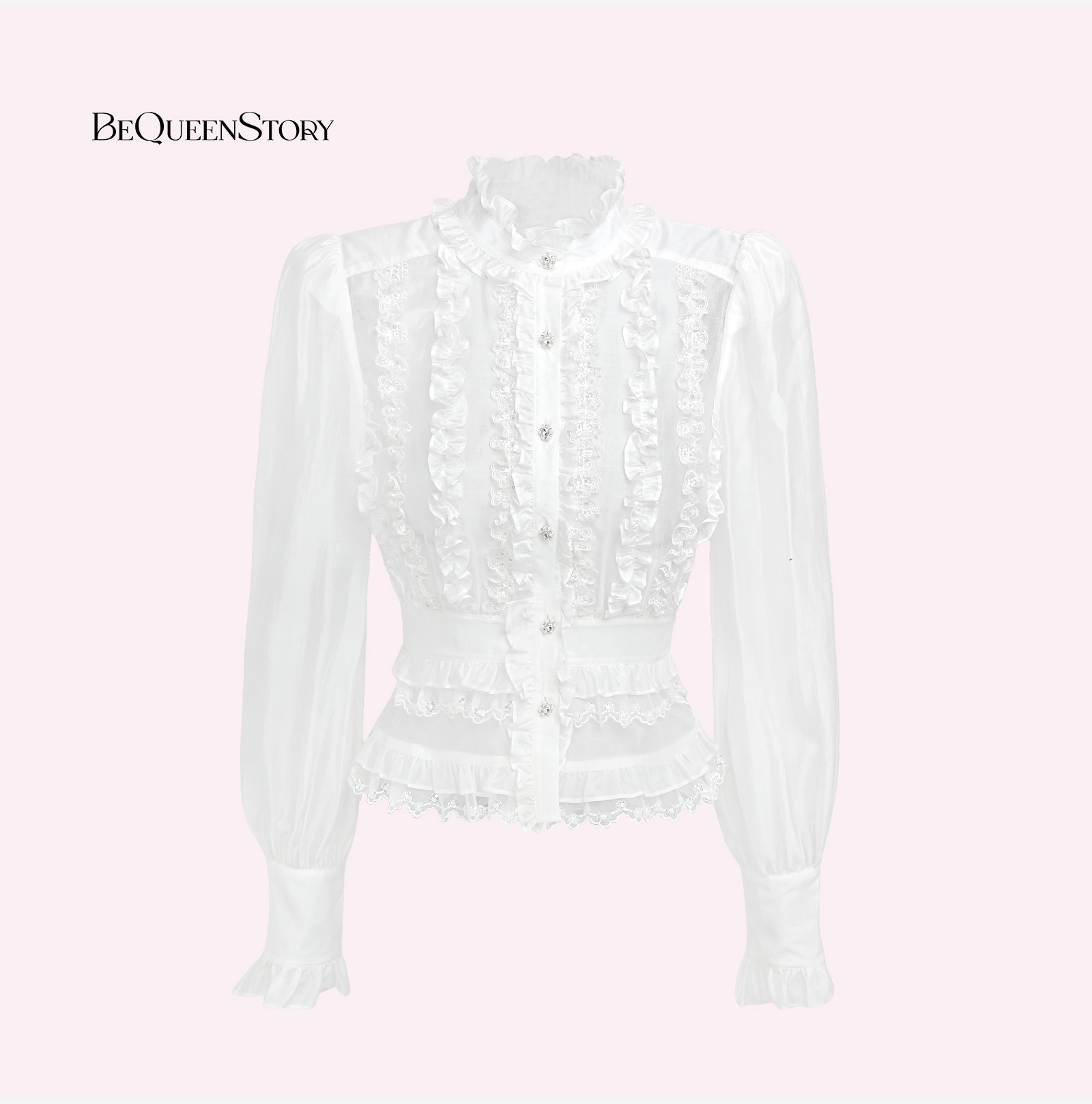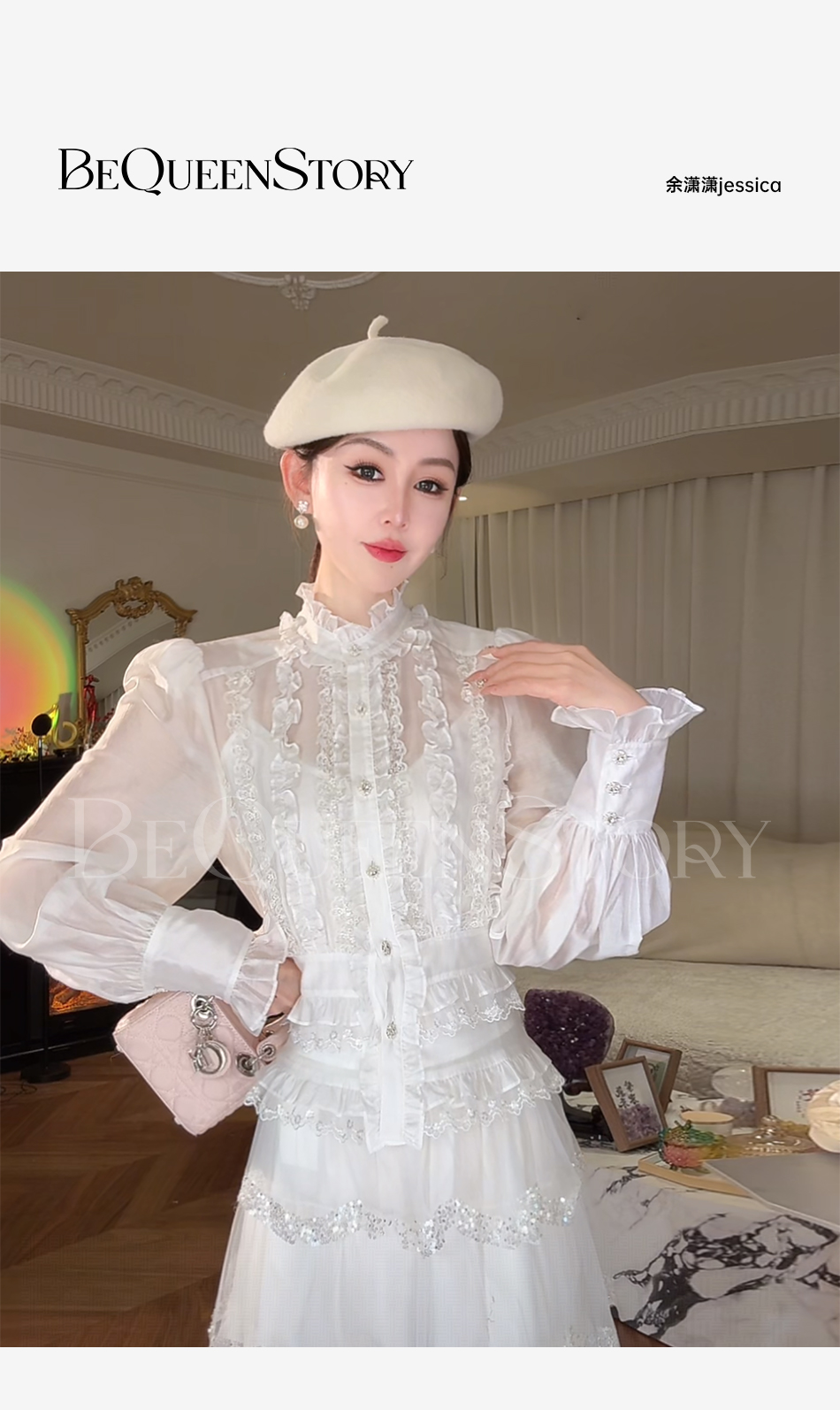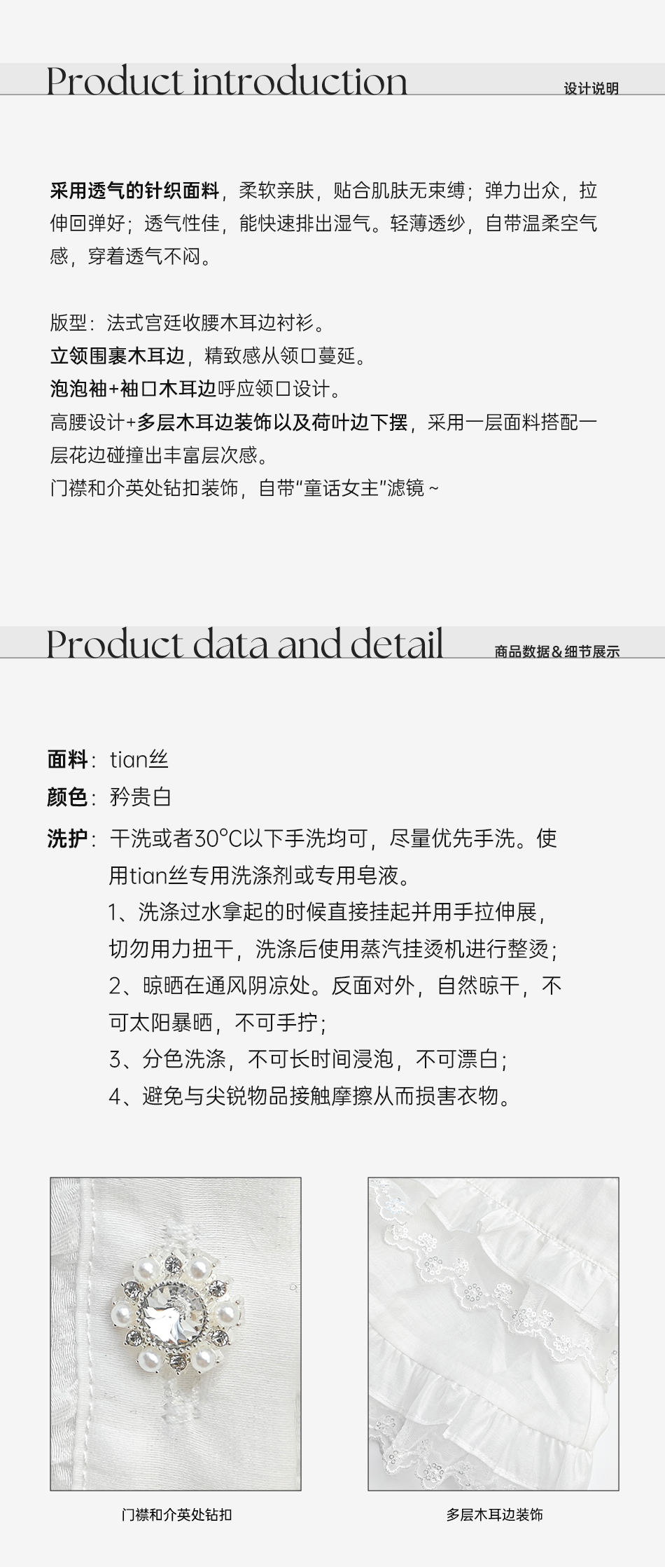 余潇潇【月光私语】法式宫廷风针织透气弹力收腰层次木耳边衬衫