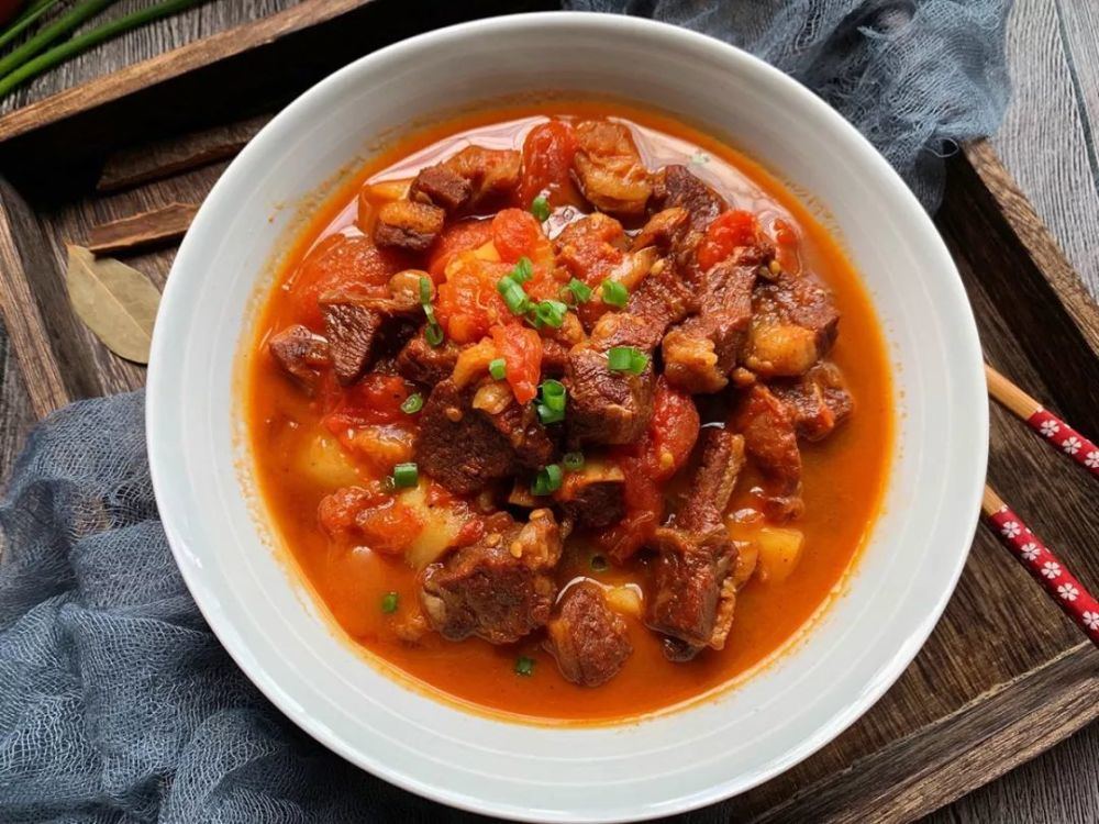 一般炖煮30-40分钟,牛肉散发浓浓的香味,且筷子可以轻易戳入牛肉时即表明牛腩炖好了