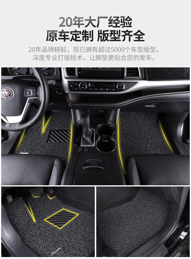 御马丝圈脚垫适用丰田汉兰达普拉多脚垫2022款皇冠陆放七座专用汽车脚垫