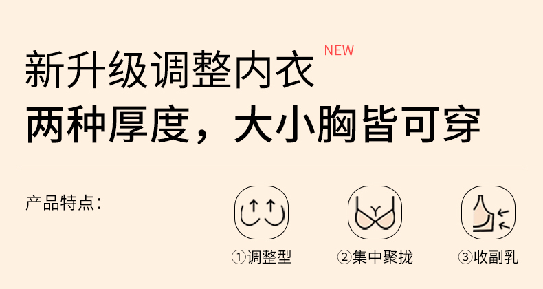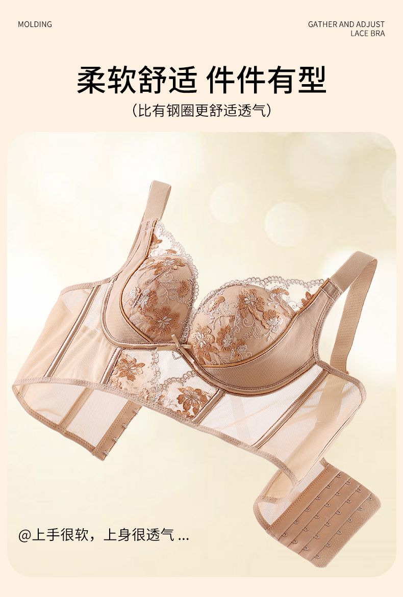 无钢圈光面中厚杯聚拢文胸收副乳防下垂调整型内衣 821