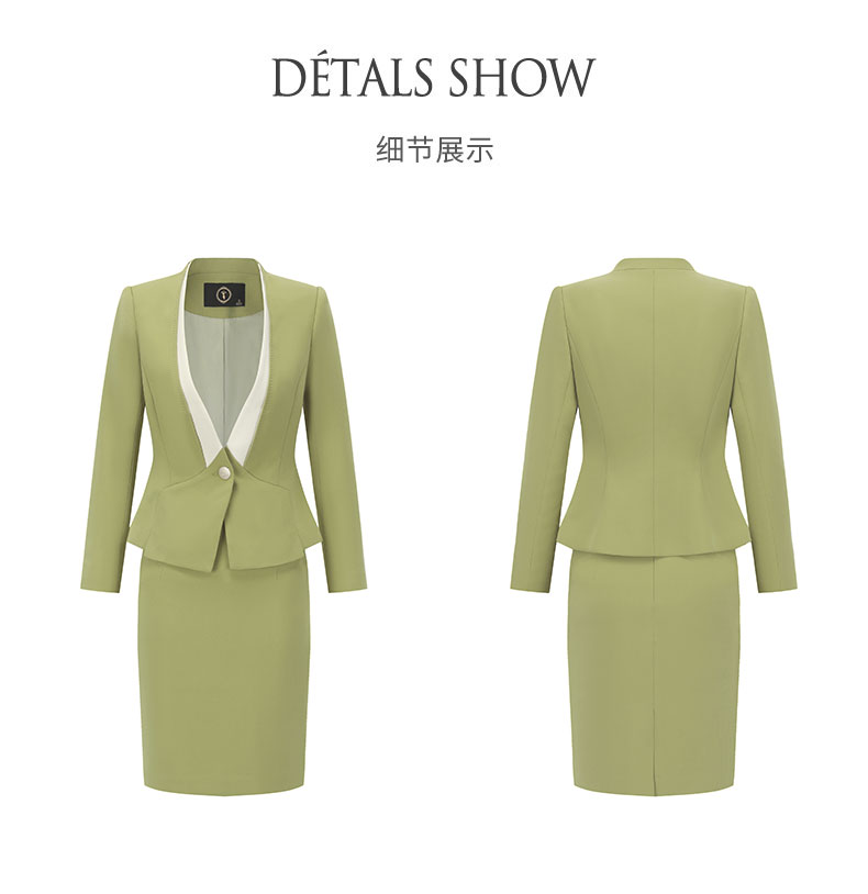 IWY小个子西装套装女小清新时尚高级感外套加裙子春秋季职业装绿色正装CS1739
