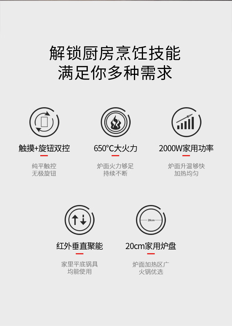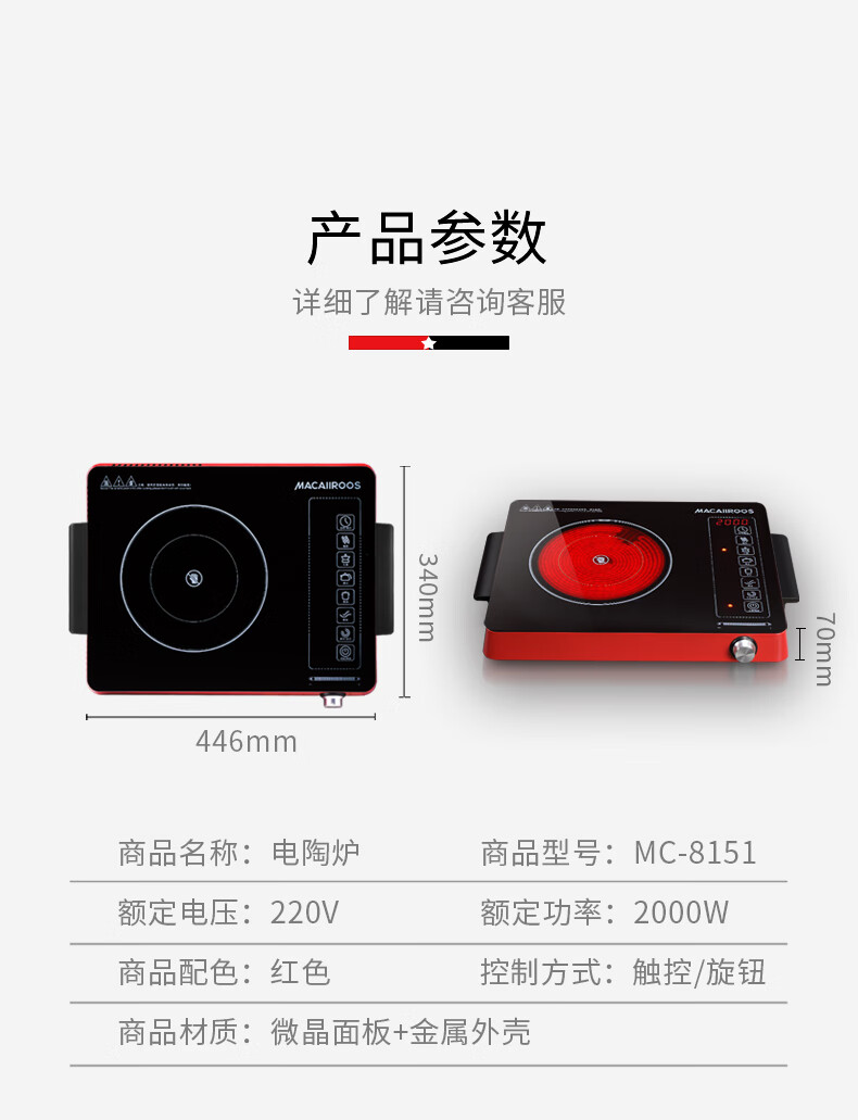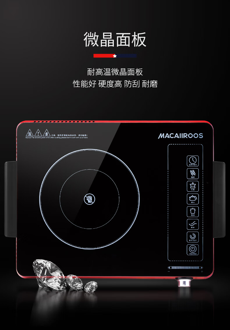 迈卡罗(MACAIIROOS)电陶炉 家用2000W大功率不挑锅具围炉煮茶火锅定时多档调节火 MC-8151