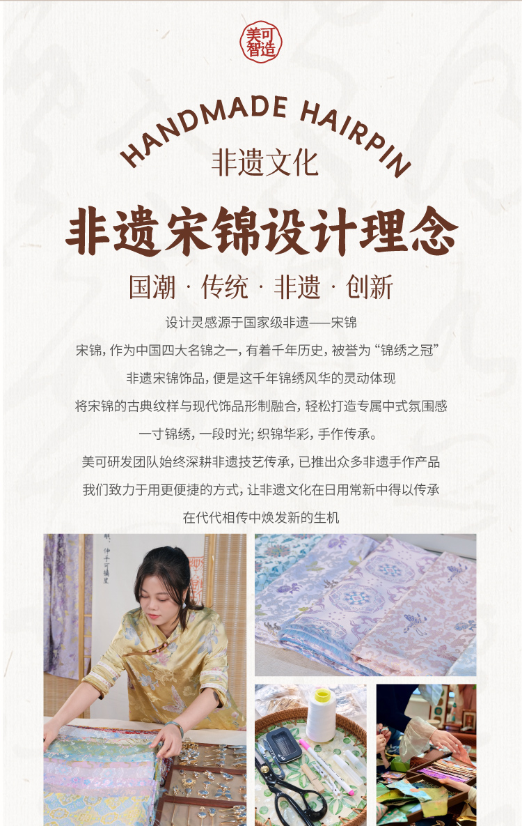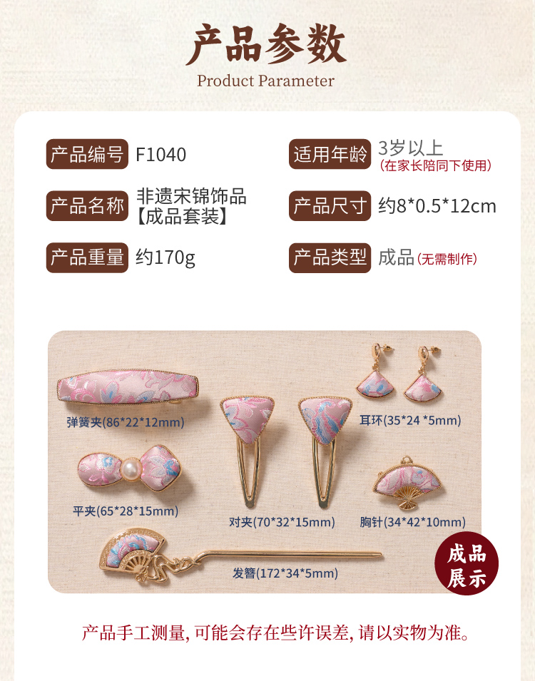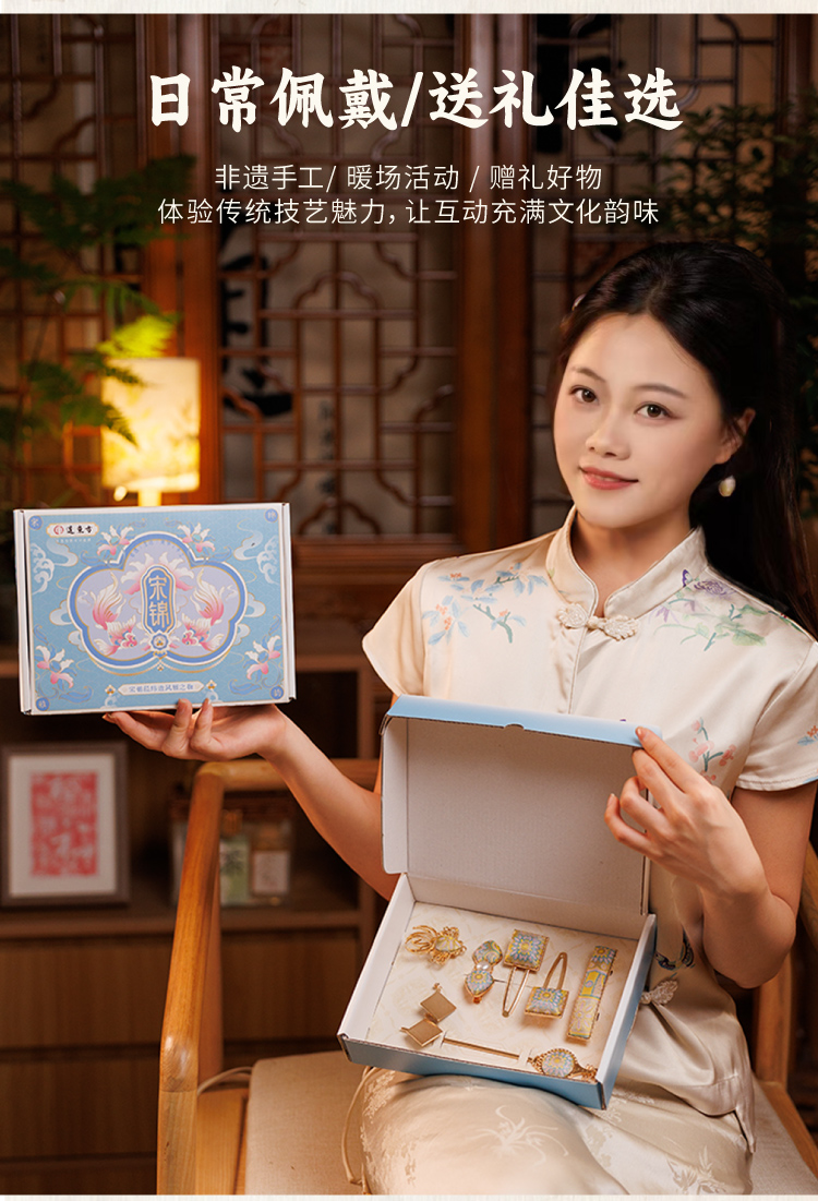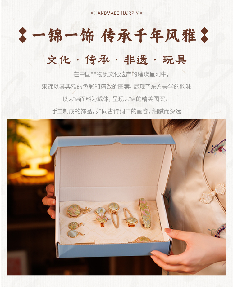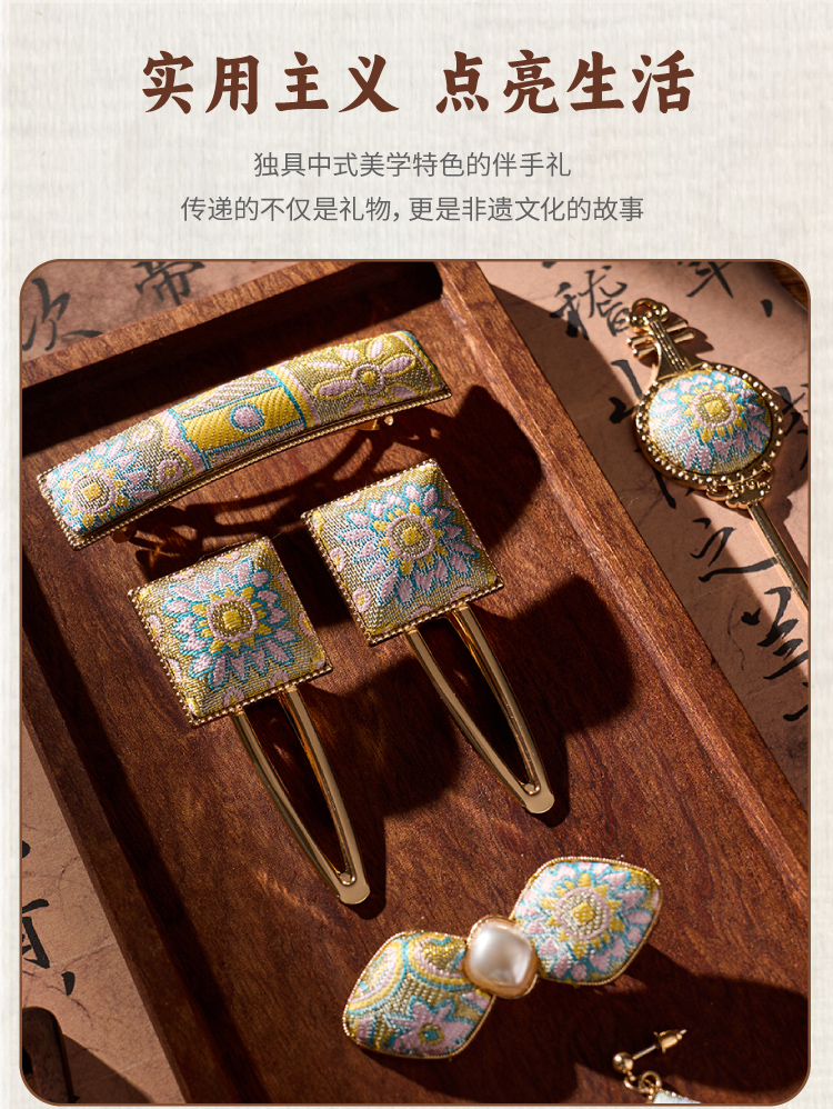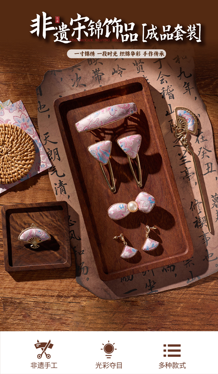 非遗宋锦饰品手工diy儿童国风发饰发夹胸针材料包暖场团建活动