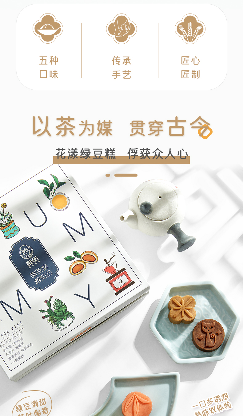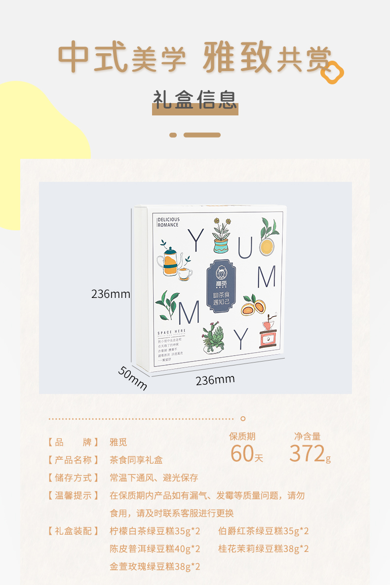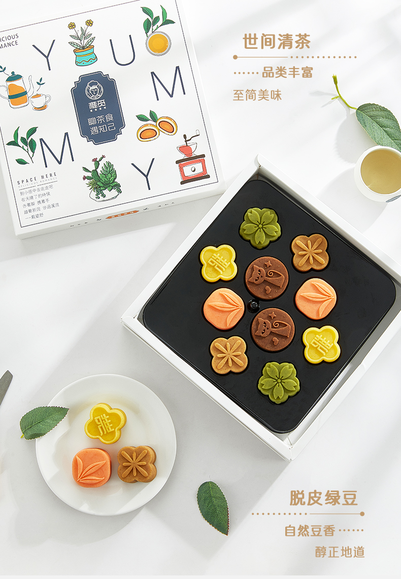 雅觅 茶食同享372g 10粒茶元素绿豆糕礼盒 点心零食小吃休闲食品下午茶送礼