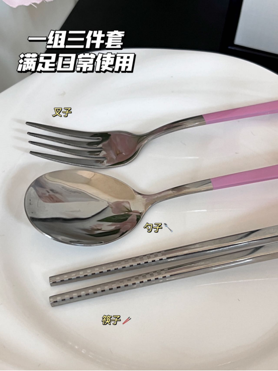 B款 如果你也是热爱生活 如果你也不肯对生活将就 那一定要选择这款 家里的筷子可以换啦一人一筷 这款抗菌不锈钢筷子高达有99.9%的抗菌率! 孩子们使用也能非常放心哒 其次这款不锈钢餐具套装 不发霉!不烫嘴!不生锈!不变形! 而且特别好清洗