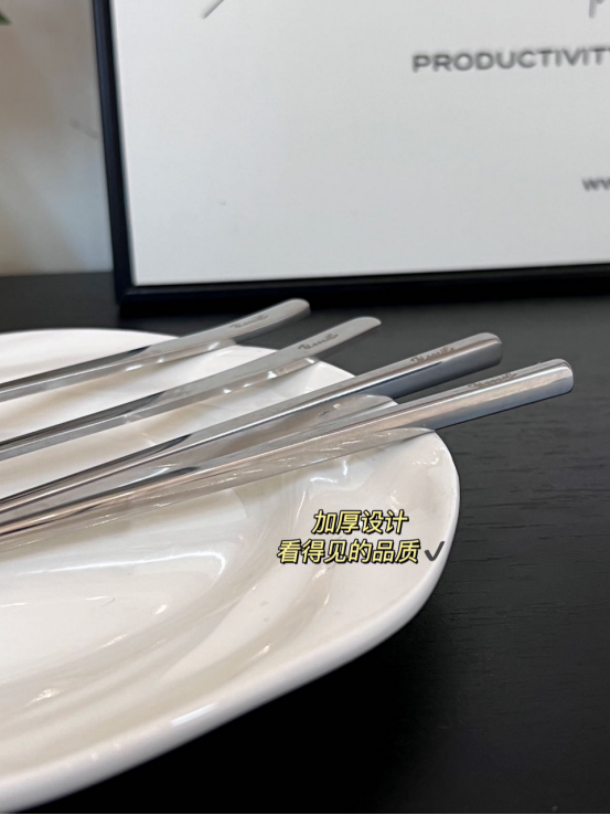 精美套盒自用送人两相宜 不锈钢材质易清洗耐腐蚀 打磨光滑圆润 不易生锈干净卫生 方形筷子设计 不易滚动有效防滑 轻松夹取加厚设计 一体成型有隔热防烫效果 不占空间方便携带 拒绝一次性长久耐用 做工细腻边缘打磨光滑 边角圆润无刺 餐具手工镜面抛光工艺闪闪发亮 更显档次品质颜值都在线 轻松享受美食!