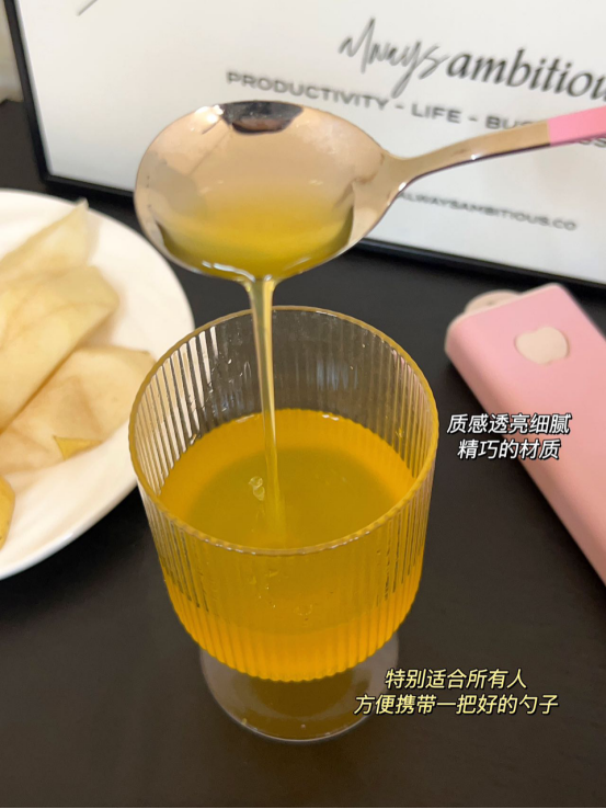 质感透亮细腻精巧特别适合所有人 方便携带一把好的勺子不但要有好的材质 更需要好的工艺 锻造出独一流的品质 精湛的模具制造工艺使餐具周边圆润 镜面设计拿在手里很有质感 勺子用起来非常舒服 巨高档长柄款式 无论是吃饭喝汤吃西瓜都很合适