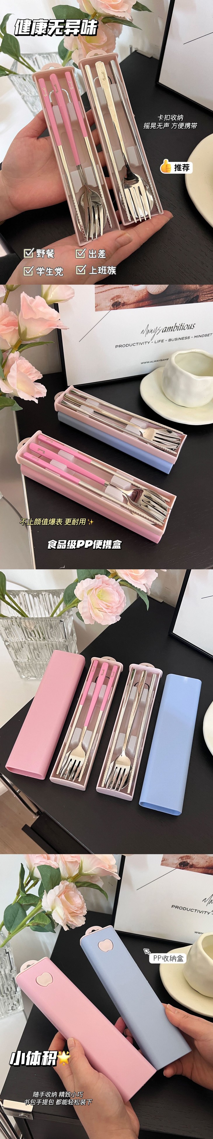 “包装设计” 送人自用均可 304不锈钢勺筷套装 一套勺筷均好看又实用 高档不锈钢材质有质感又耐用 环保卫生便携餐具 上班族学生党闭眼入不锈钢便携餐具套装 一套配齐勺筷配备套盒环保卫生 实用耐用清洗方便