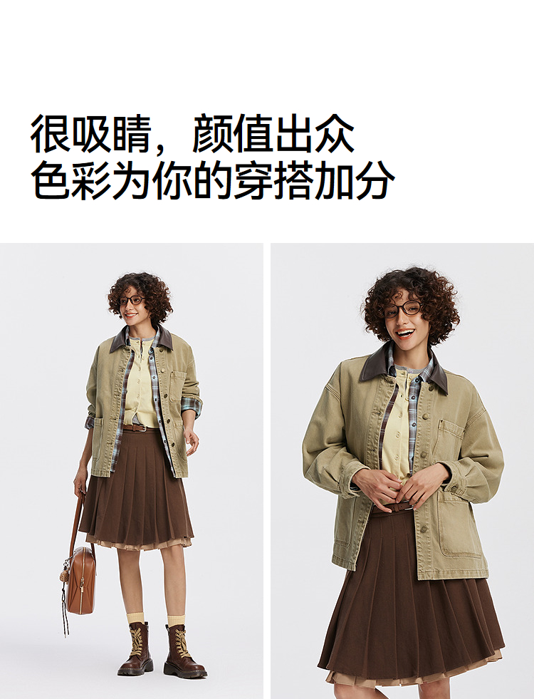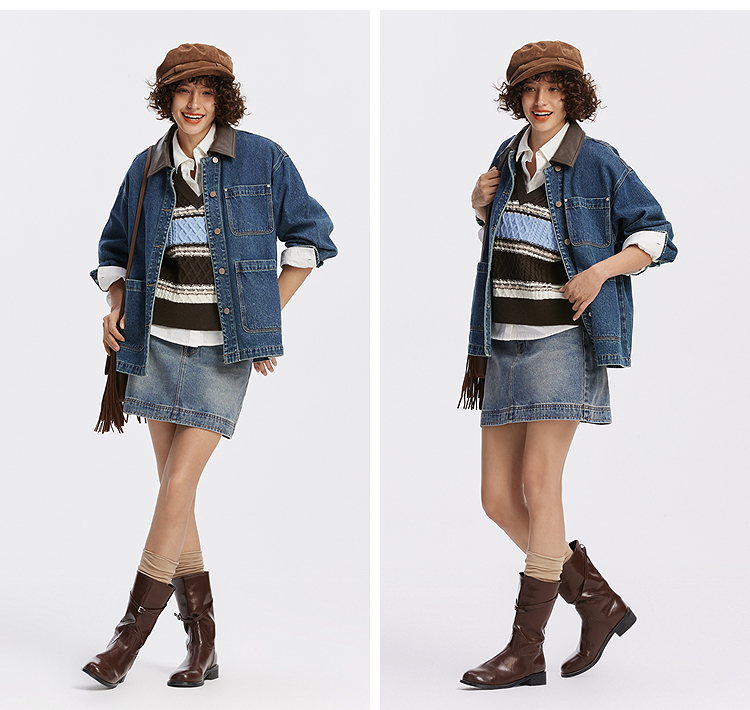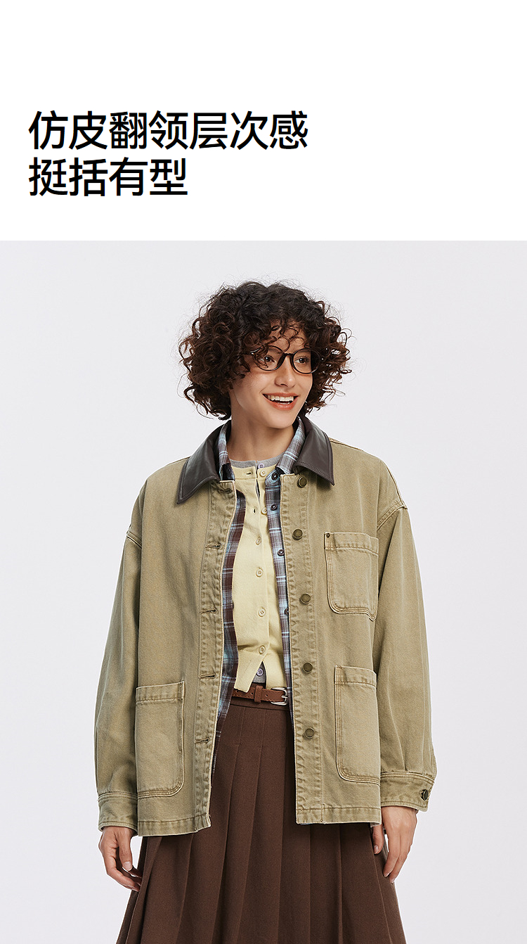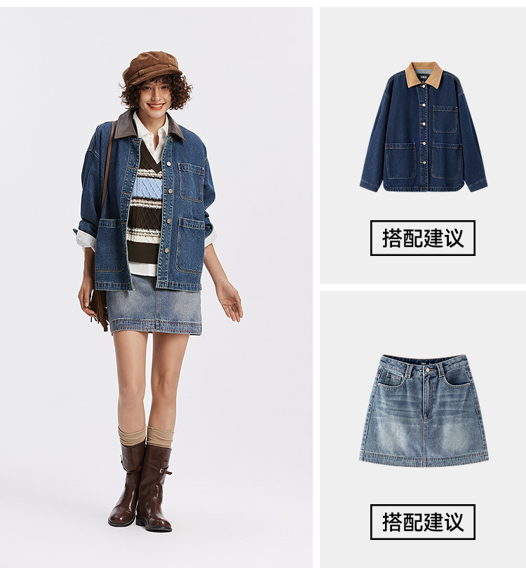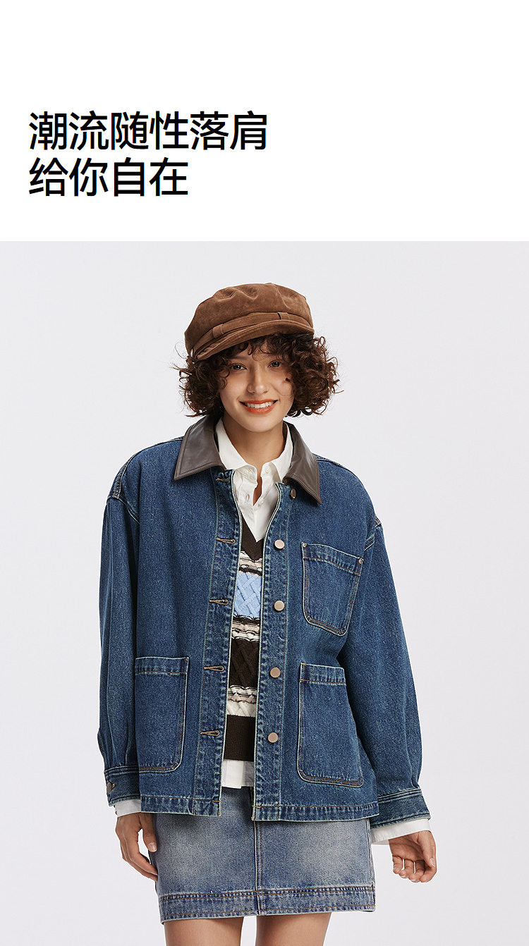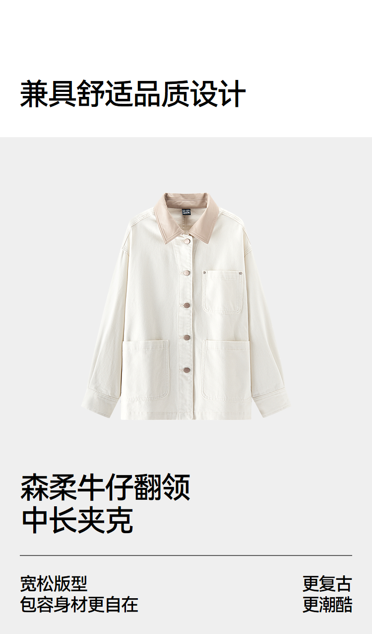 森柔牛仔|商场同款森马牛仔外套女中长款2025秋新款宽松夹克潮酷