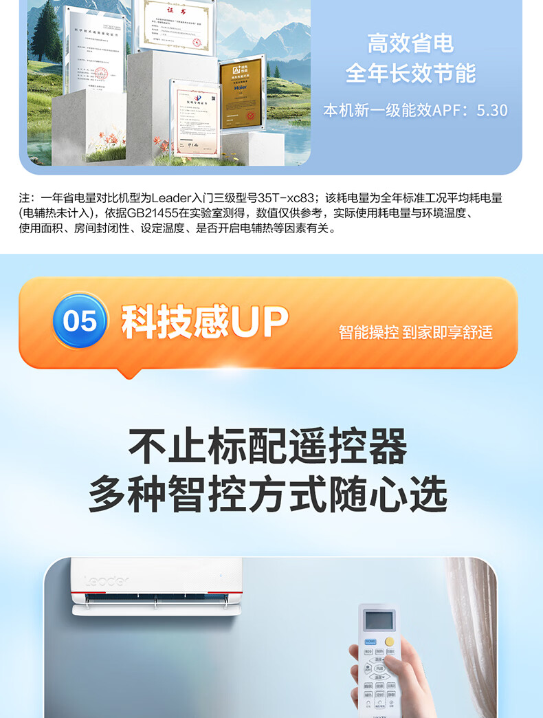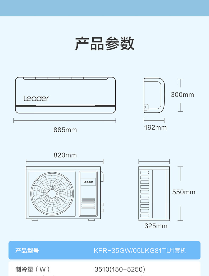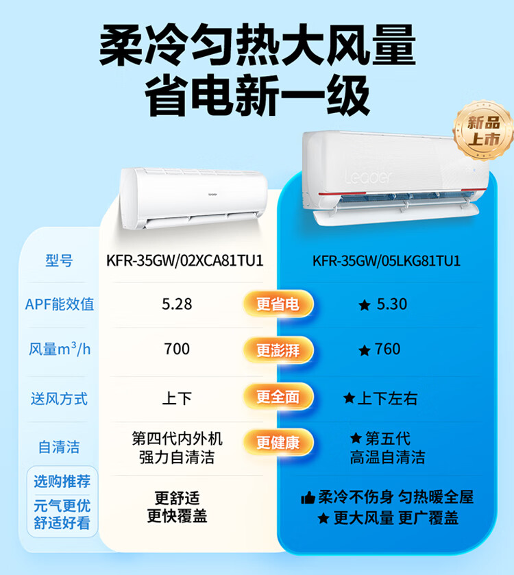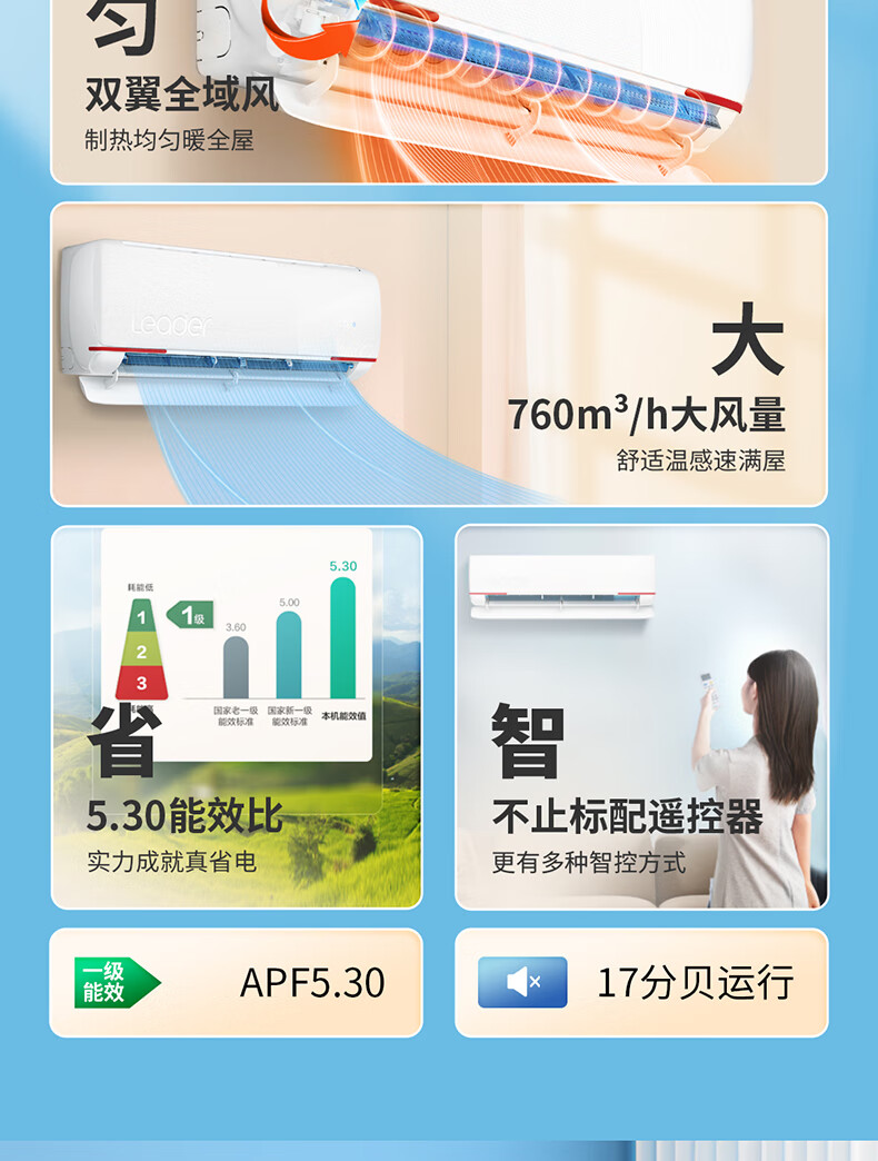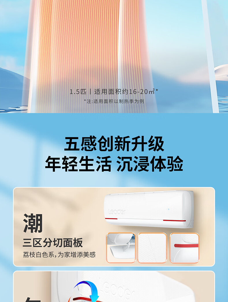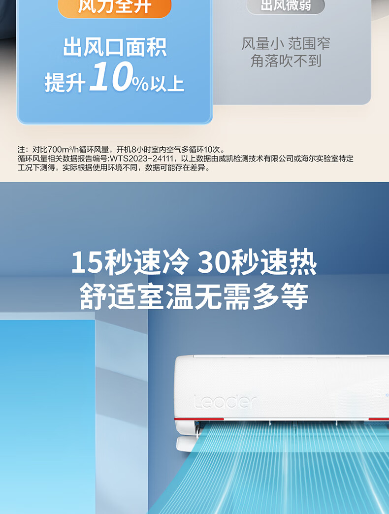 Leader海尔智家出品 元气1.5匹空调挂机新一级变频 自清洁壁挂式 LKG